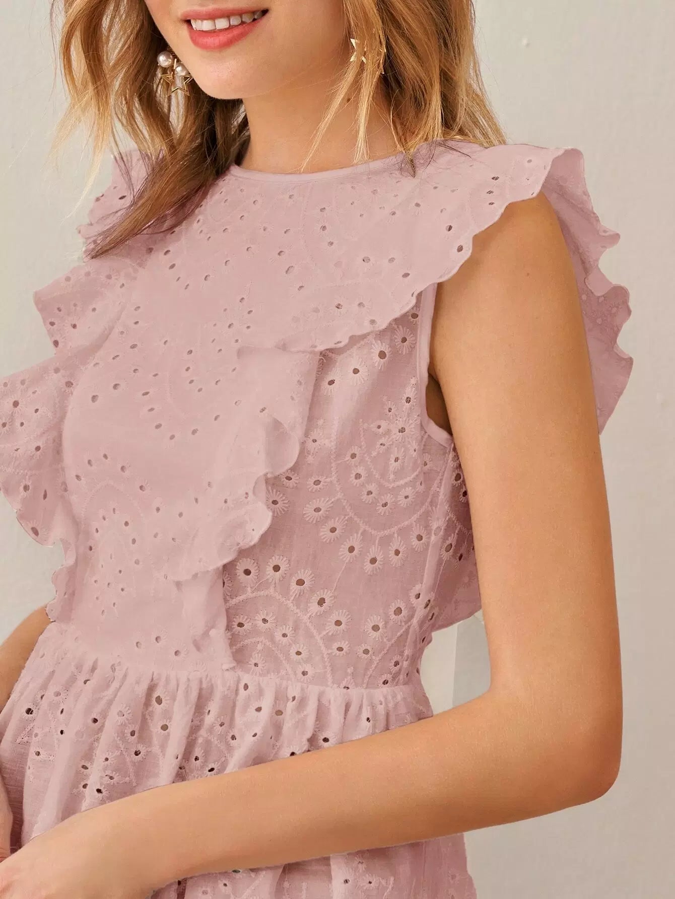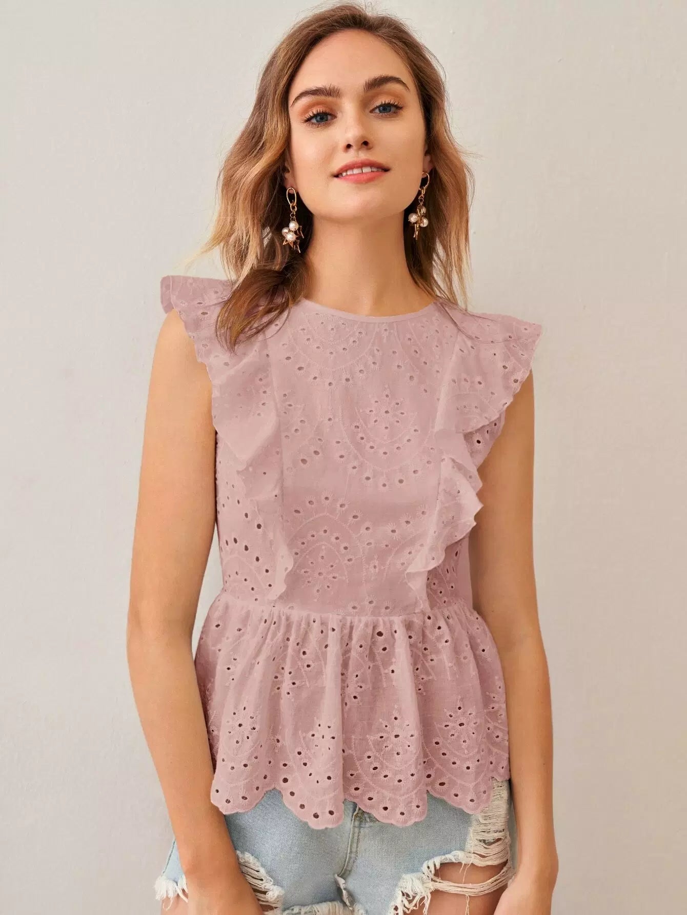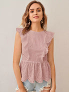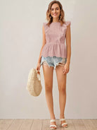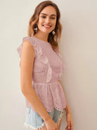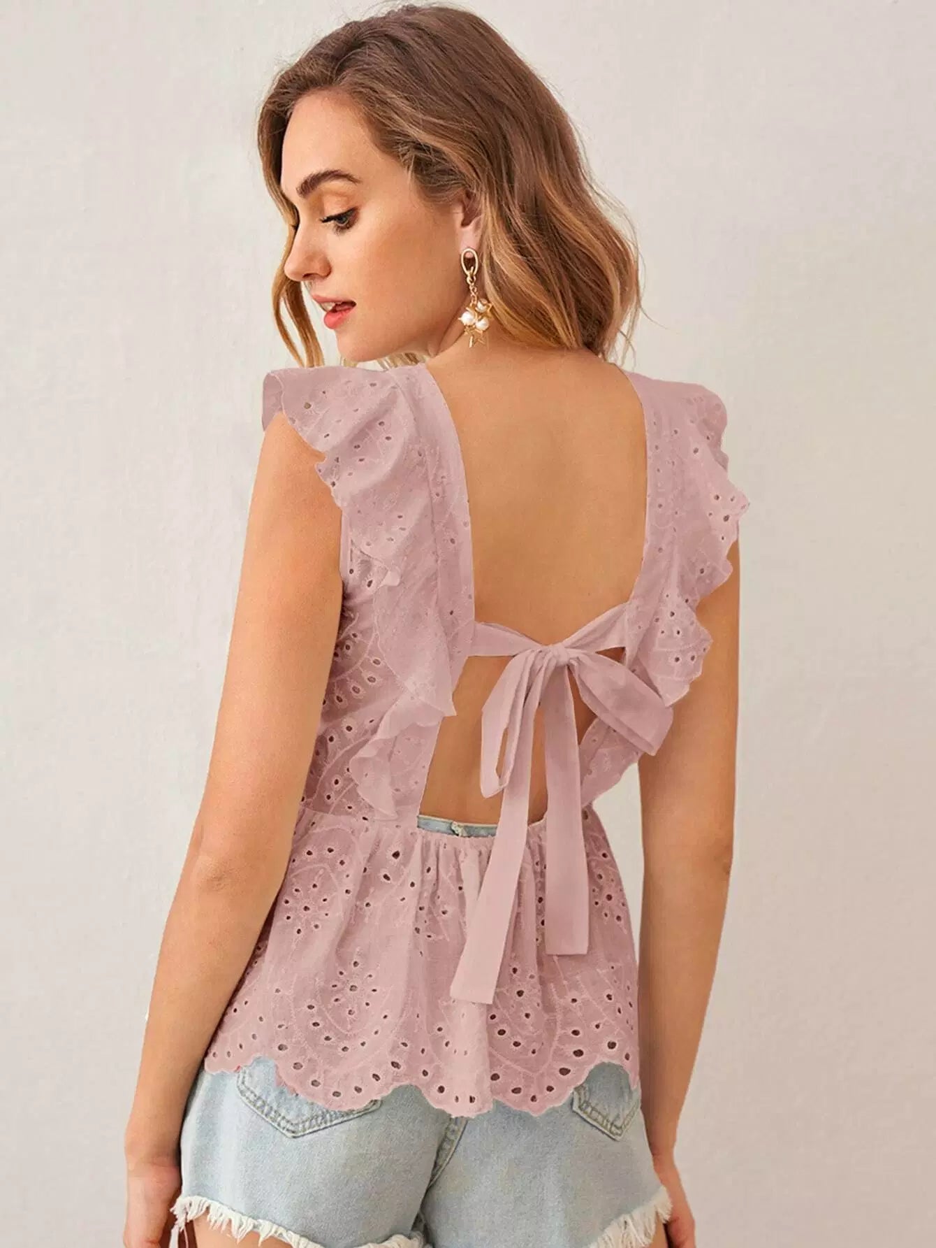 Tie Back Ruffle Trim Schiffy Peplum Top