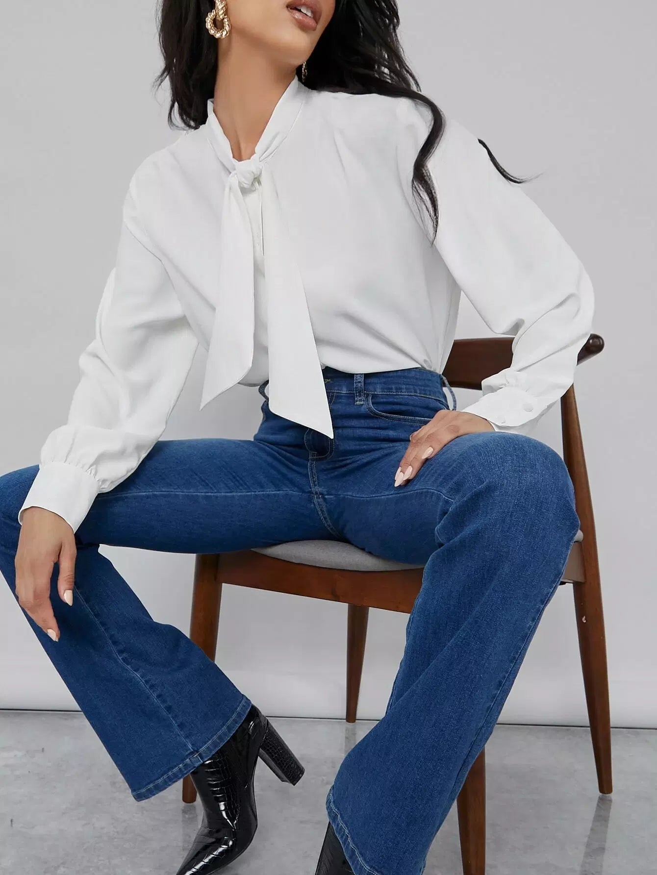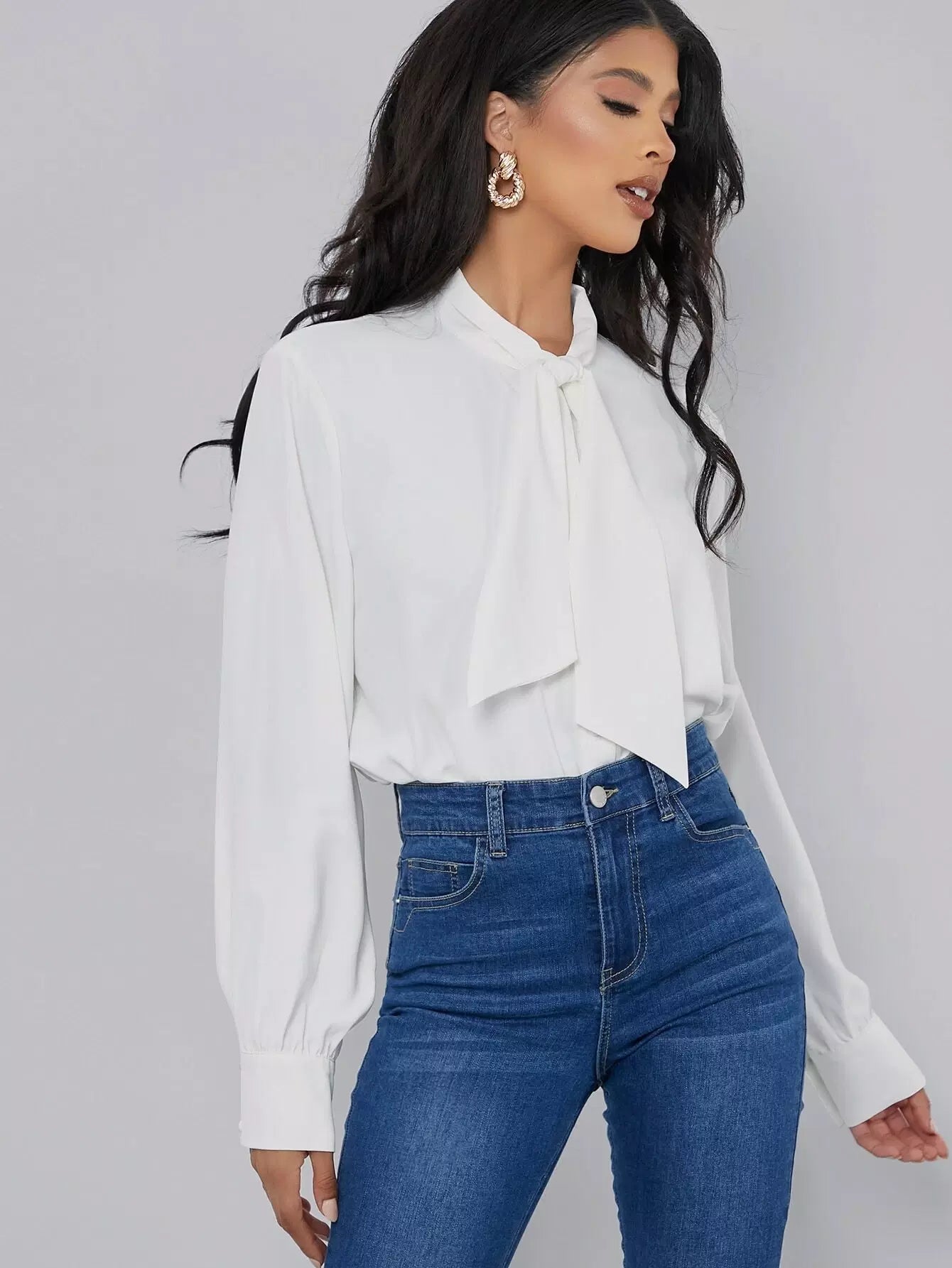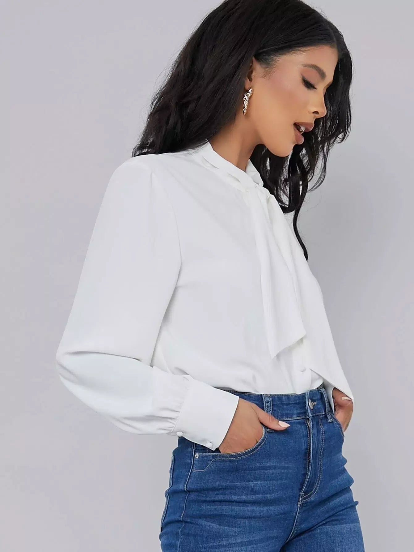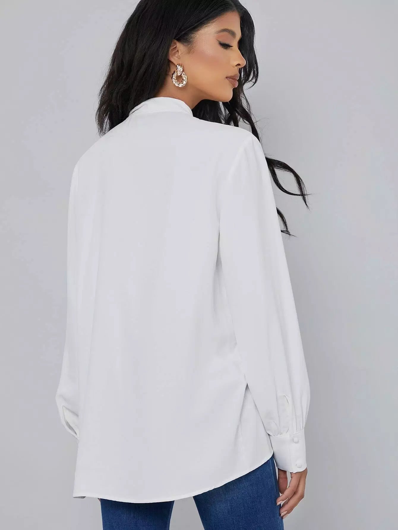 Tie Neck Button Front Blouse