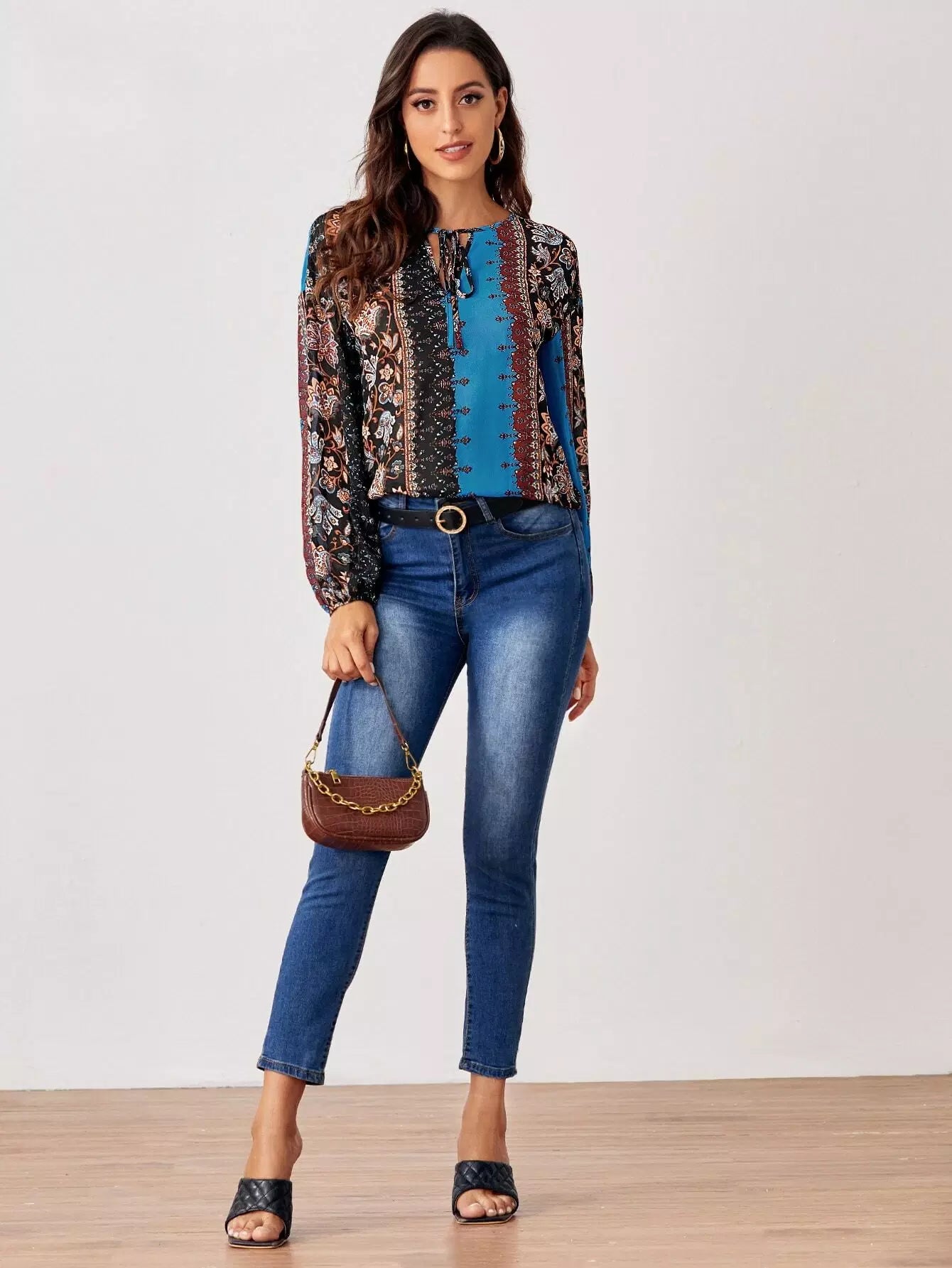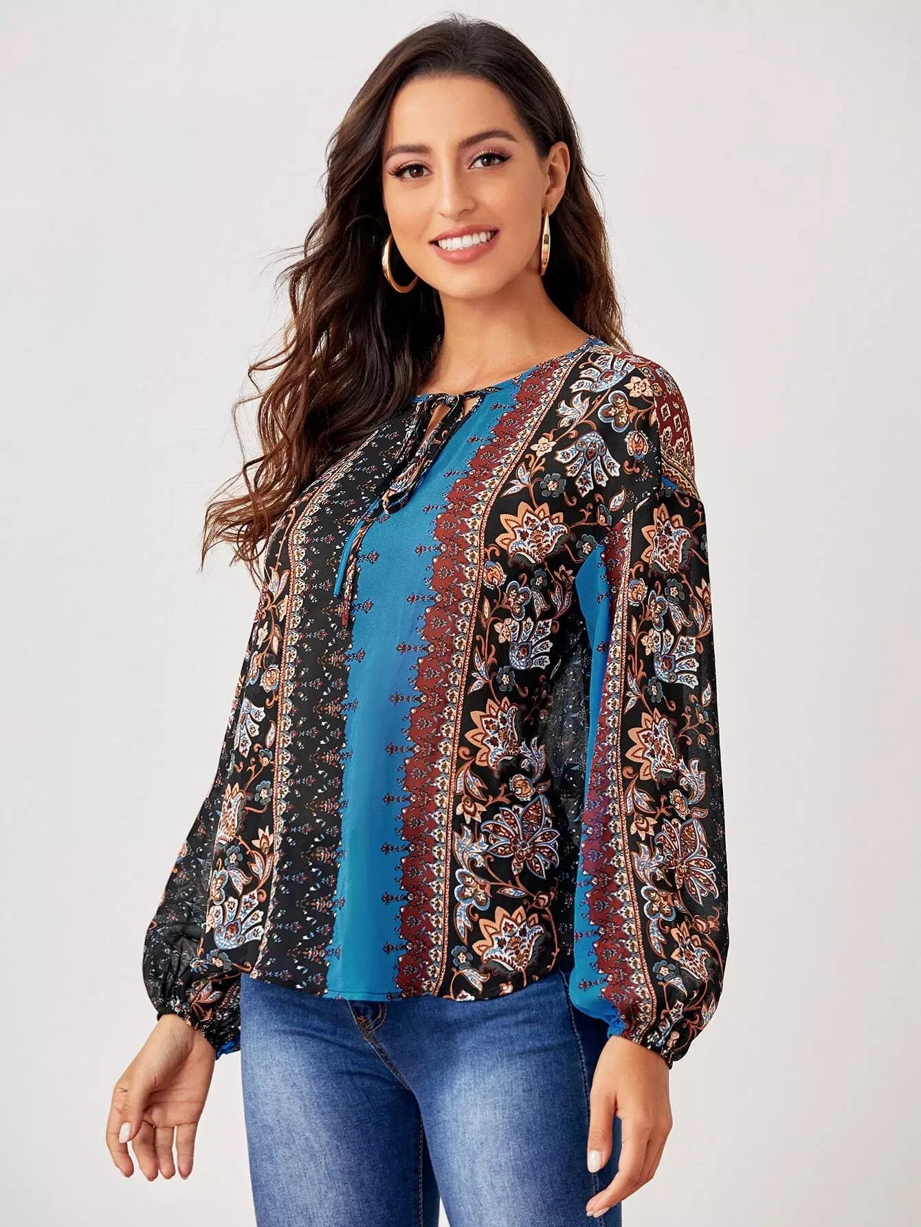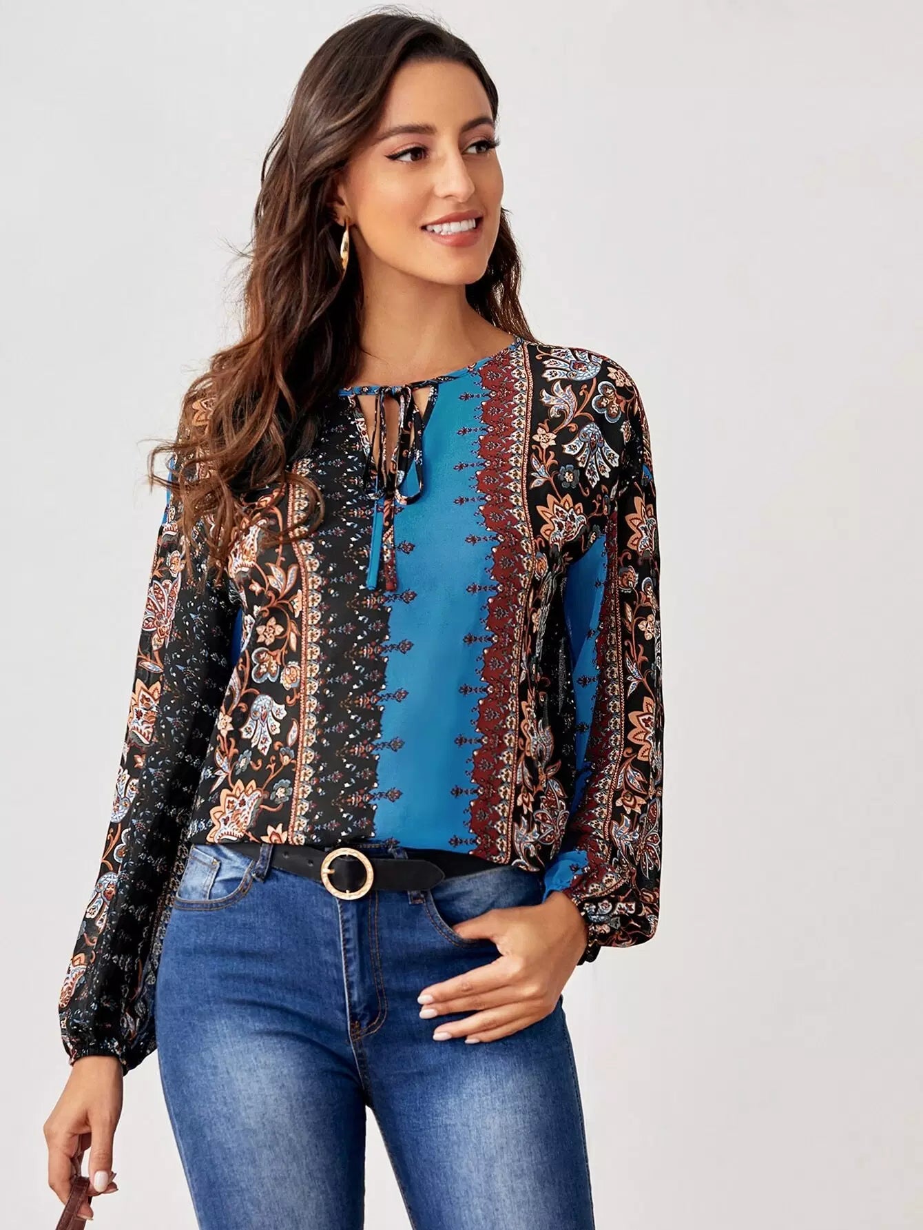 Women - Tie Neck Drop Shoulder Top