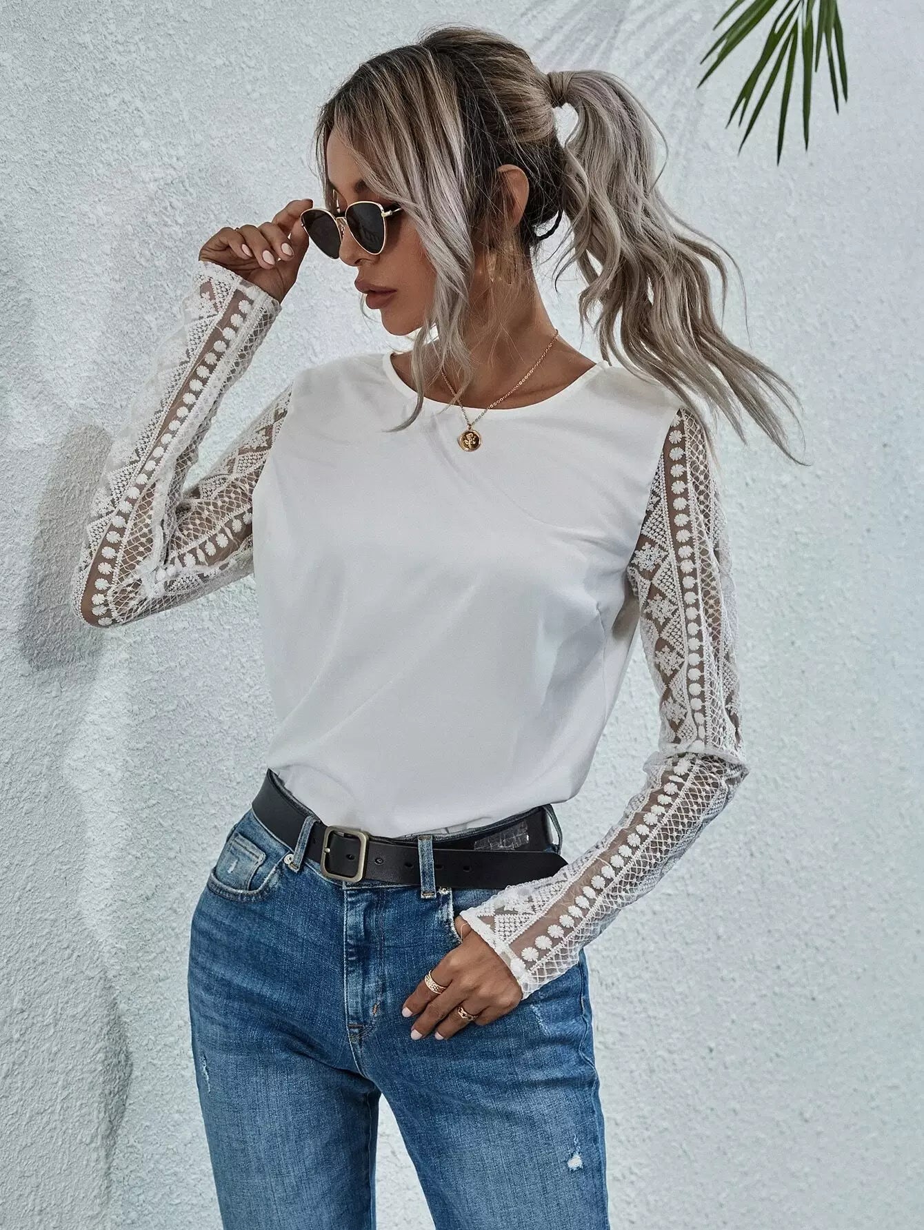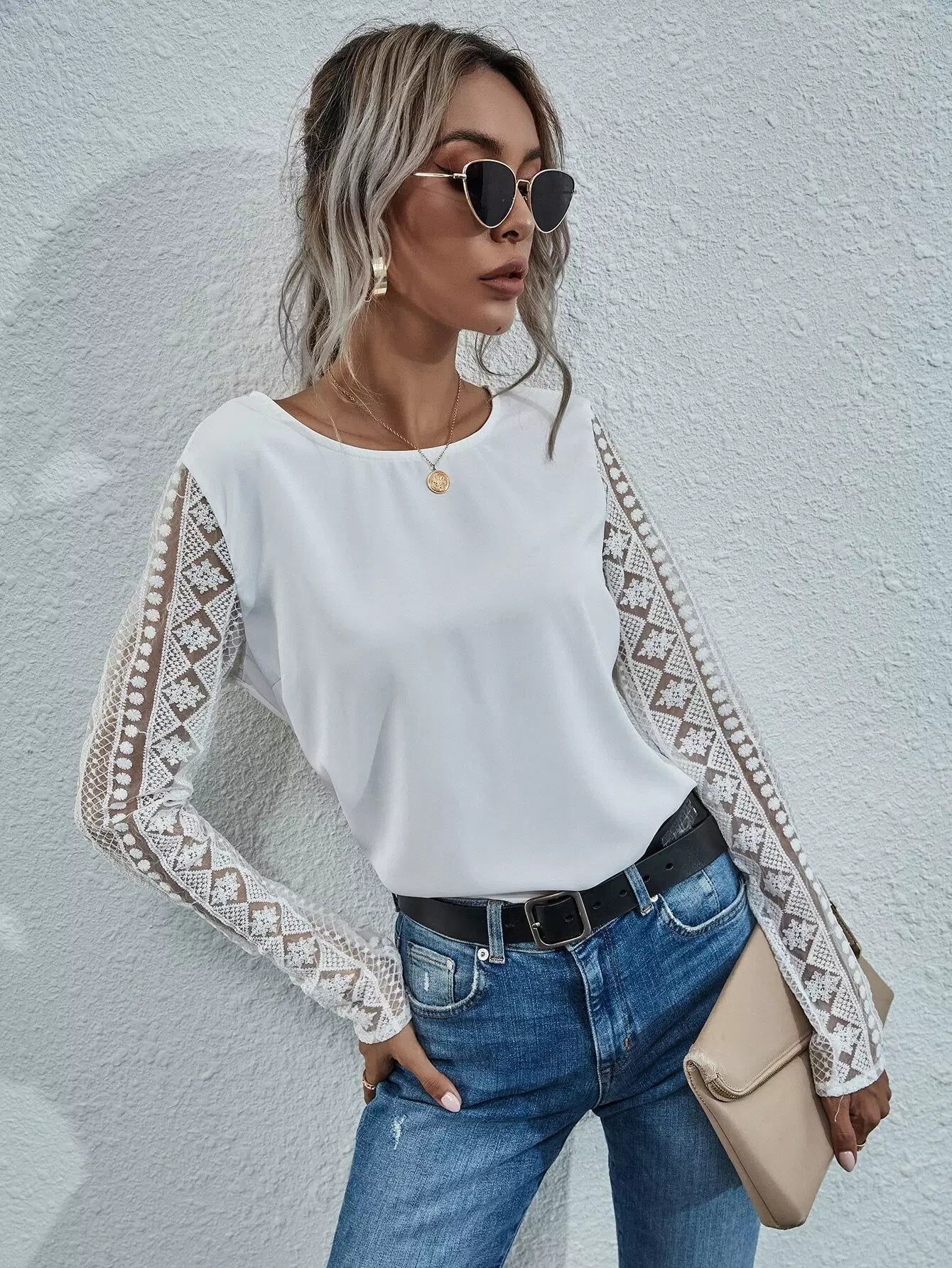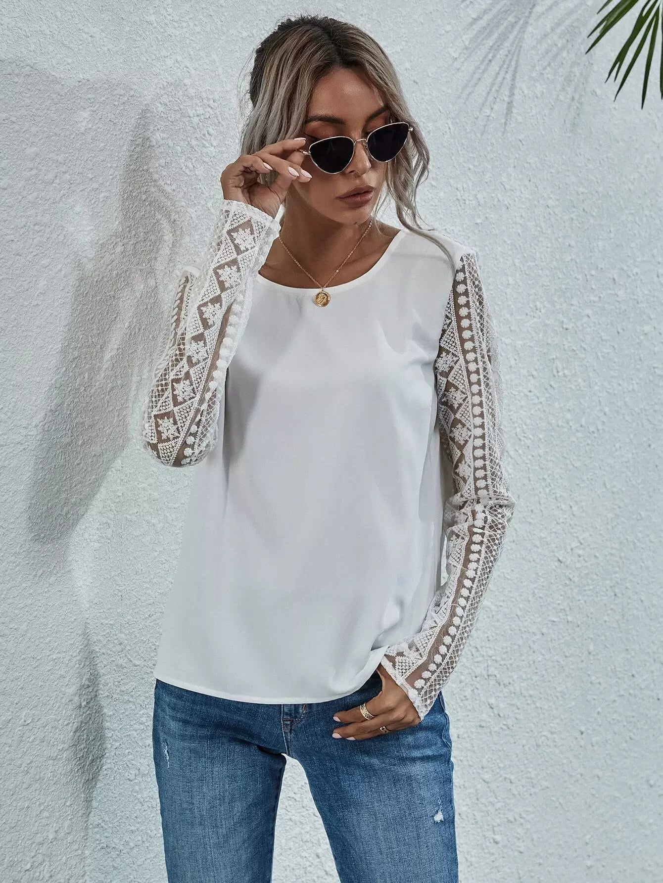 Women - Tied Backless Embroidered Mesh Sleeve Top