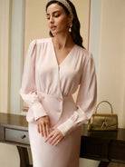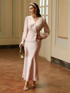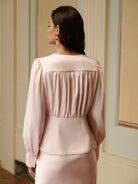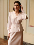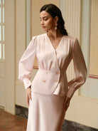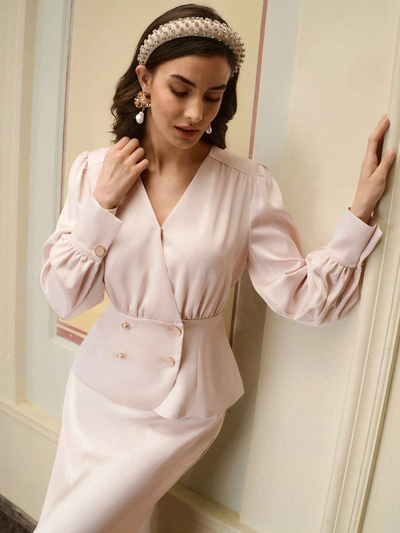ZEYLAH Women's Elegant Satin Padded Shoulder Wrap Blouse, Minimalist & Fashionable For Daily Wear