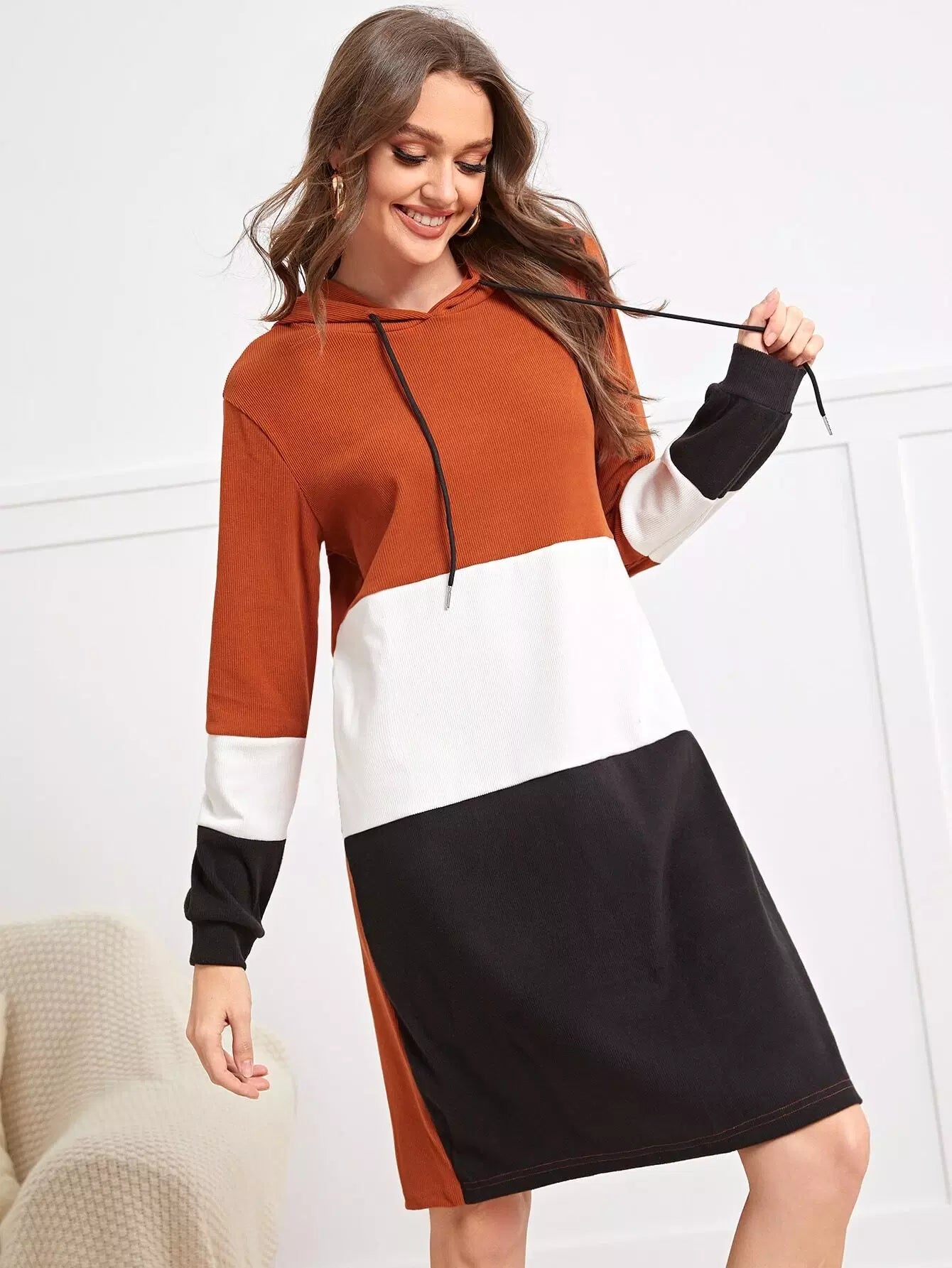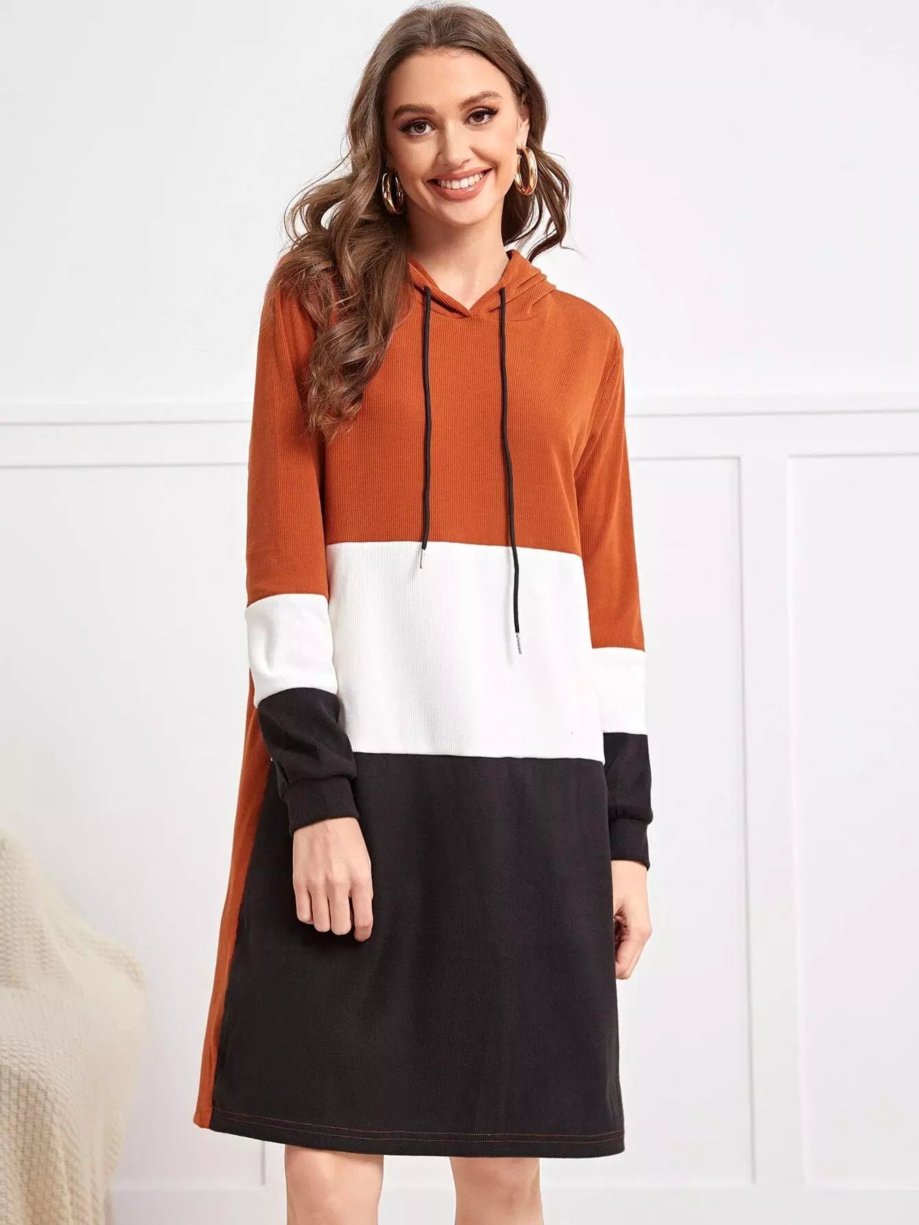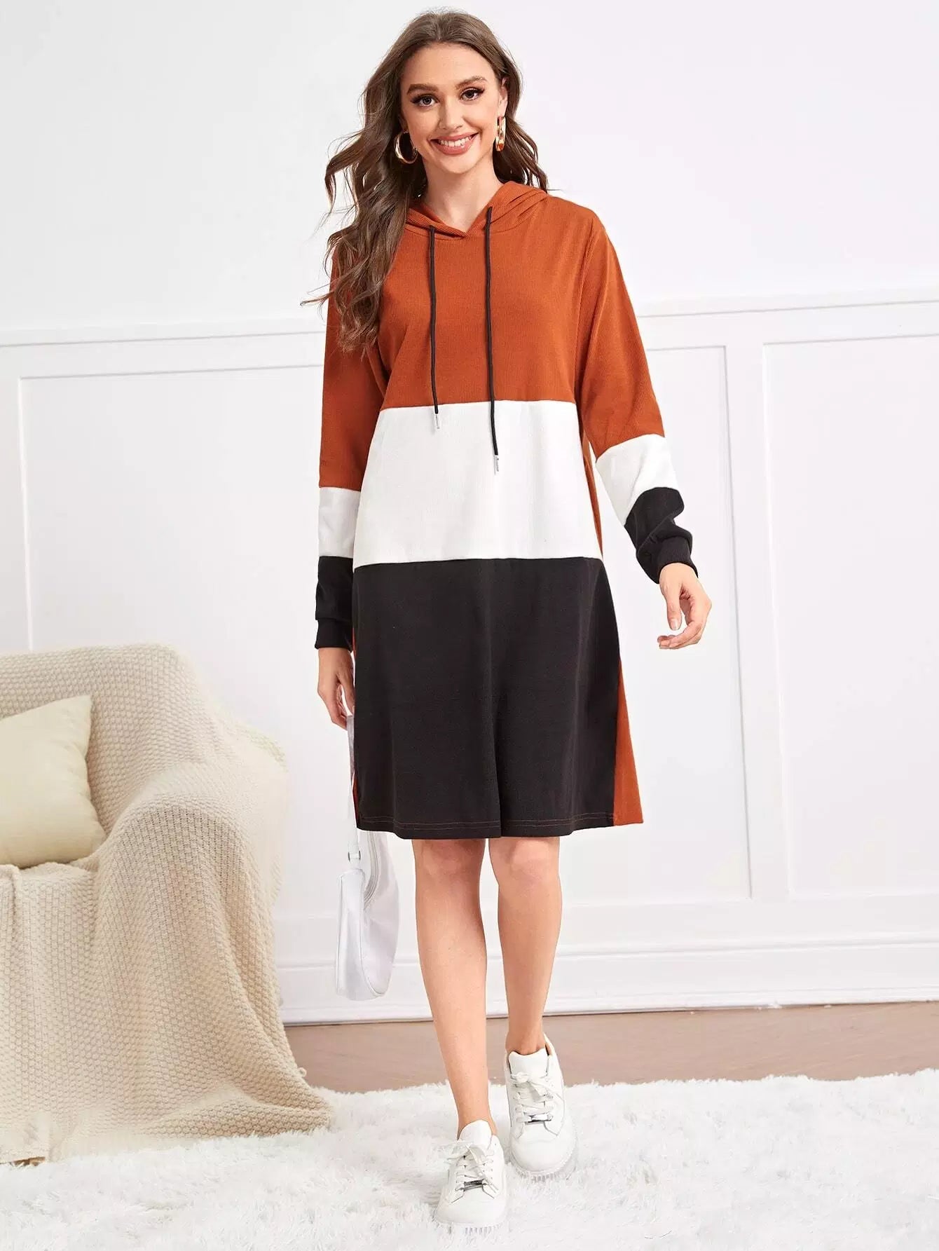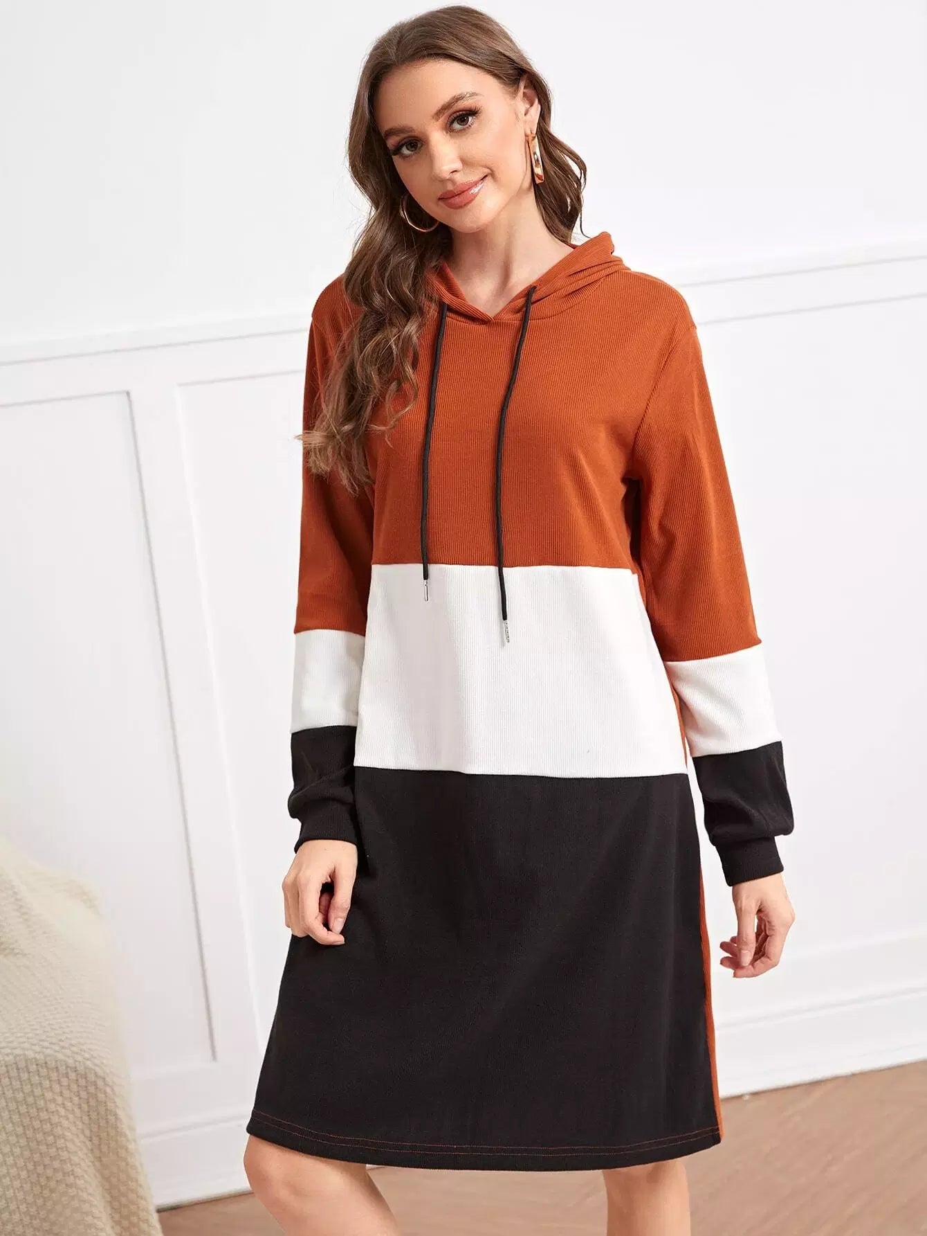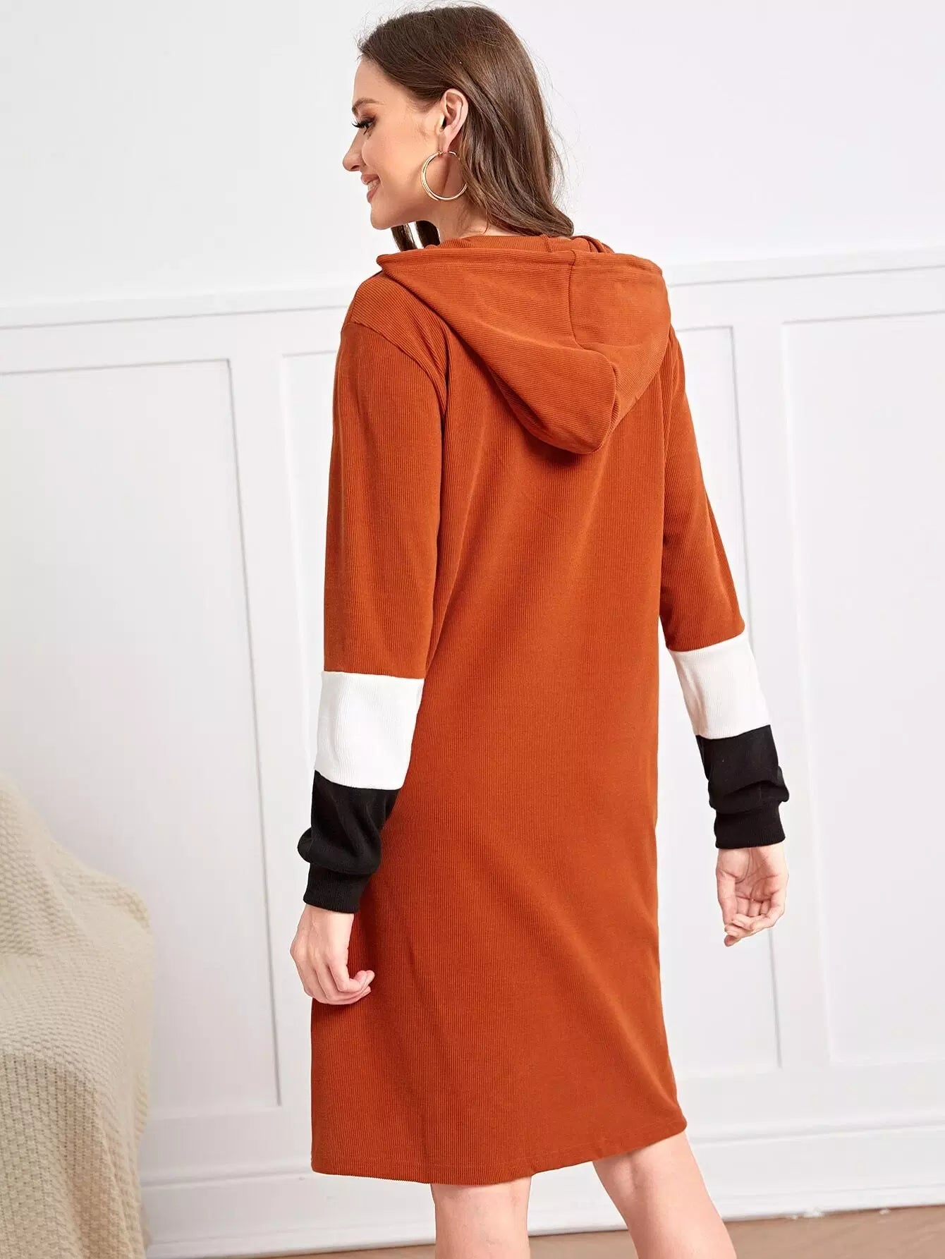 1pc Cut And Sew Hooded Sweatshirt Dress