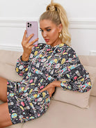 Women - Allover Cartoon And Letter Graphic Sweatshirt Dress