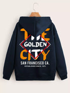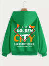 Argyle & Letter Graphic Drop Shoulder Drawstring Zipper Thermal Hoodie