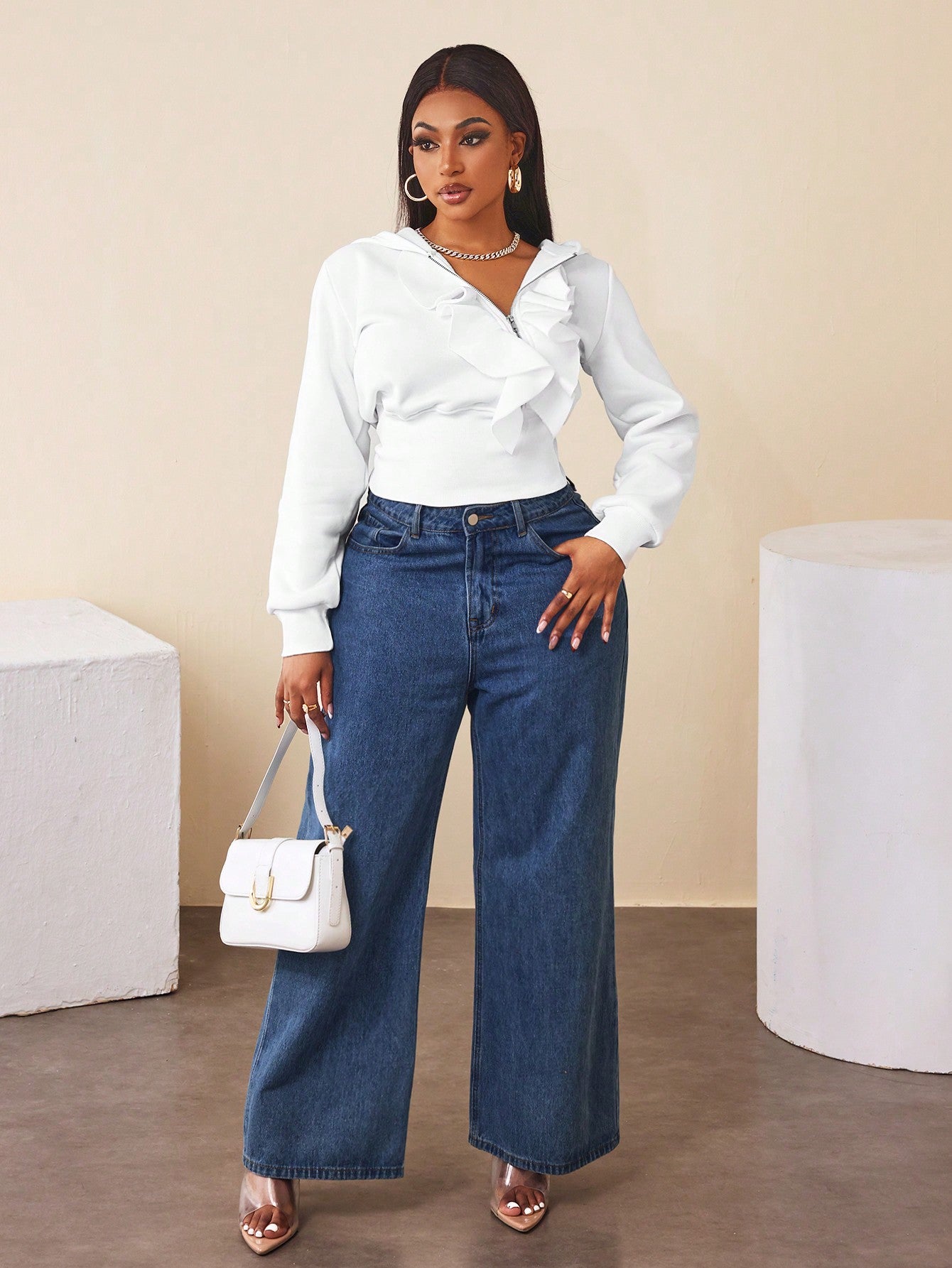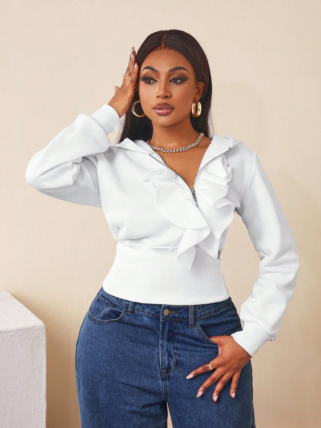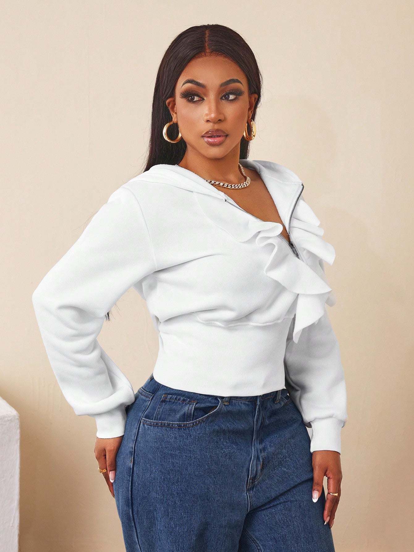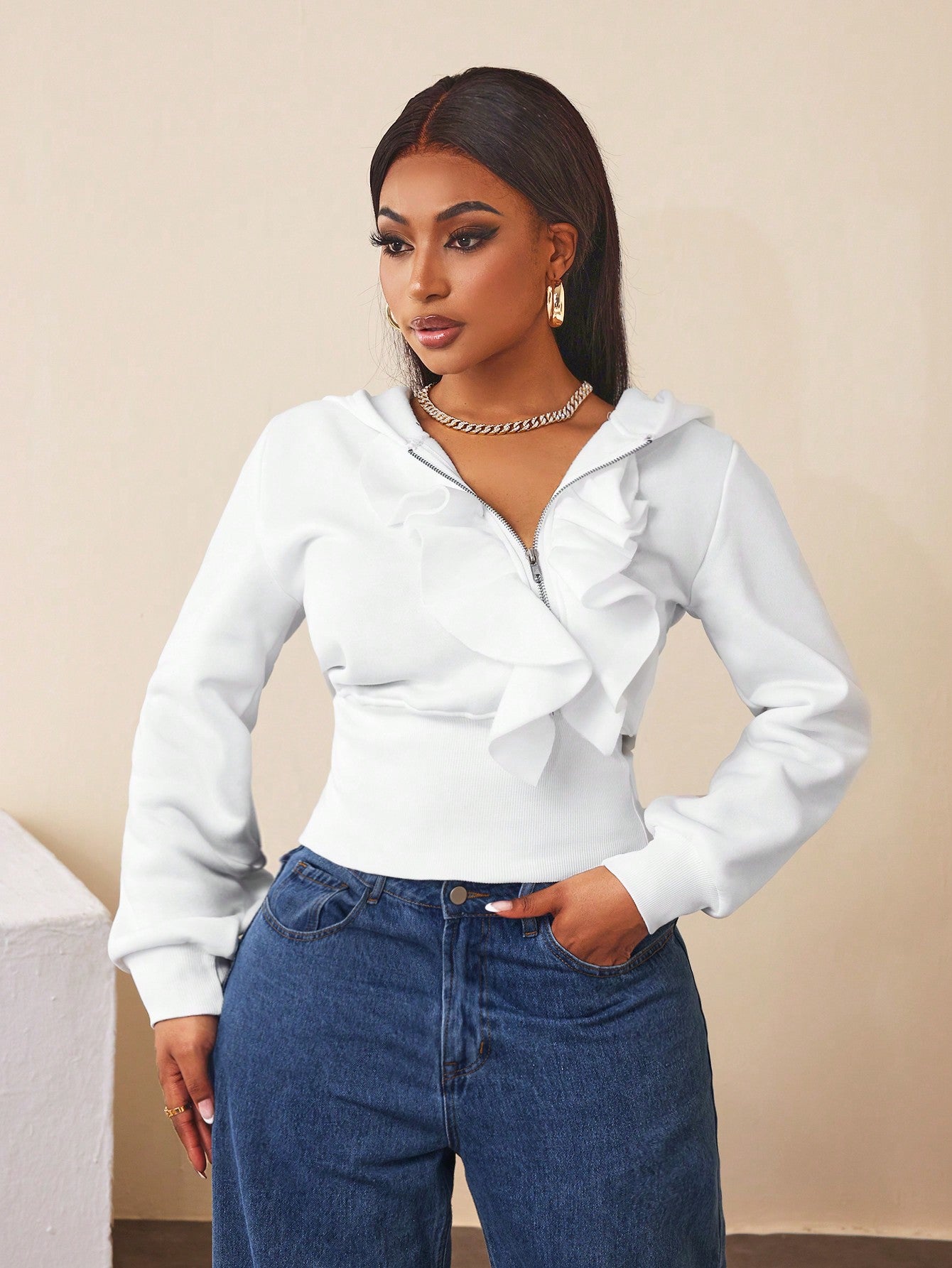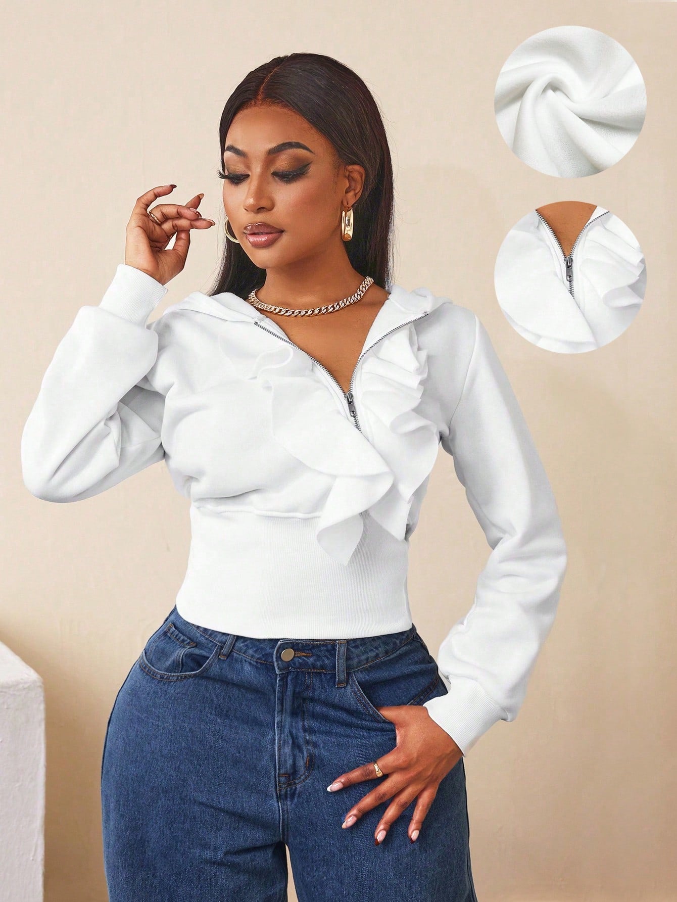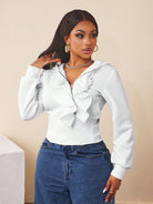 BamGleam Women Hoodie With Zipper Closure & Ruffle Trim Pullover Fall Outfit