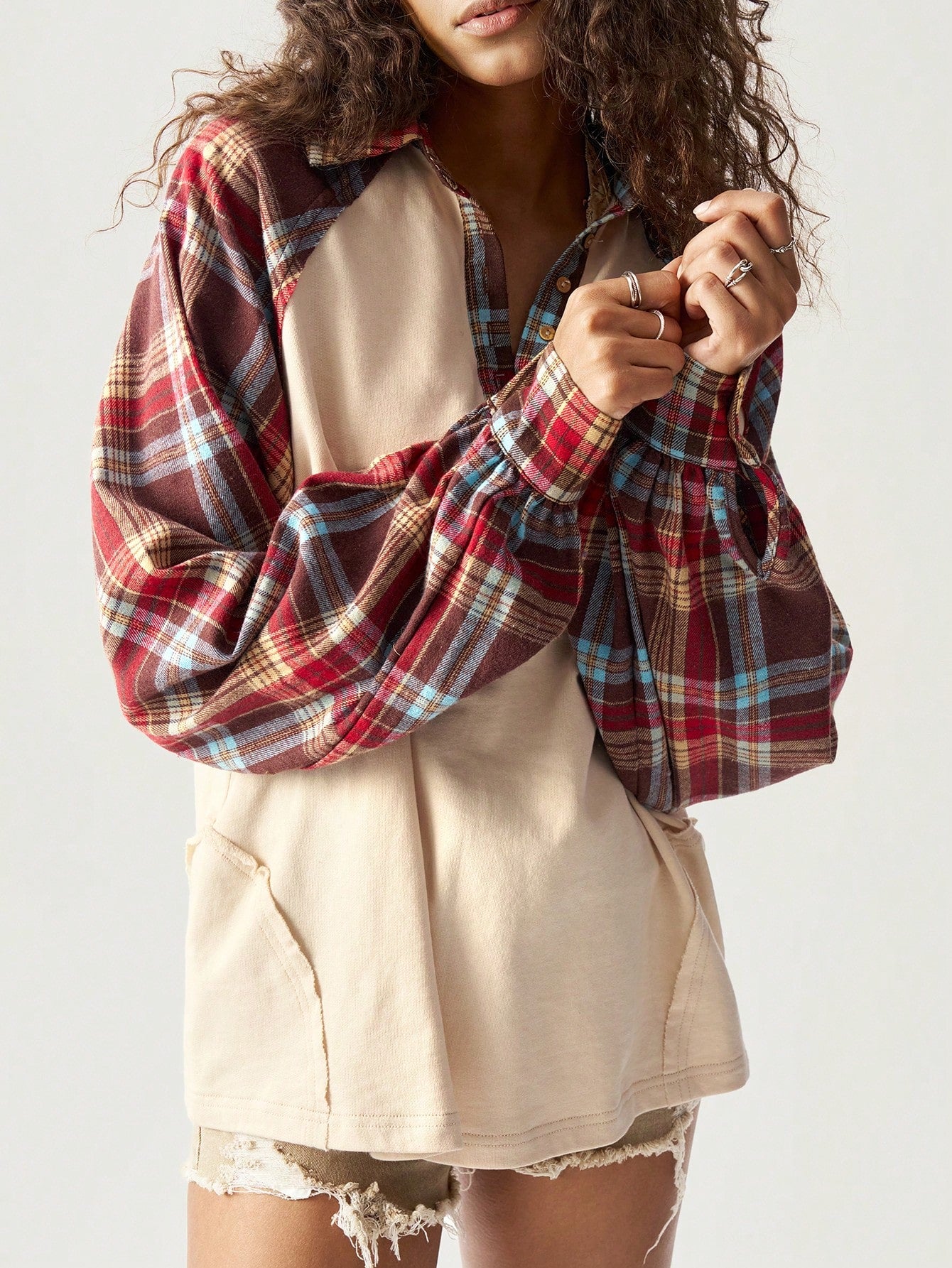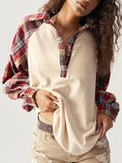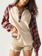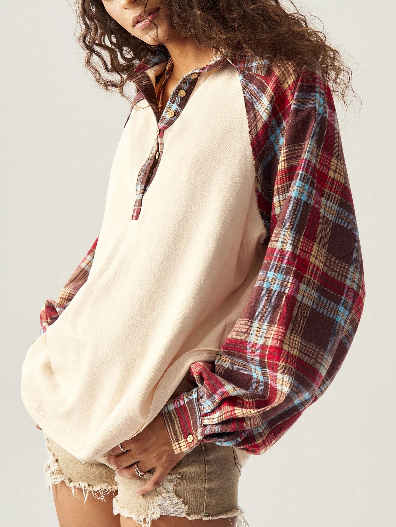 Bohemela Casual Knitted Patchwork Half-Zip Front Raglan Sleeve Loose Fit Women Sweatshirt