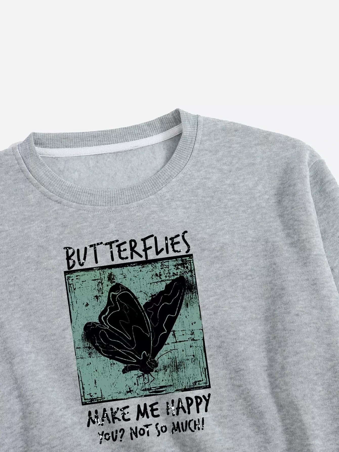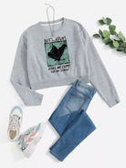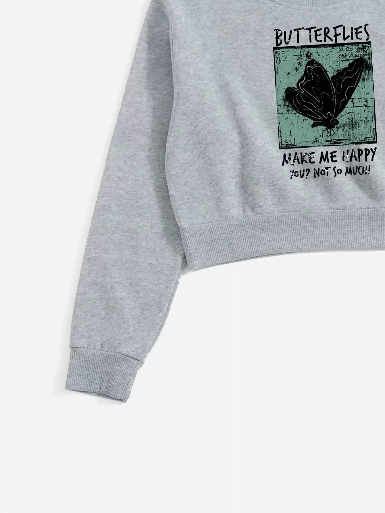Butterfly & Slogan Graphic Crop Pullover