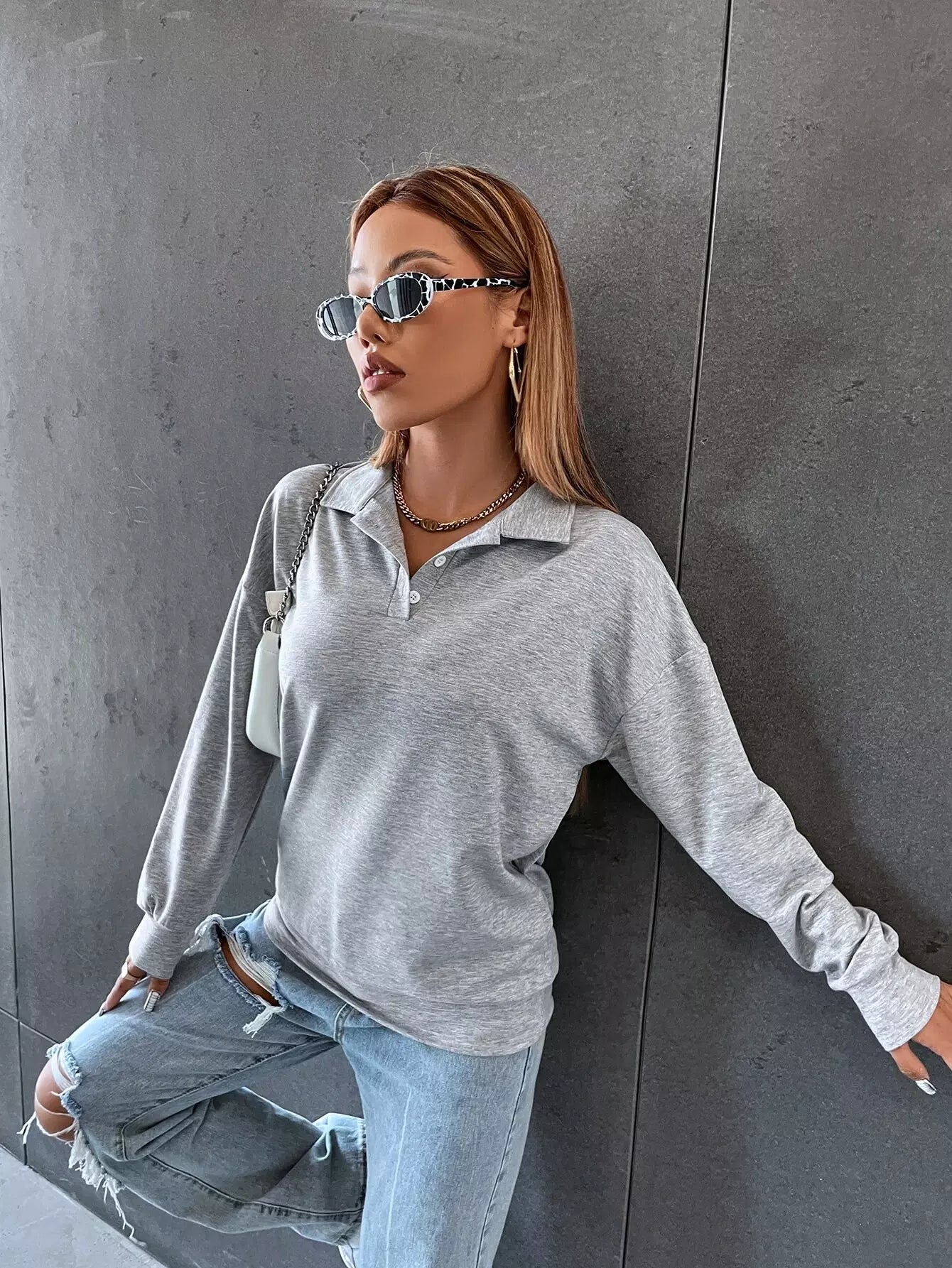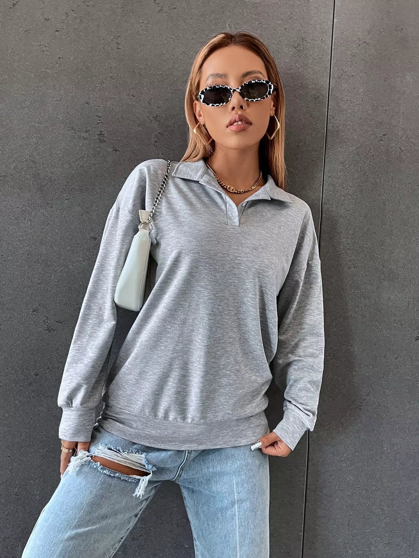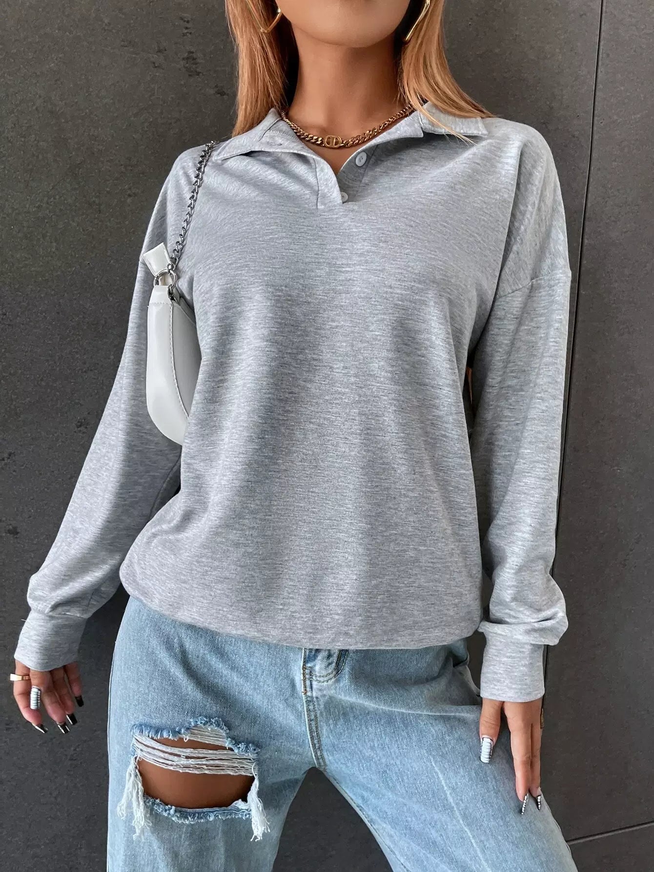 Button Half Placket Sweatshirt