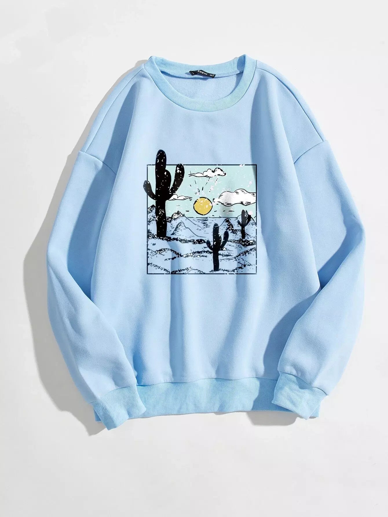 Cactus Print Drop Shoulder Thermal Lined Sweatshirt