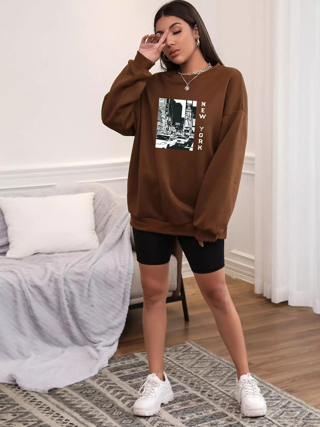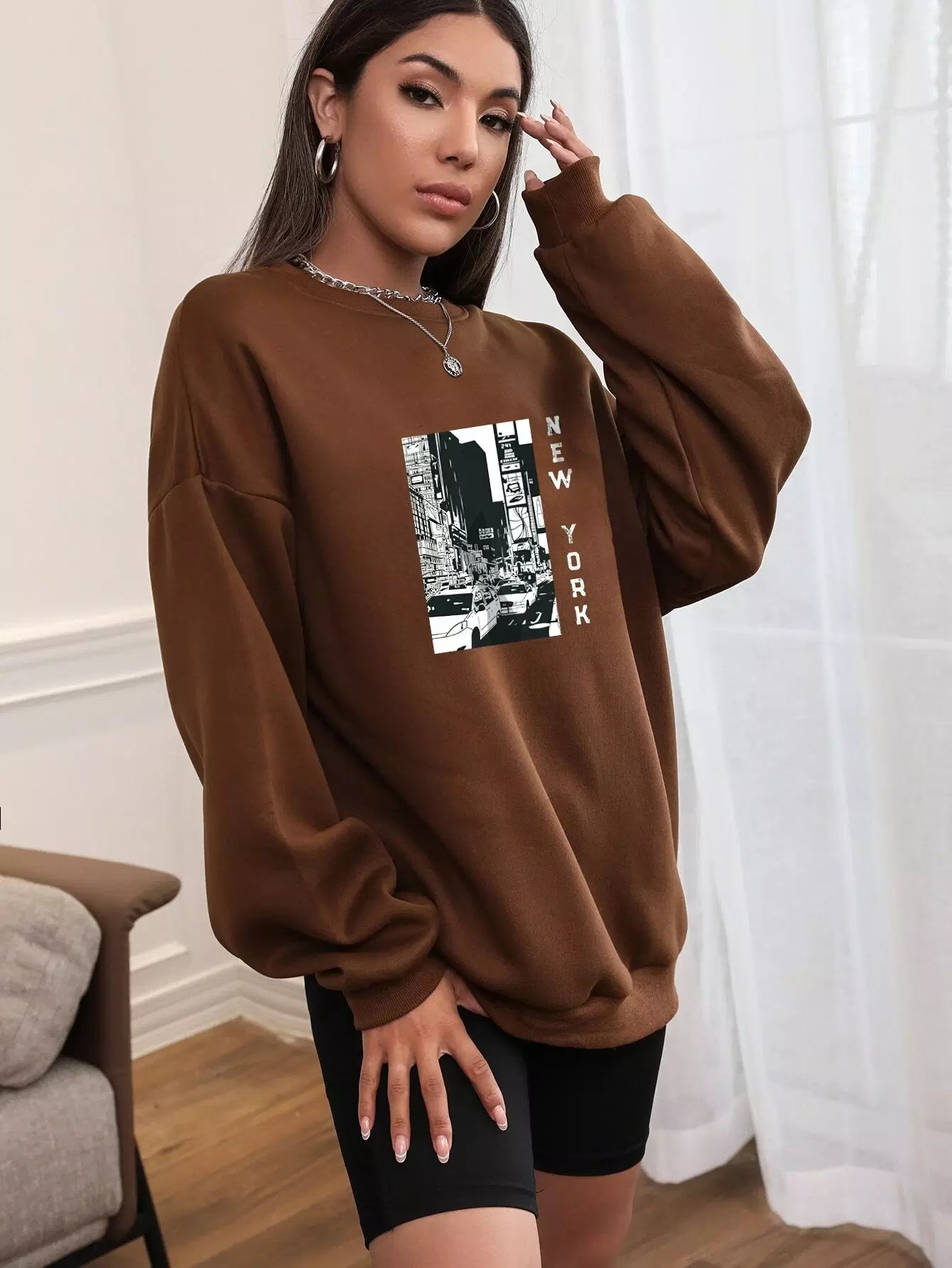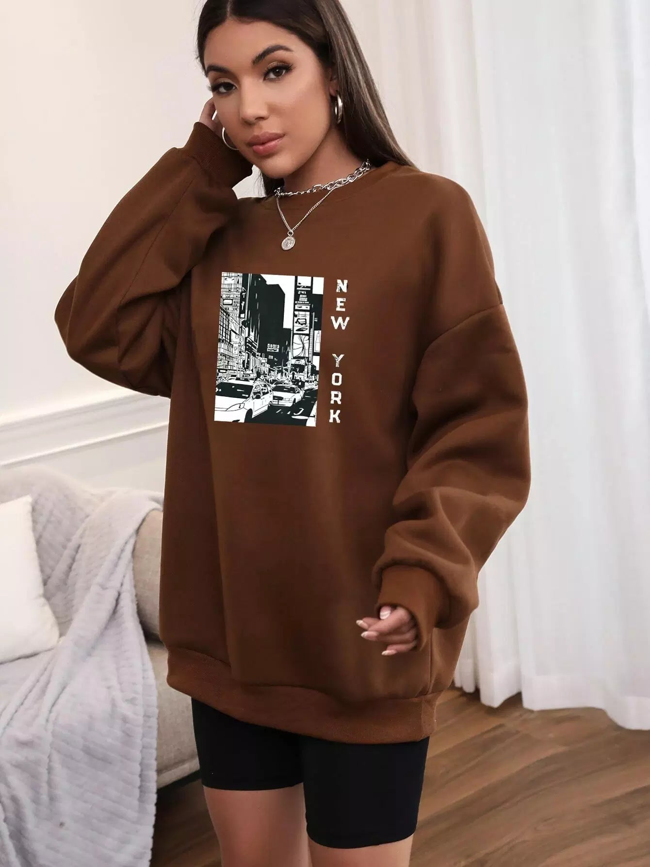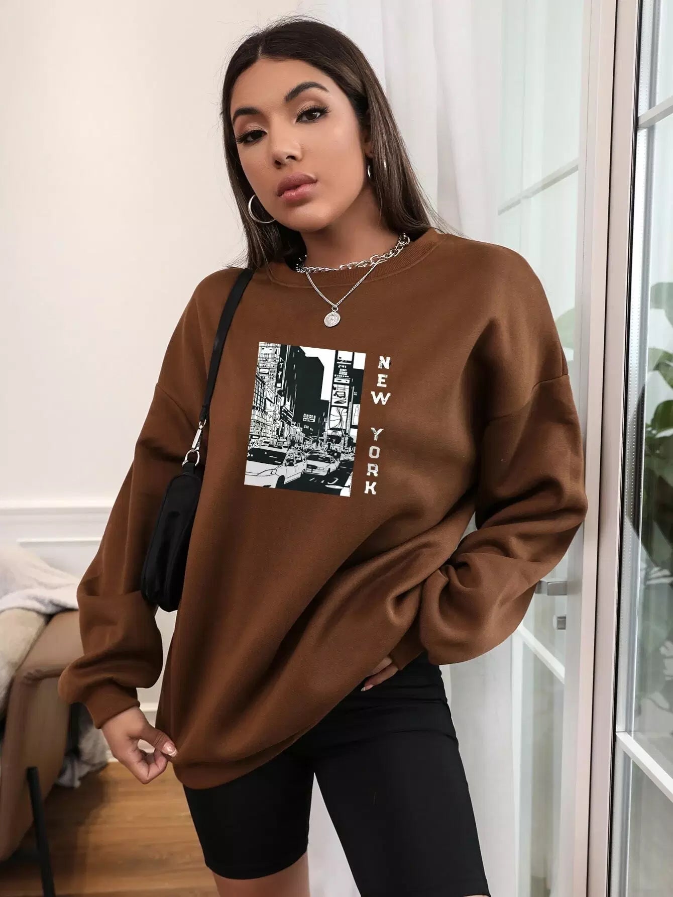 Car And Letter Graphic Drop Shoulder Thermal Pullover