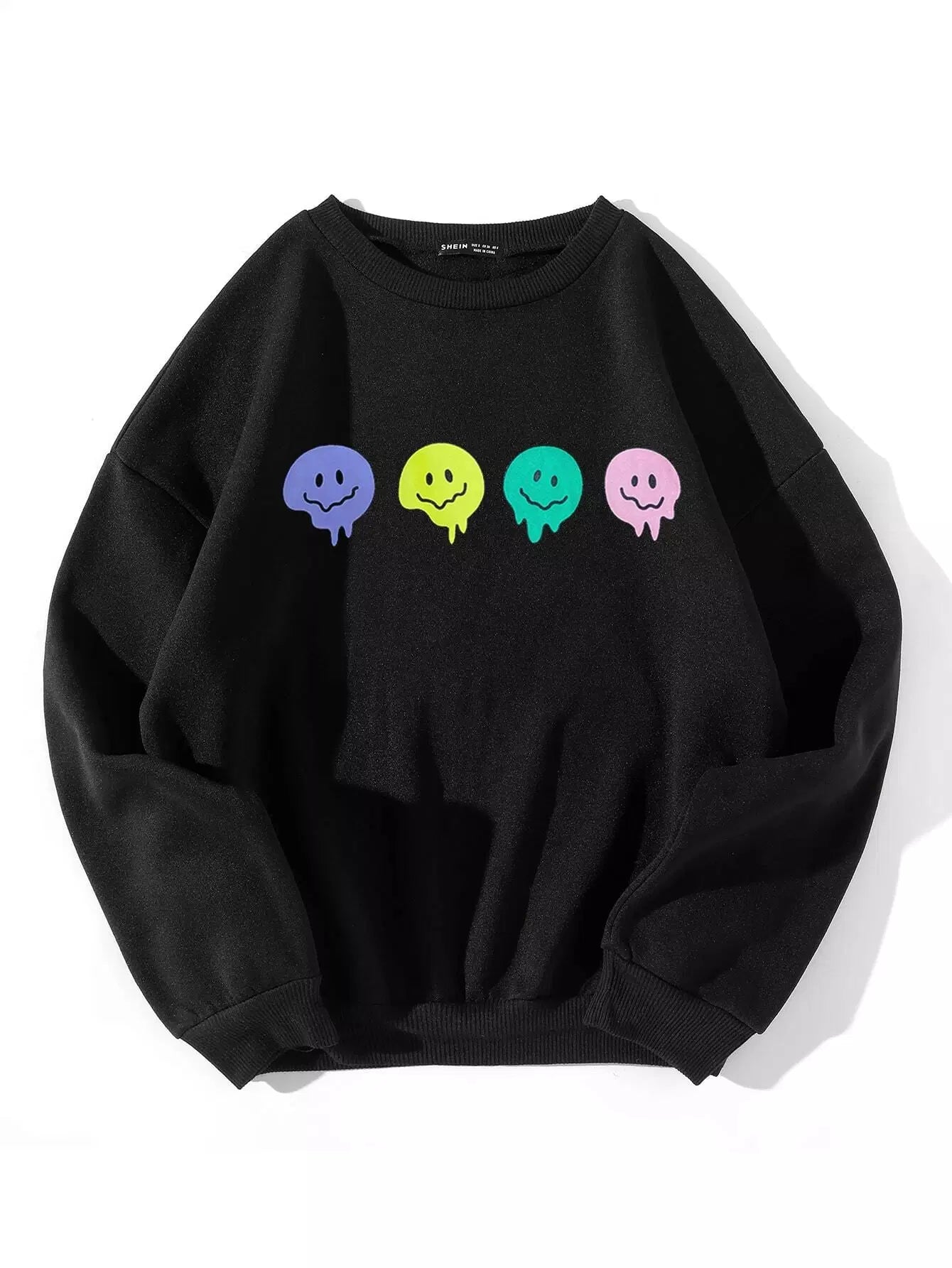 Cartoon Face Print Drop Shoulder Sweatshirt