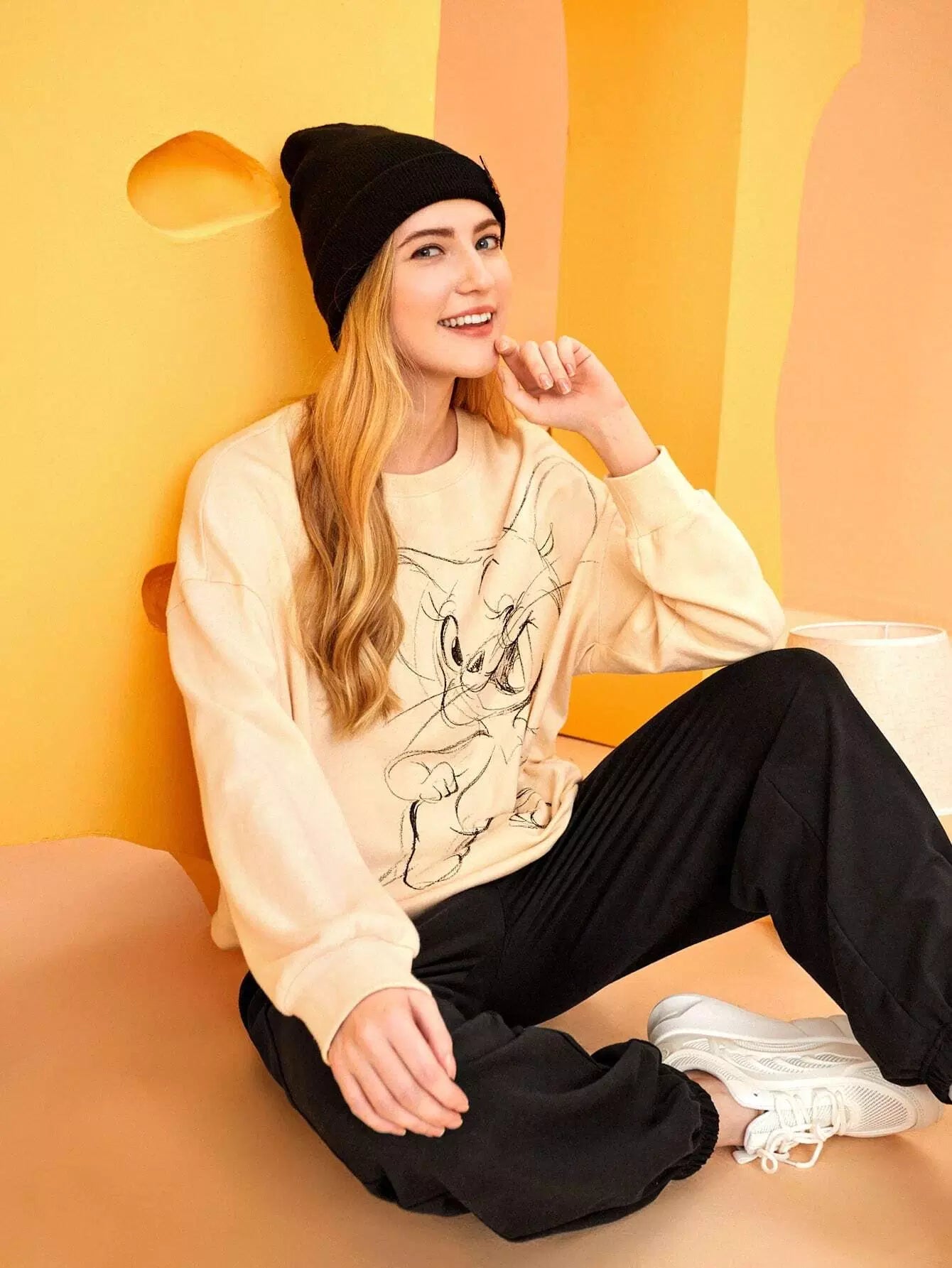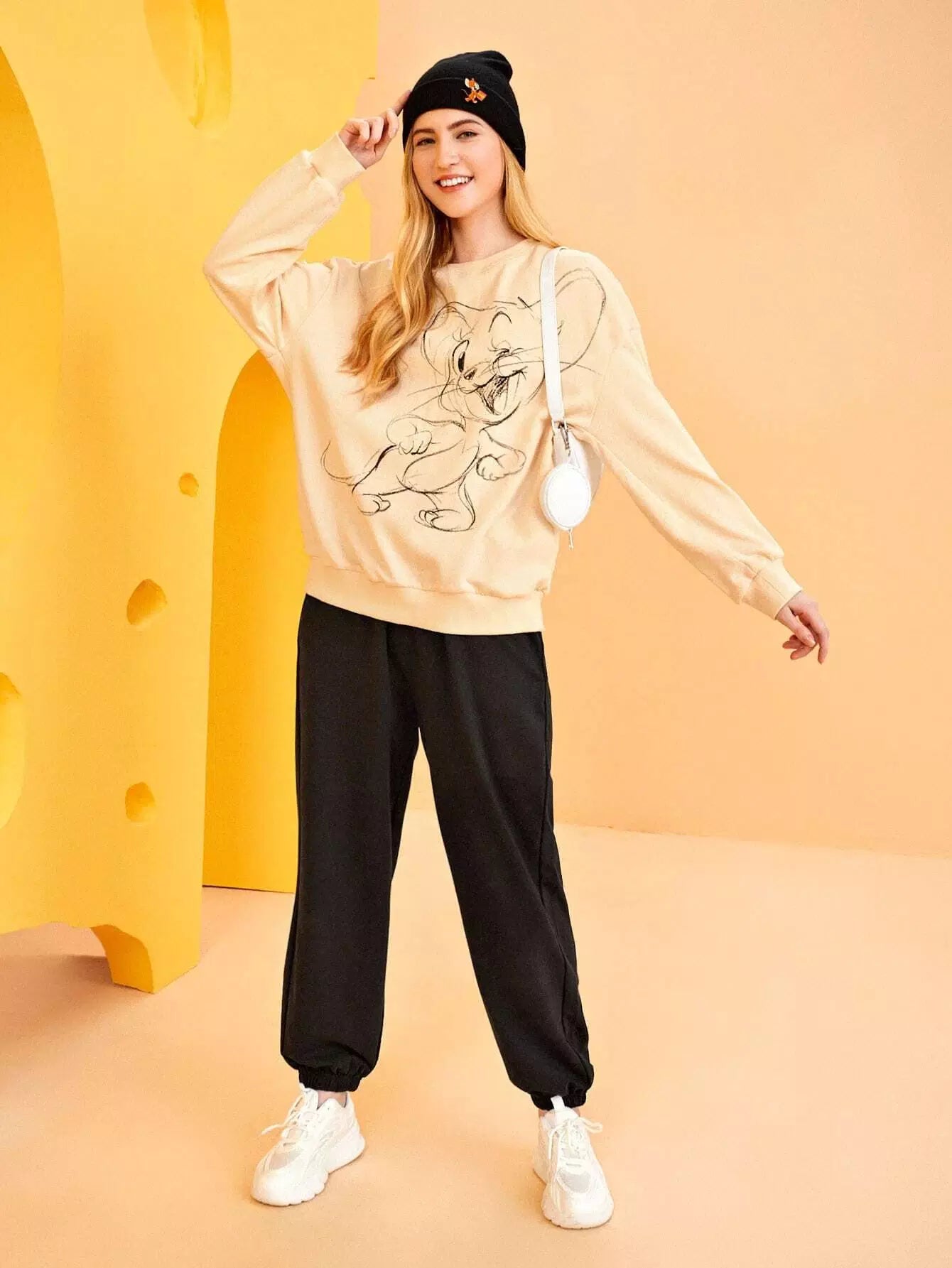 Cartoon Graphic Drop Shoulder Sweatshirt