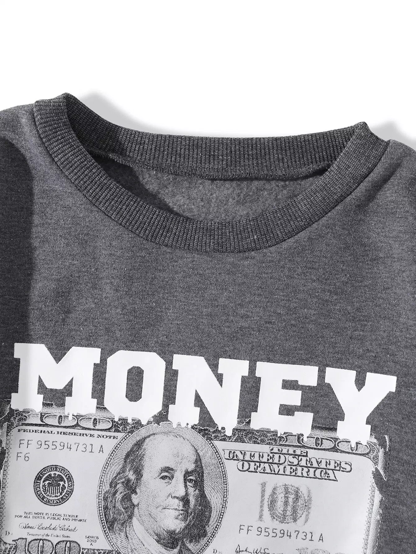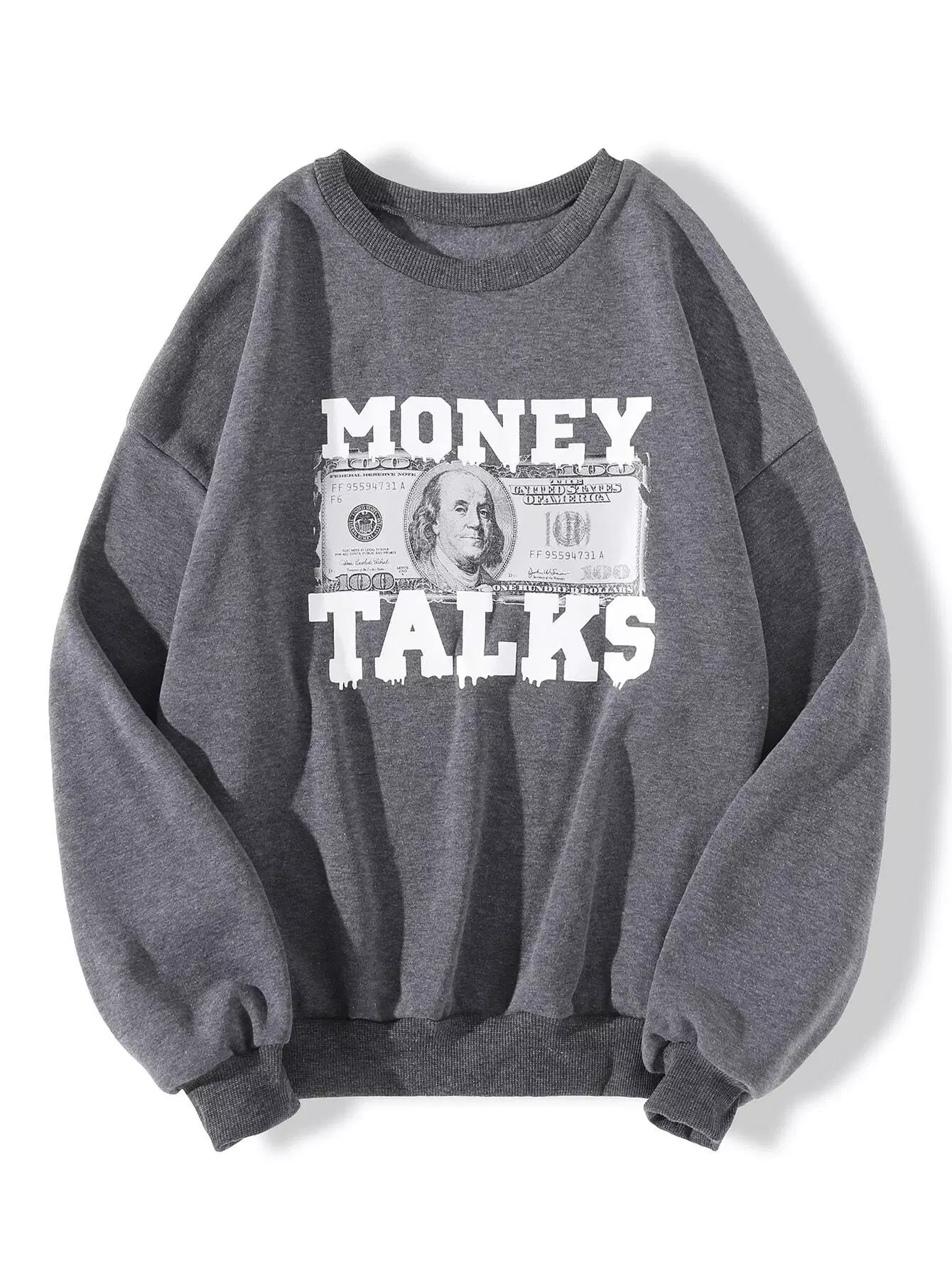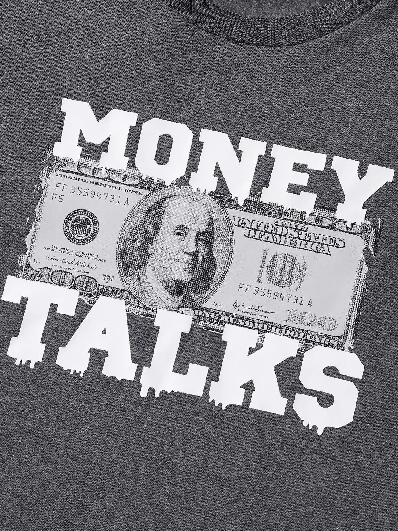 Cash & Slogan Graphic Drop Shoulder Pullover