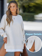 ChicMe Long Sleeve Pullover Sweatshirt Dress Zipper Slit Casual Dress