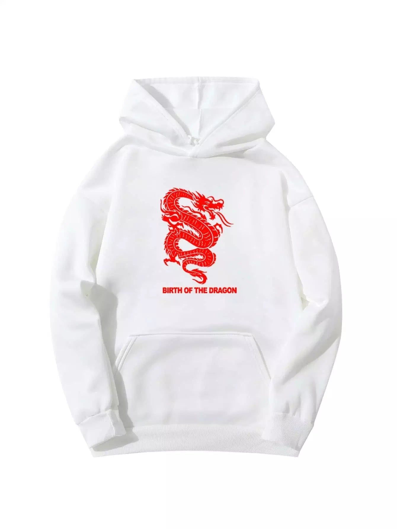 Chinese Dragon And Slogan Graphic Drop Shoulder Hoodie