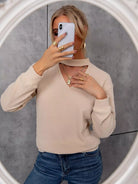Choker Neck Ribbed Knit Pullover
