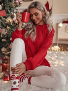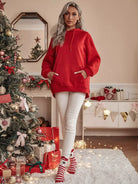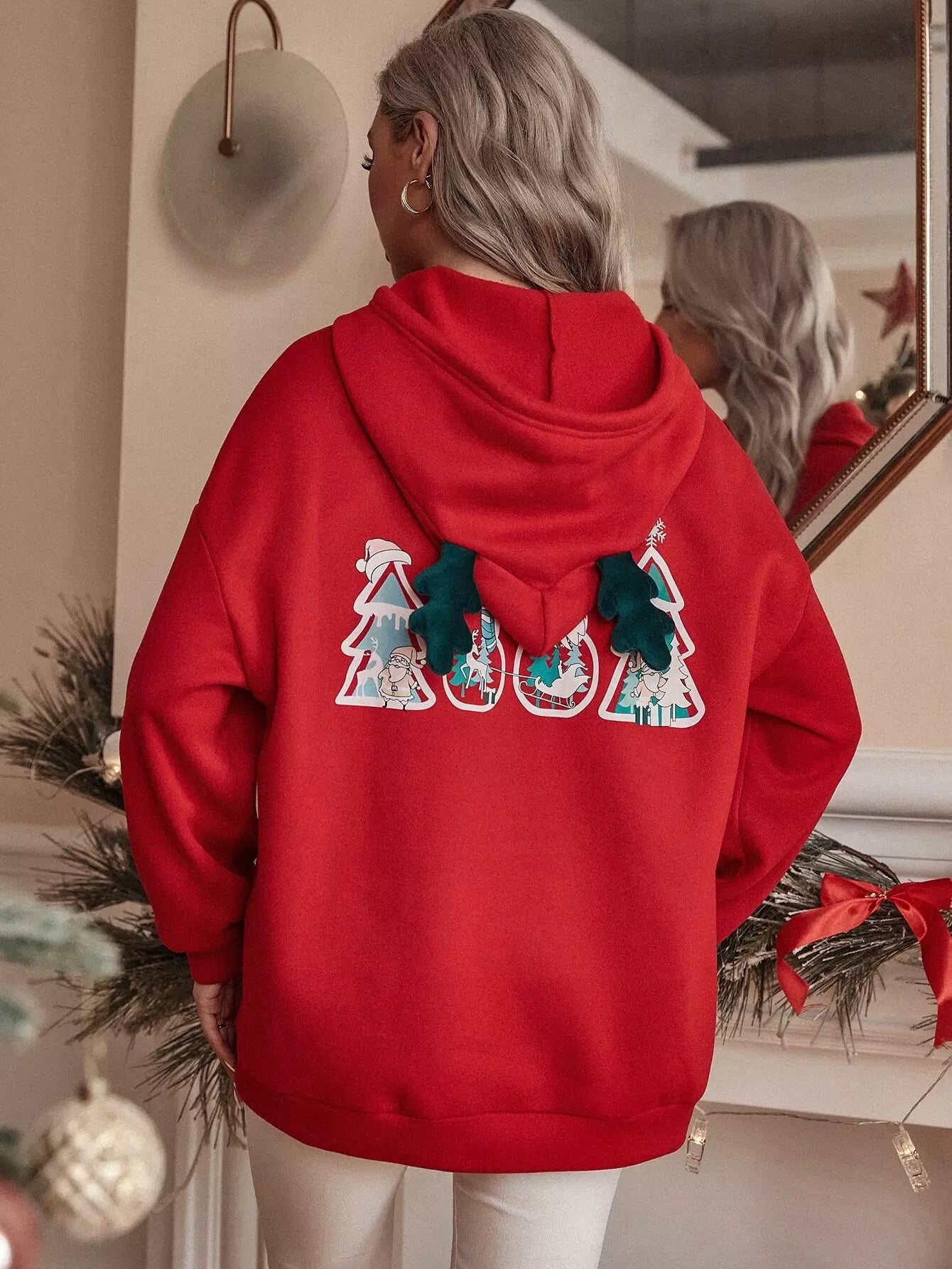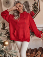 Christmas Print Kangaroo Pocket Drawstring Oversized Hoodie