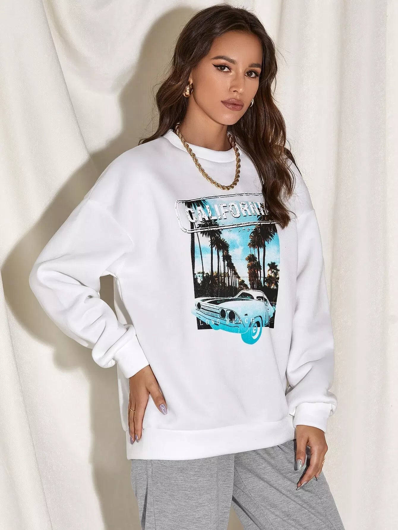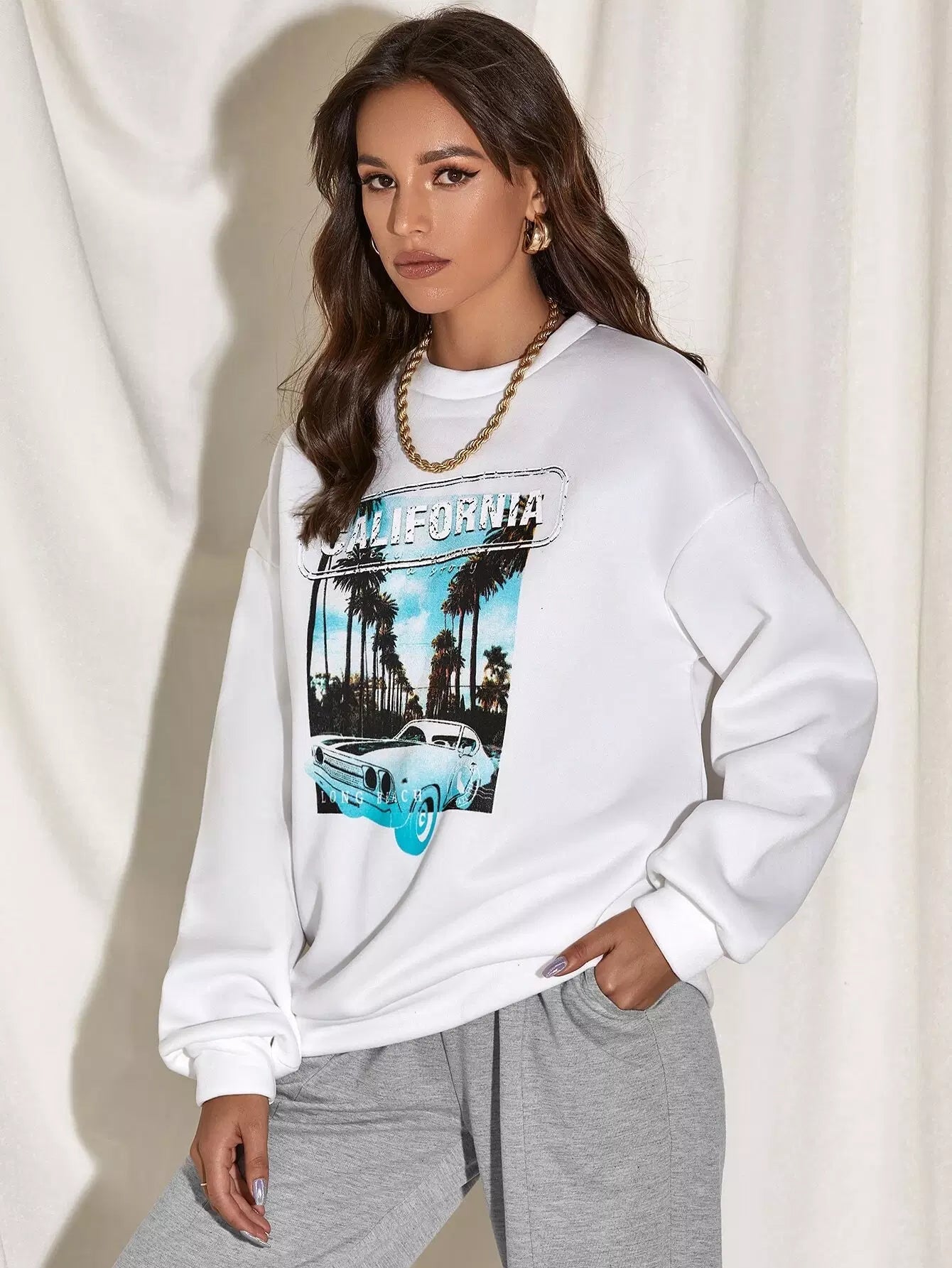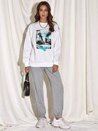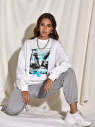 Coconut Tree & Letter Graphic Drop Shoulder Sweatshirt