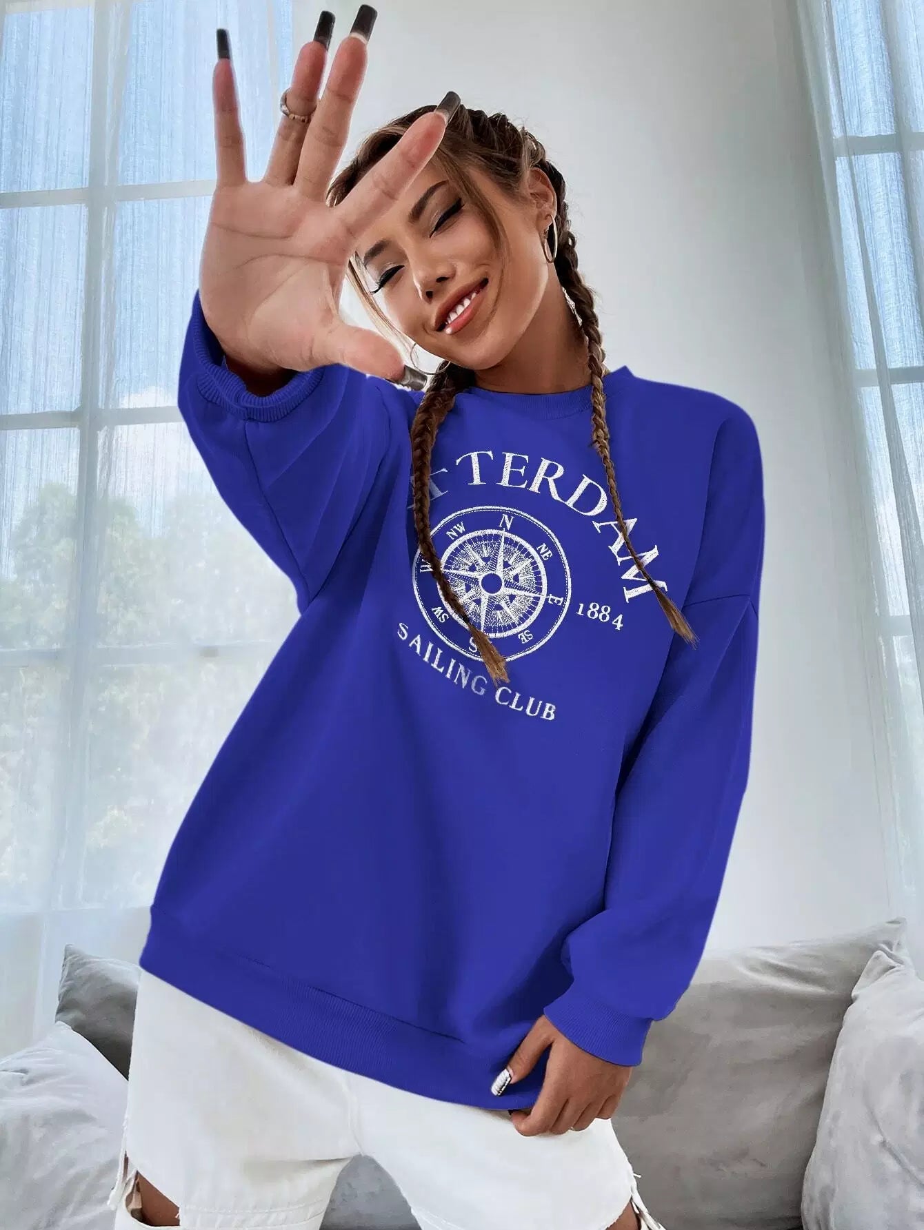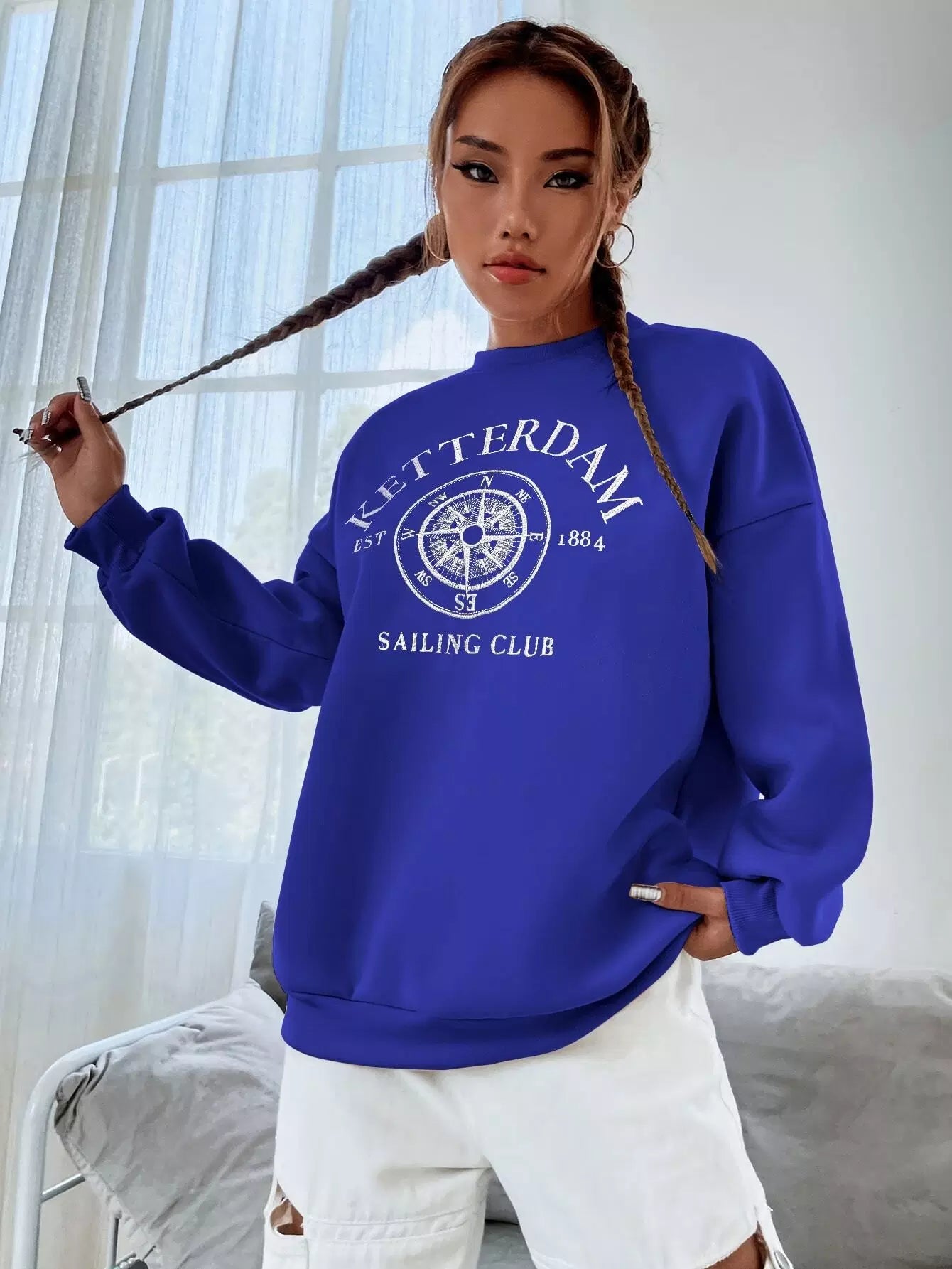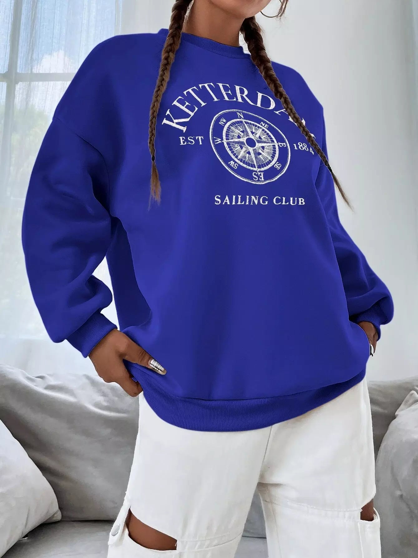 Compass & Letter Embroidery Drop Shoulder Sweatshirt