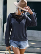 Women - Contrast Lace Drop Shoulder Sweatshirt