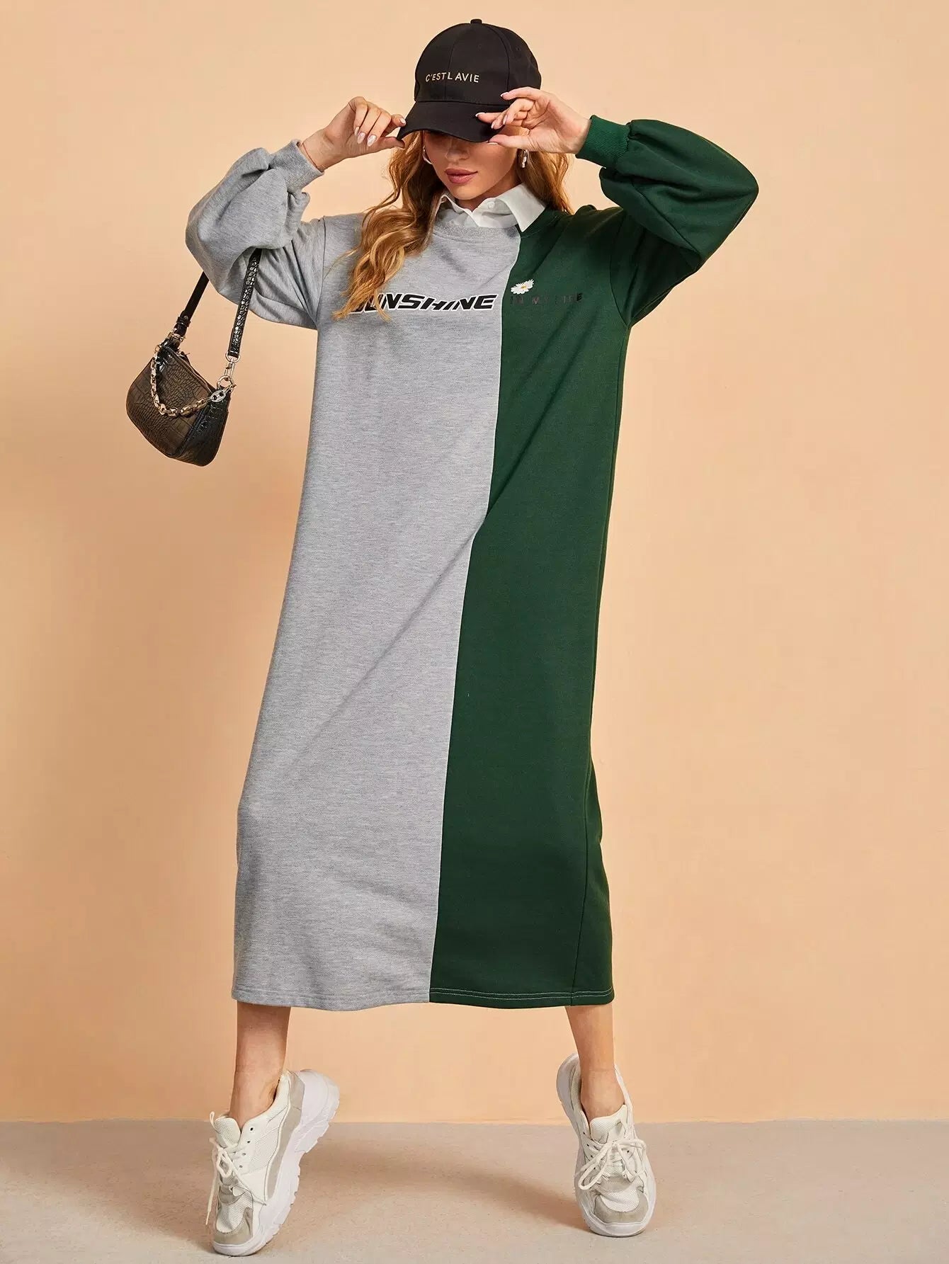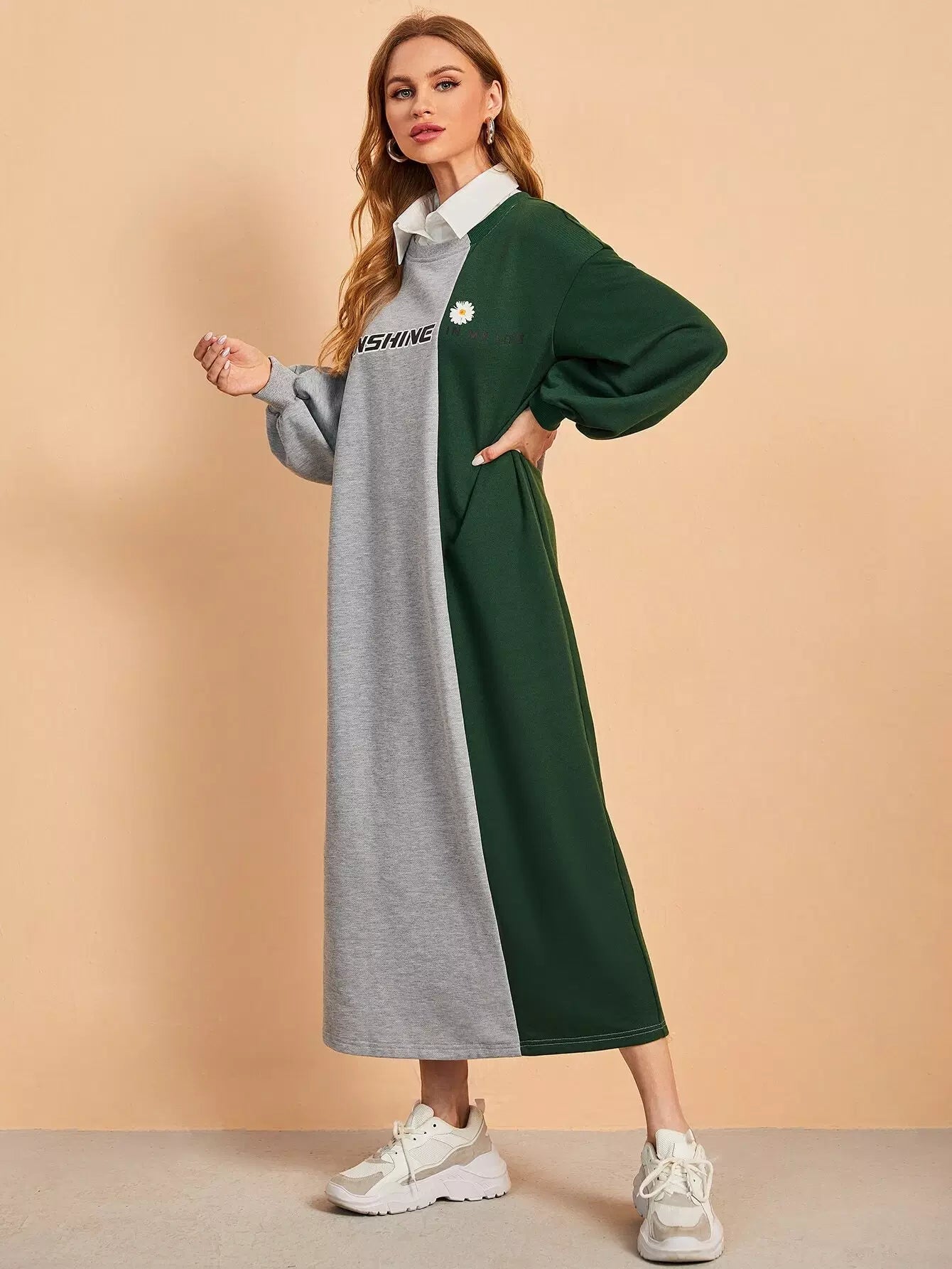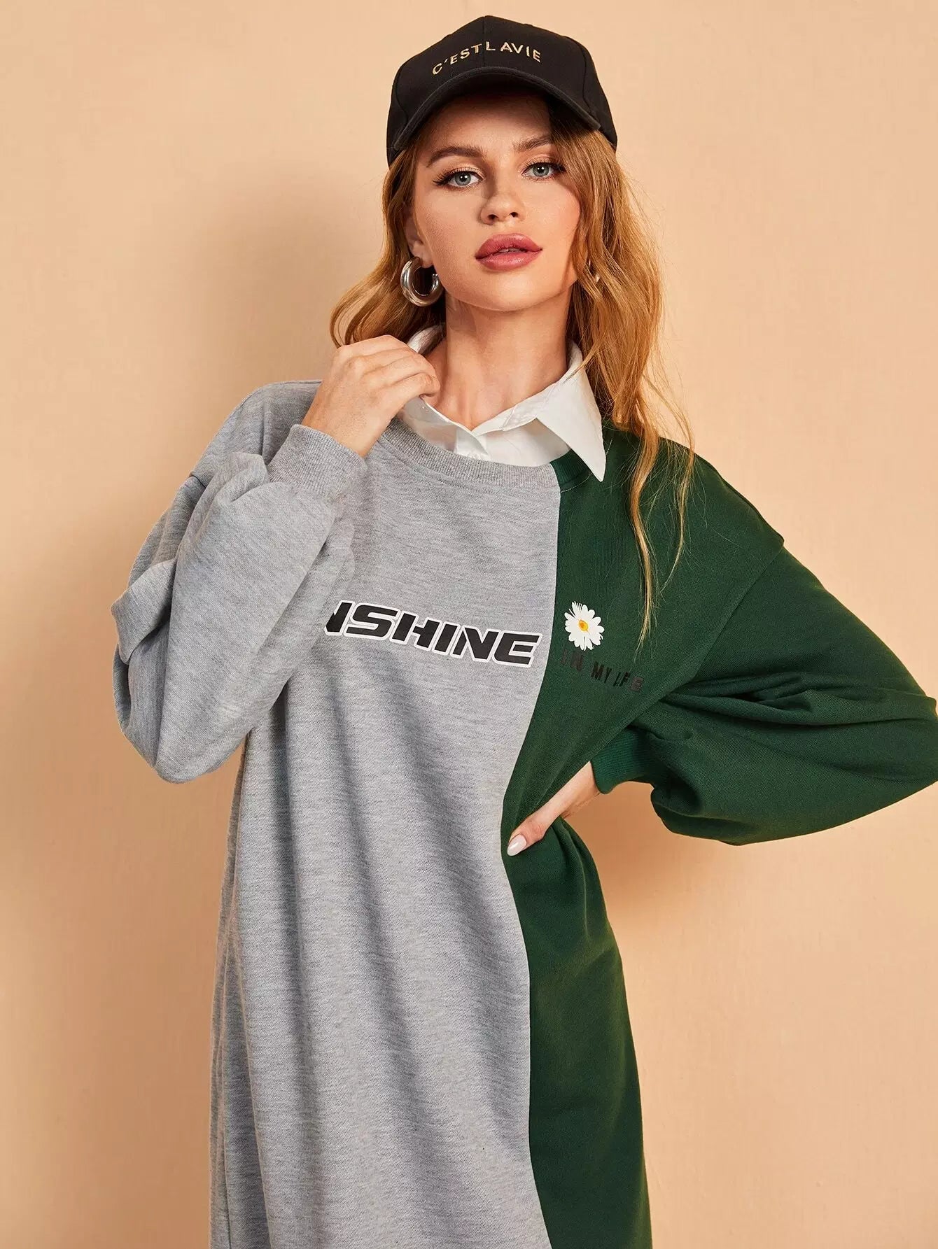 Daisy Floral & Slogan Graphic Spliced Sweatshirt Dress