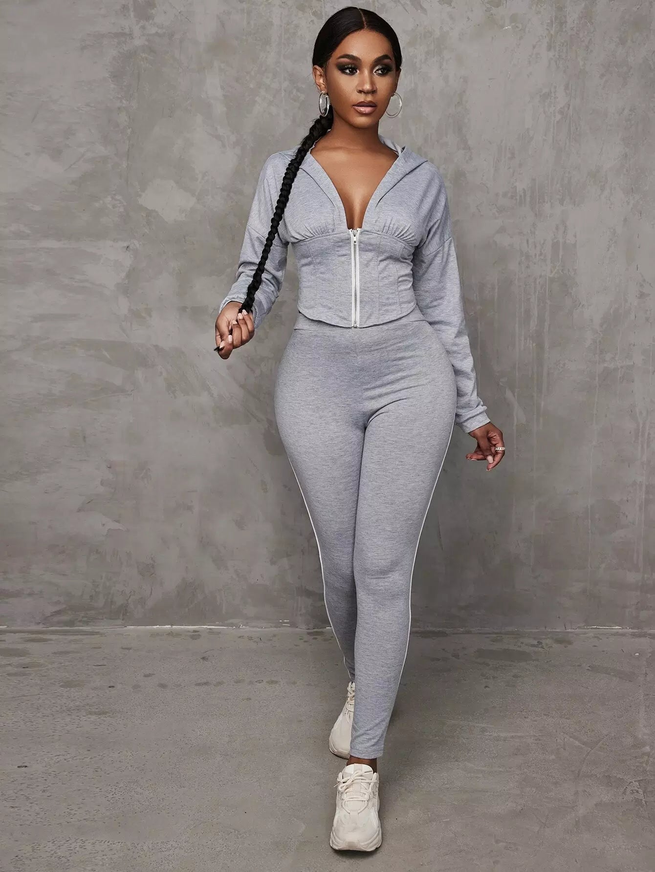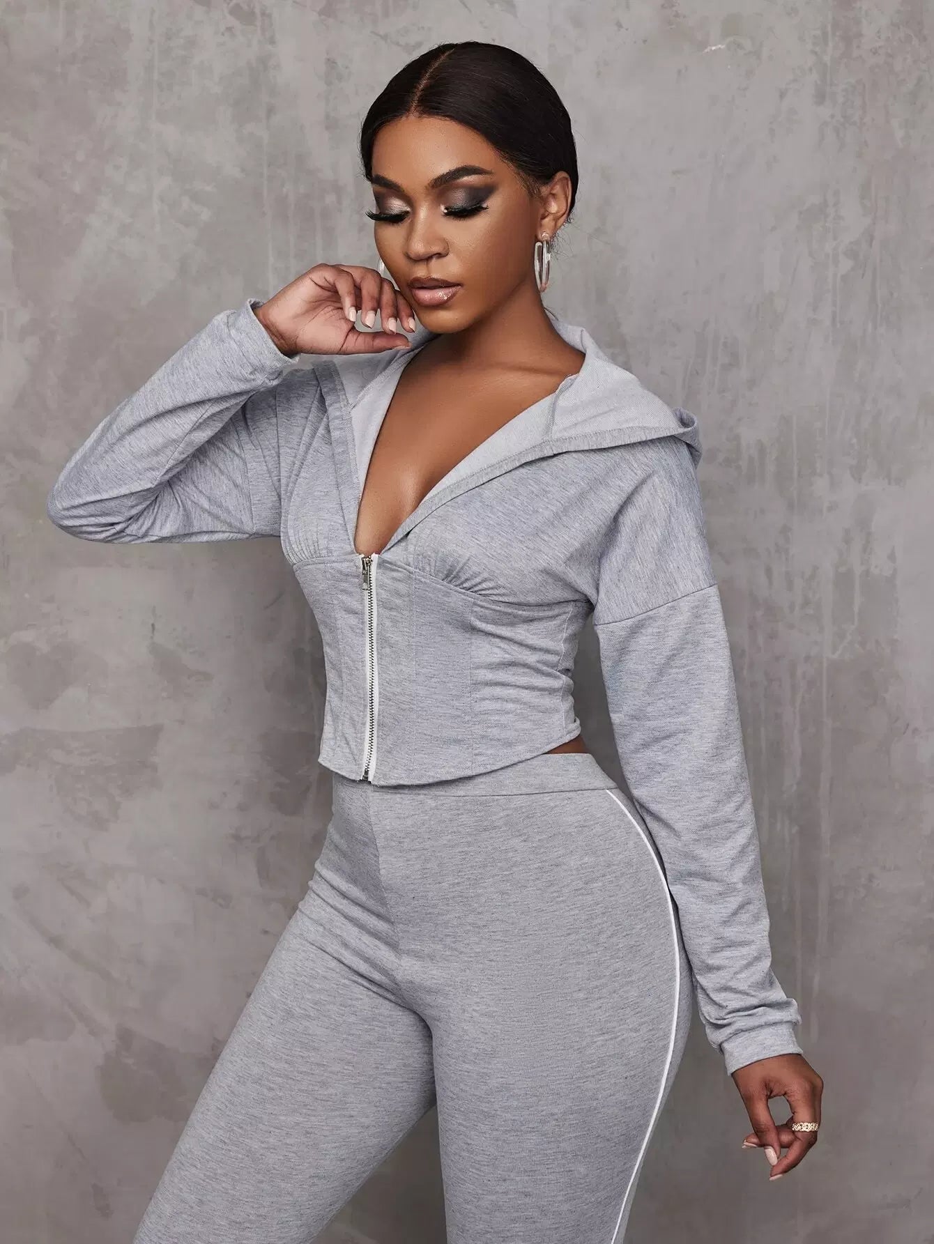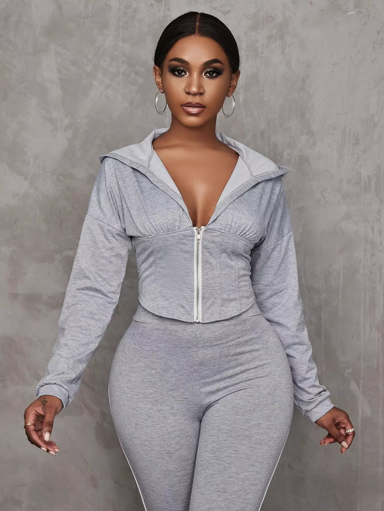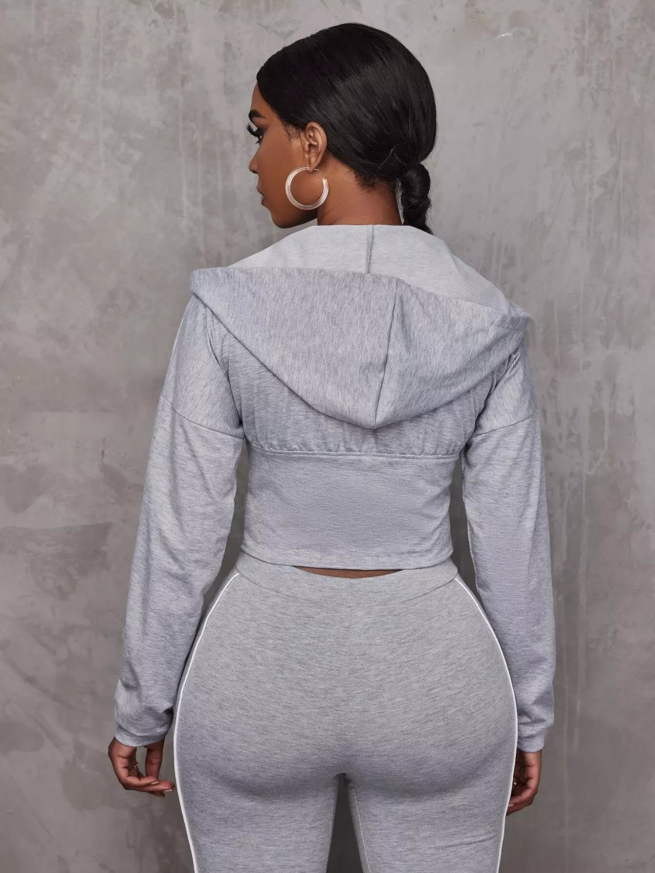 Drop Shoulder Corset Waist Zip Up Hoodie