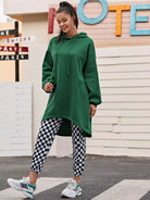 Drop Shoulder Dip Hem Thermal Longline Hoodie