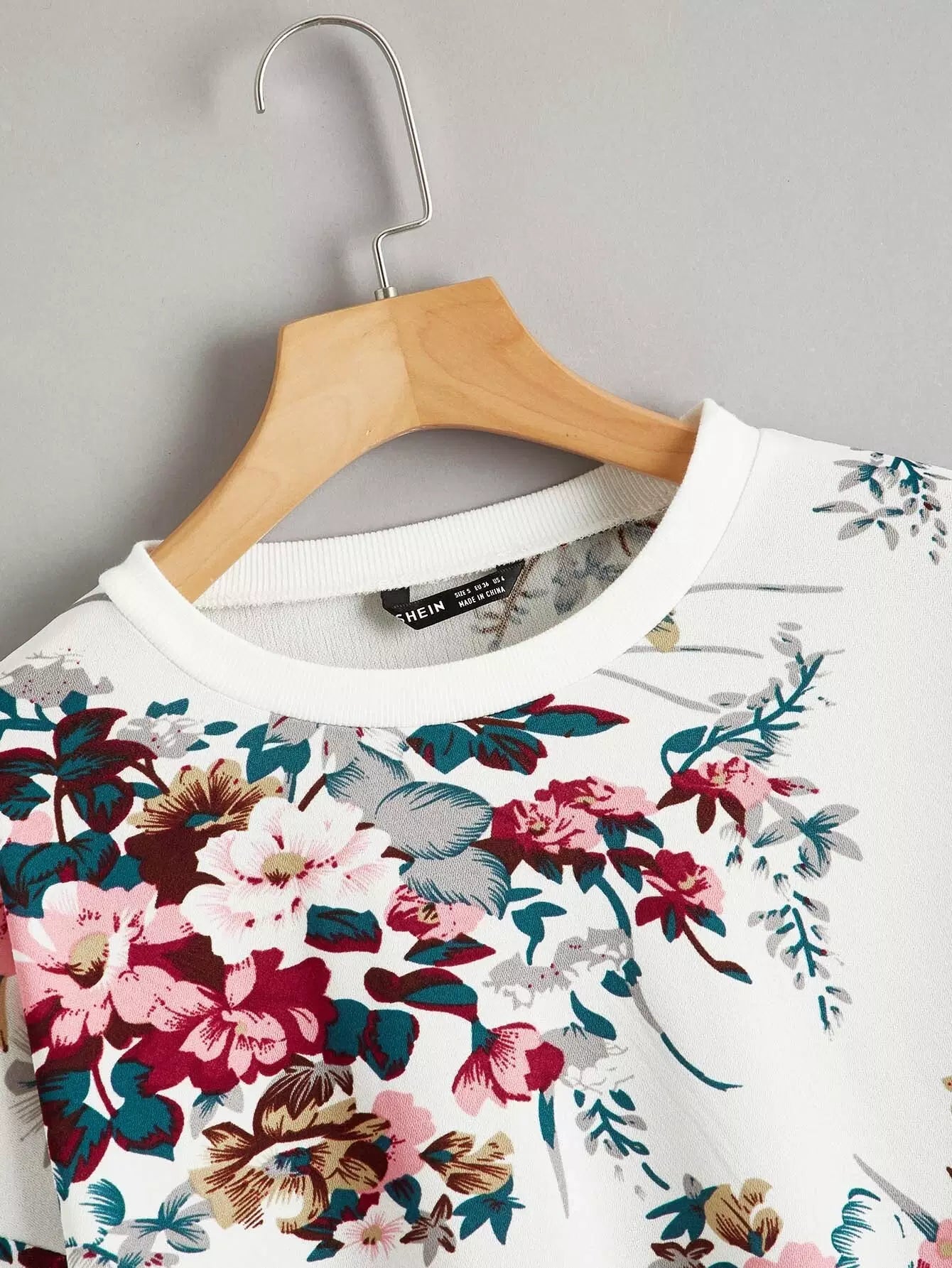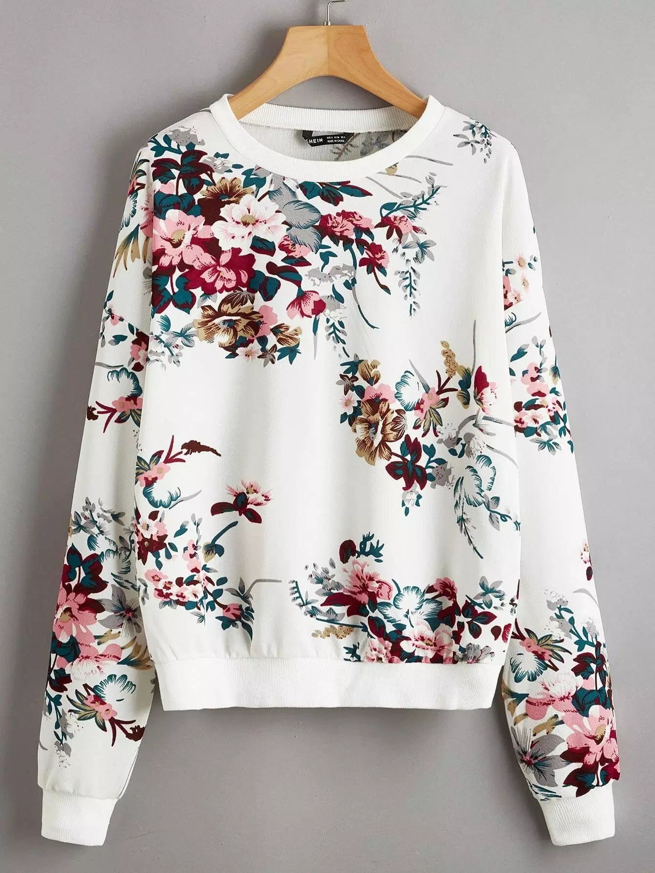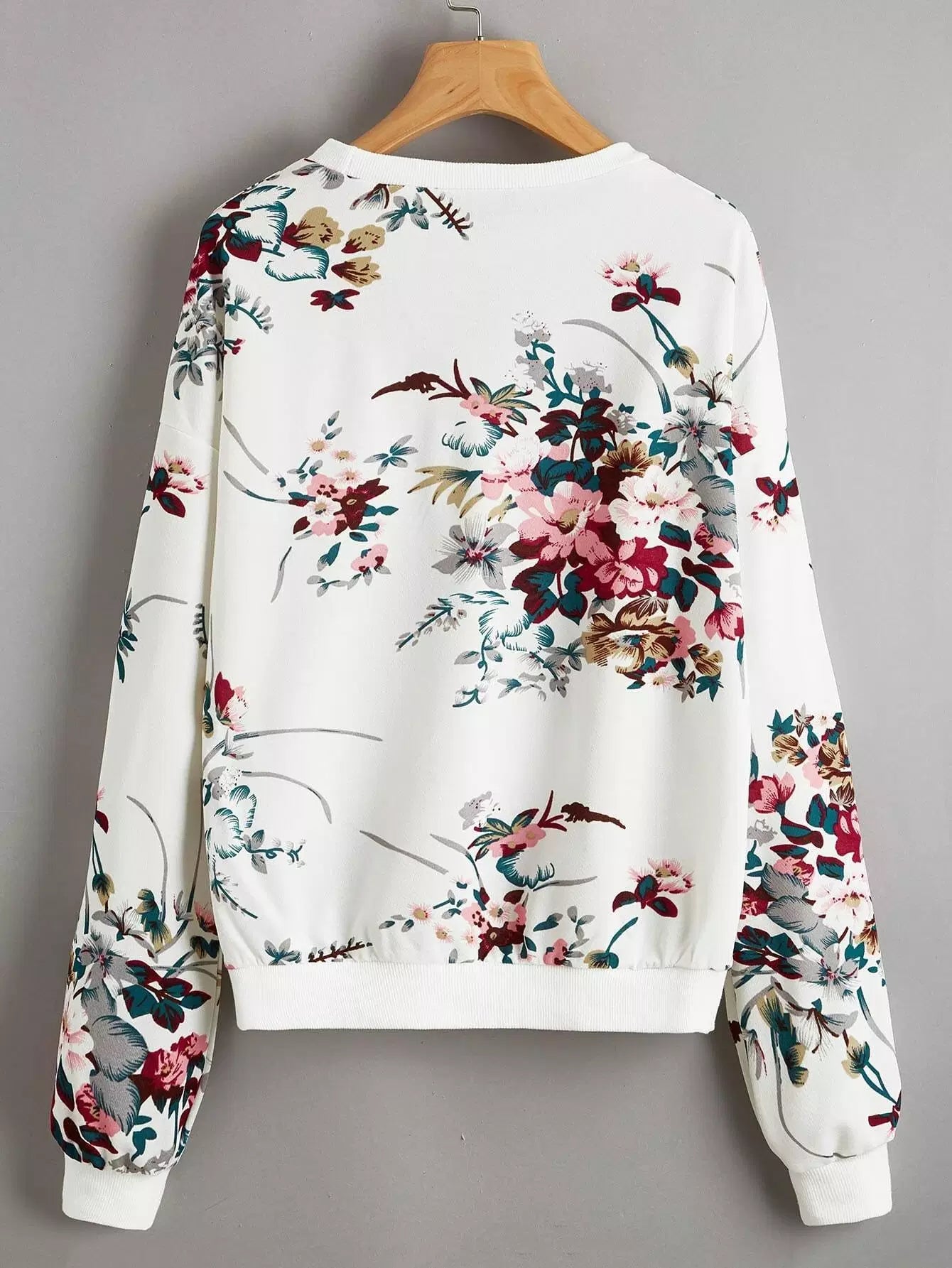 Drop Shoulder Floral Print Pullover