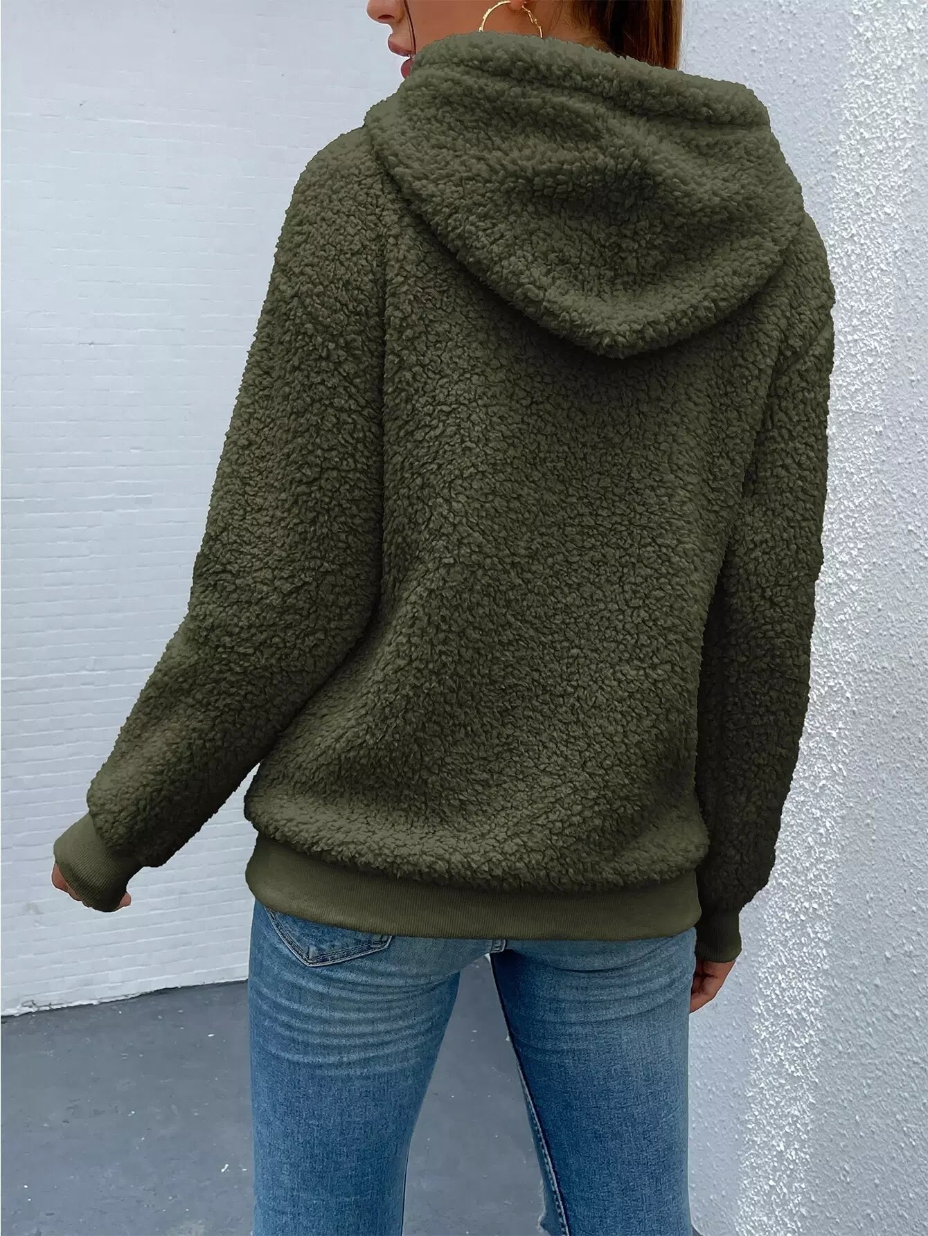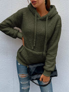 Drop Shoulder Kangaroo Pocket Drawstring Teddy Hoodie