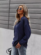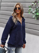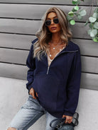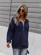 Drop Shoulder Kangaroo Pocket Zip Front Sweatshirt