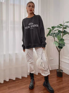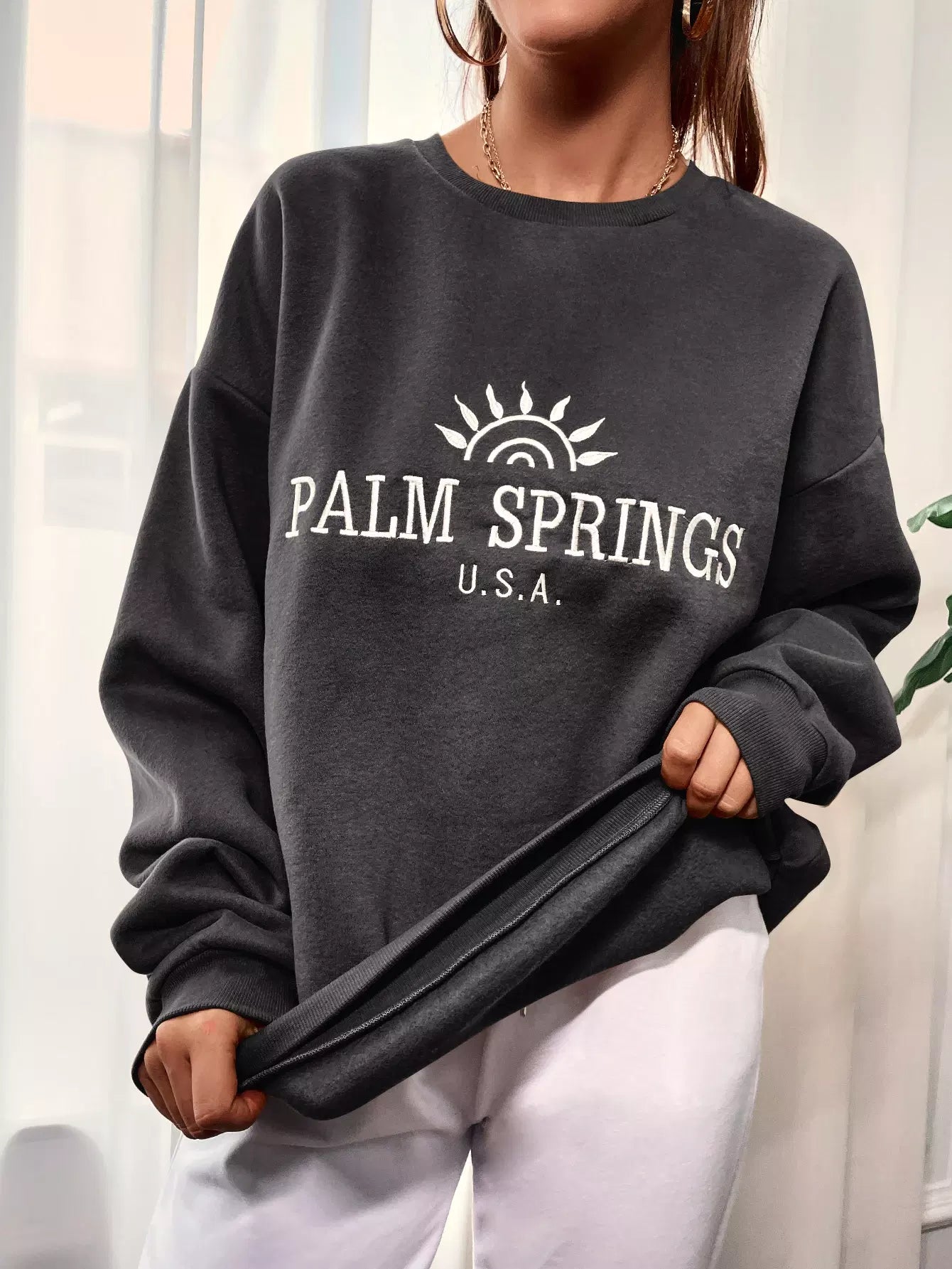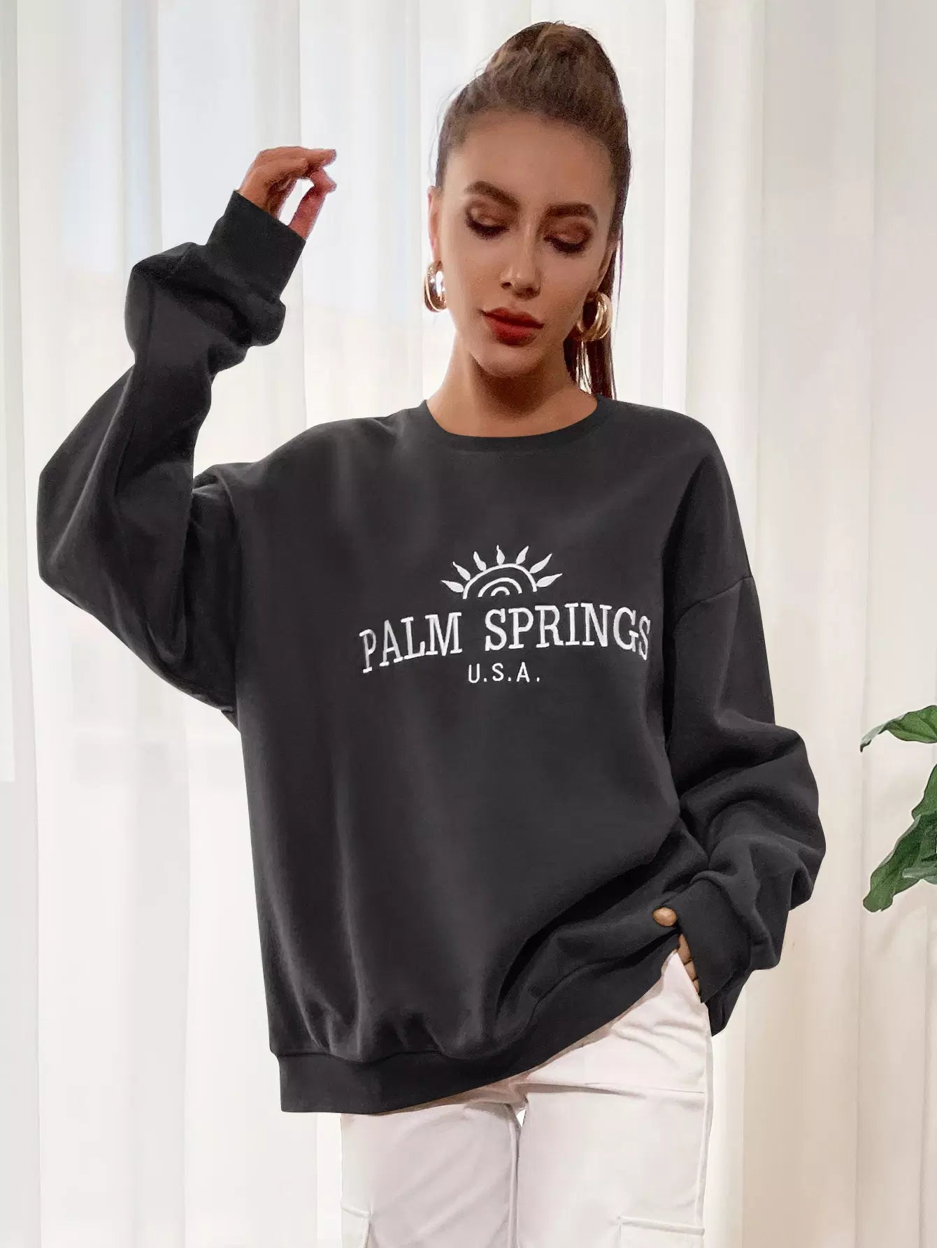 Drop Shoulder Letter Embroidery Oversized Sweatshirt
