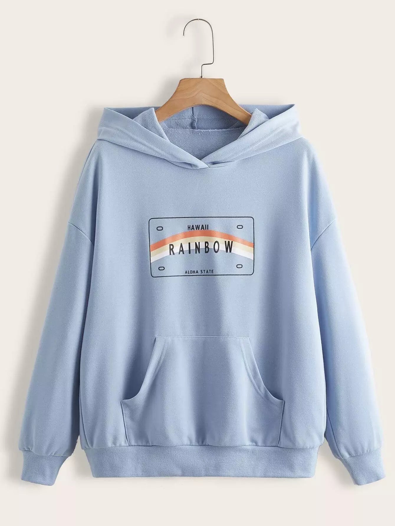 Drop Shoulder Letter & Geo Graphic Hoodie