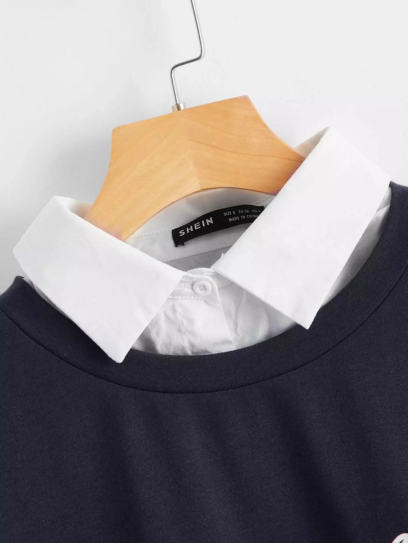 Drop Shoulder Letter Graphic 2 In 1 Pullover