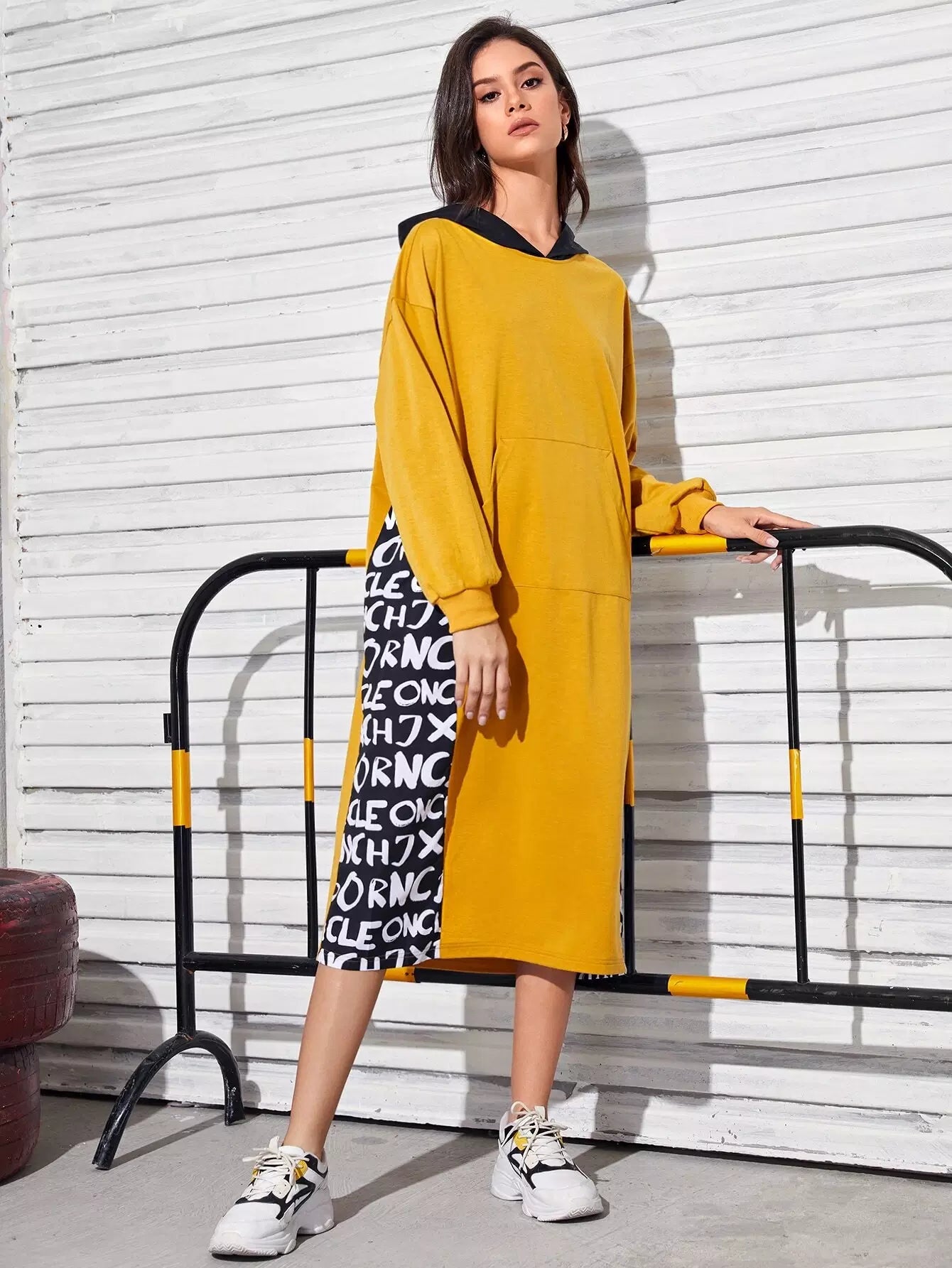 Drop Shoulder Letter Graphic Sweatshirt Dress
