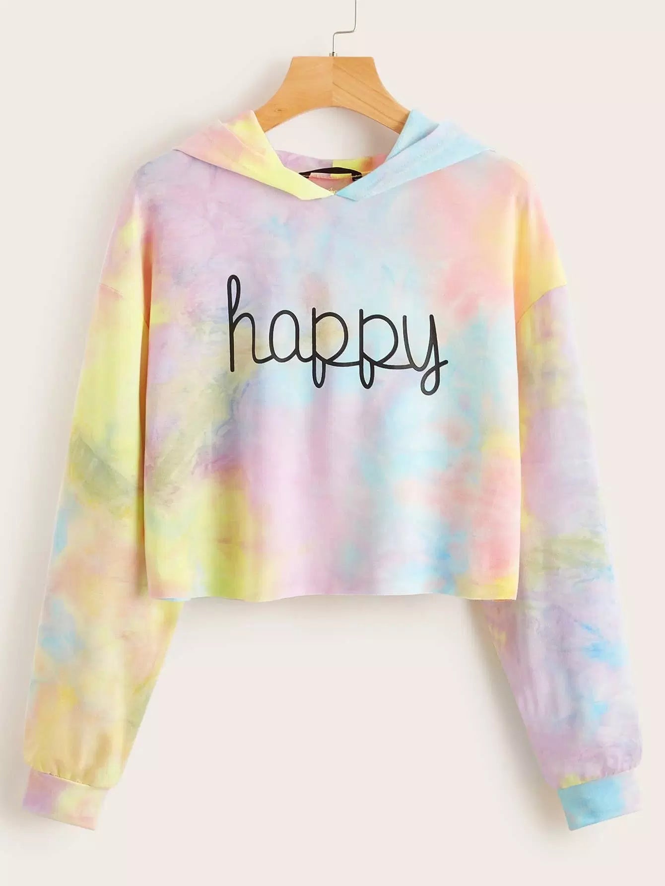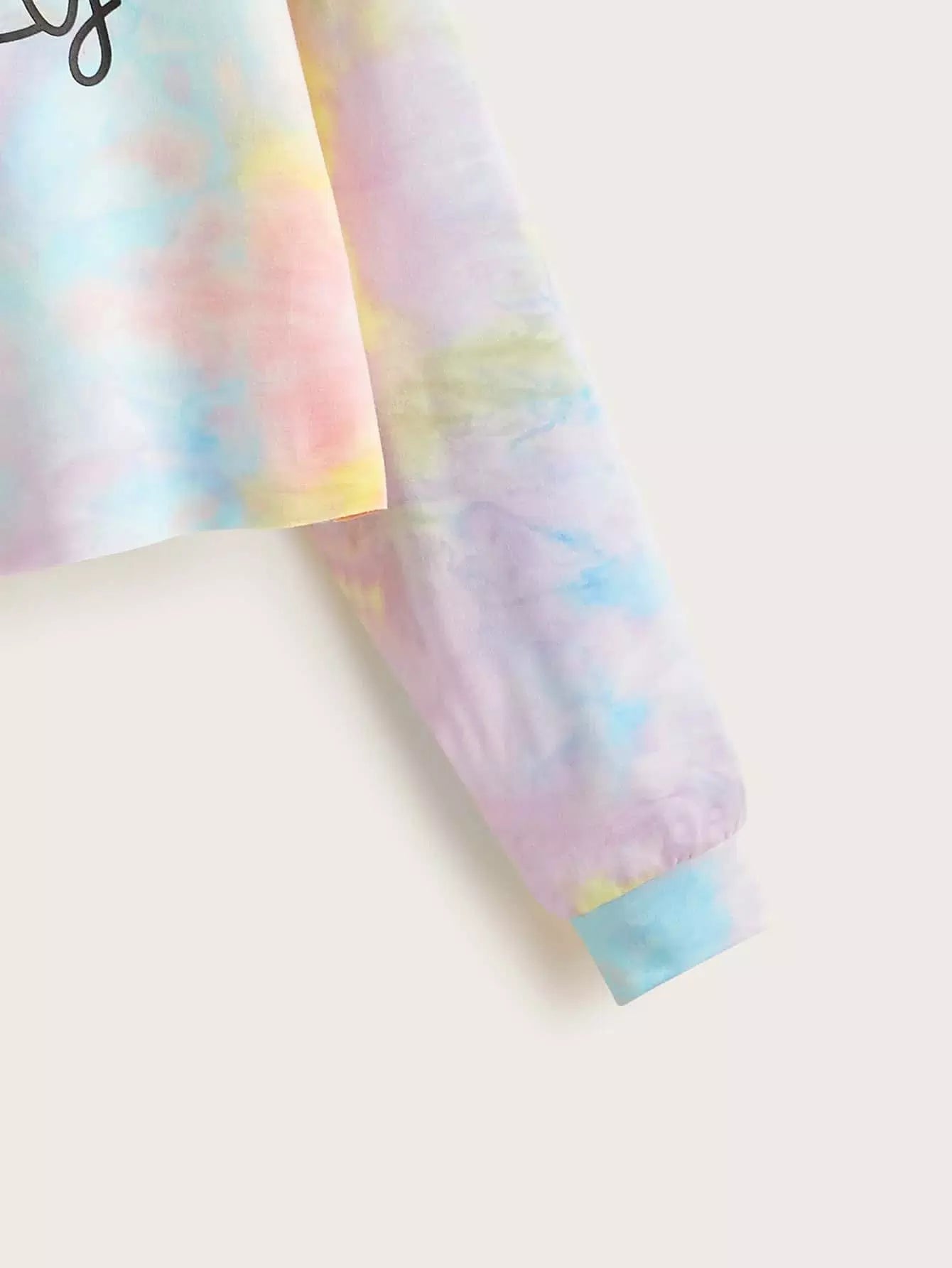 Drop Shoulder Letter Graphic Tie Dye Hoodie