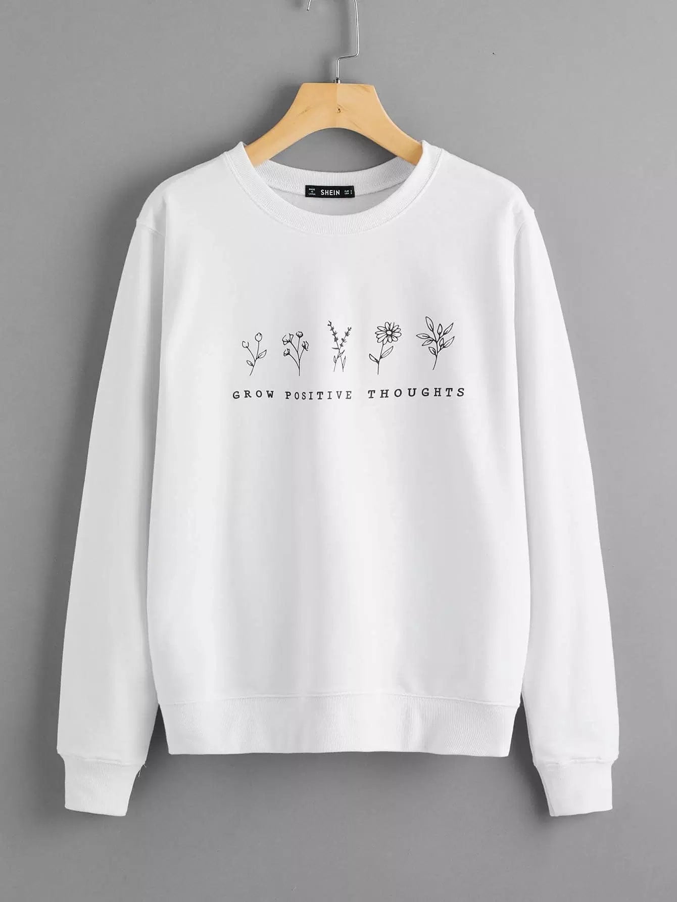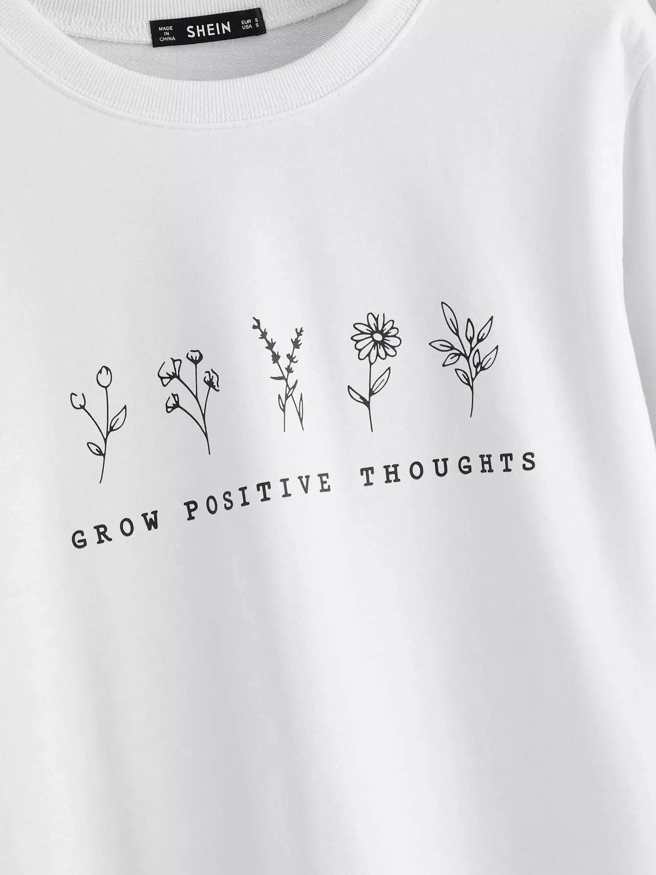Drop Shoulder Letter & Plants Graphic Sweatshirt