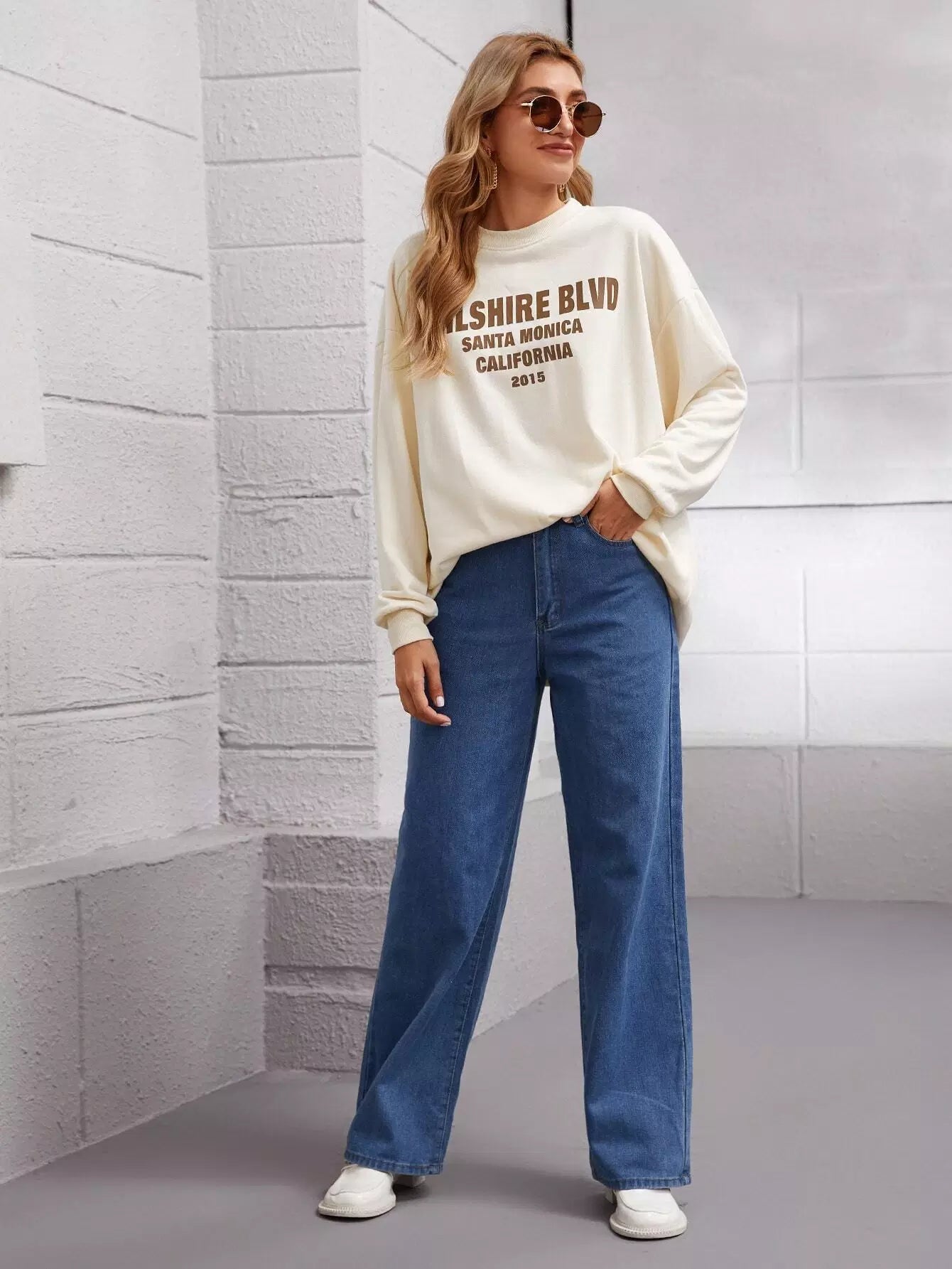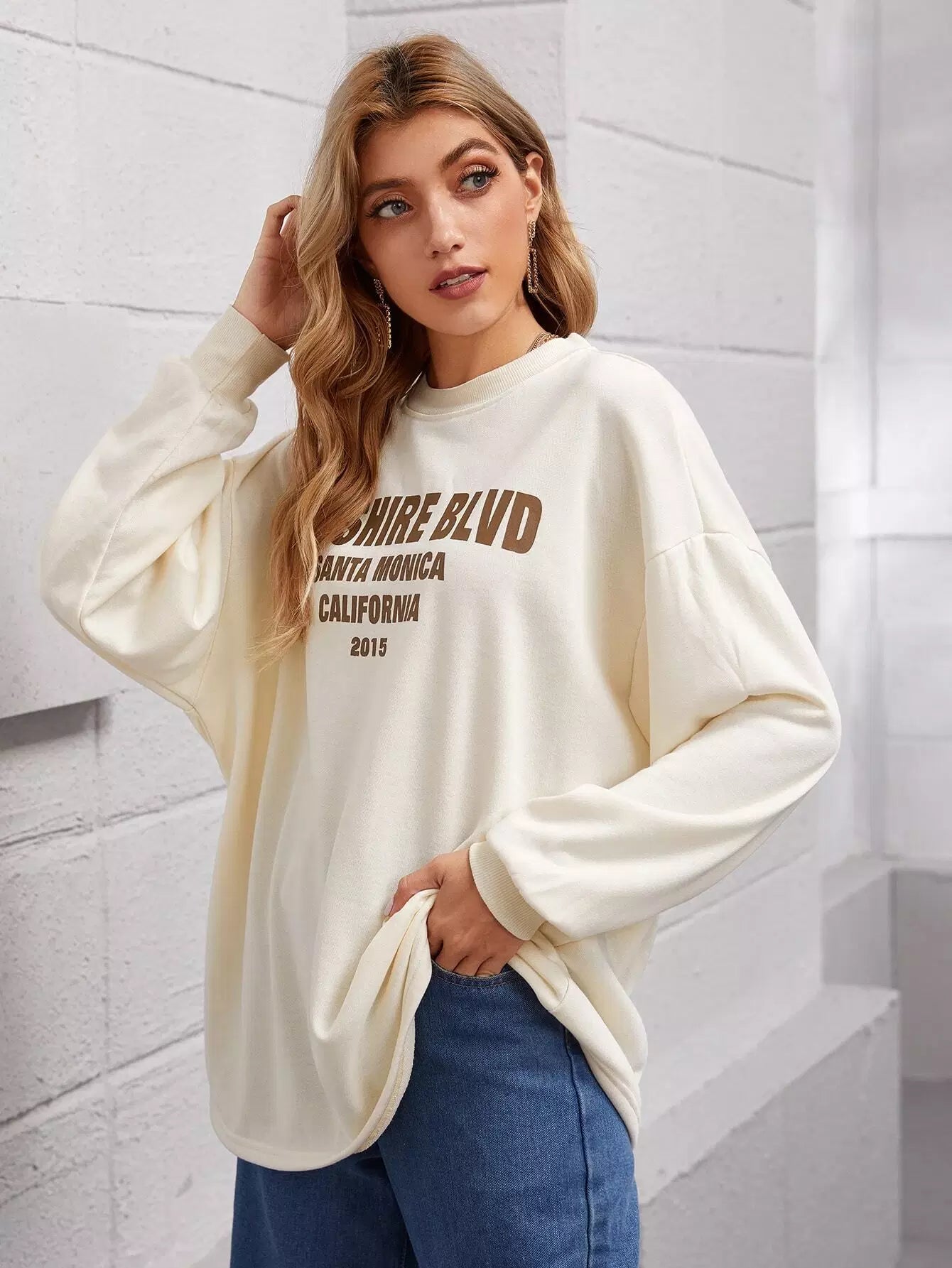 Women - Drop Shoulder Slogan Graphic Sweatshirt