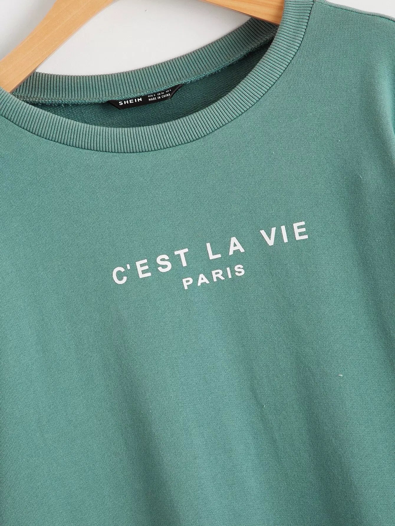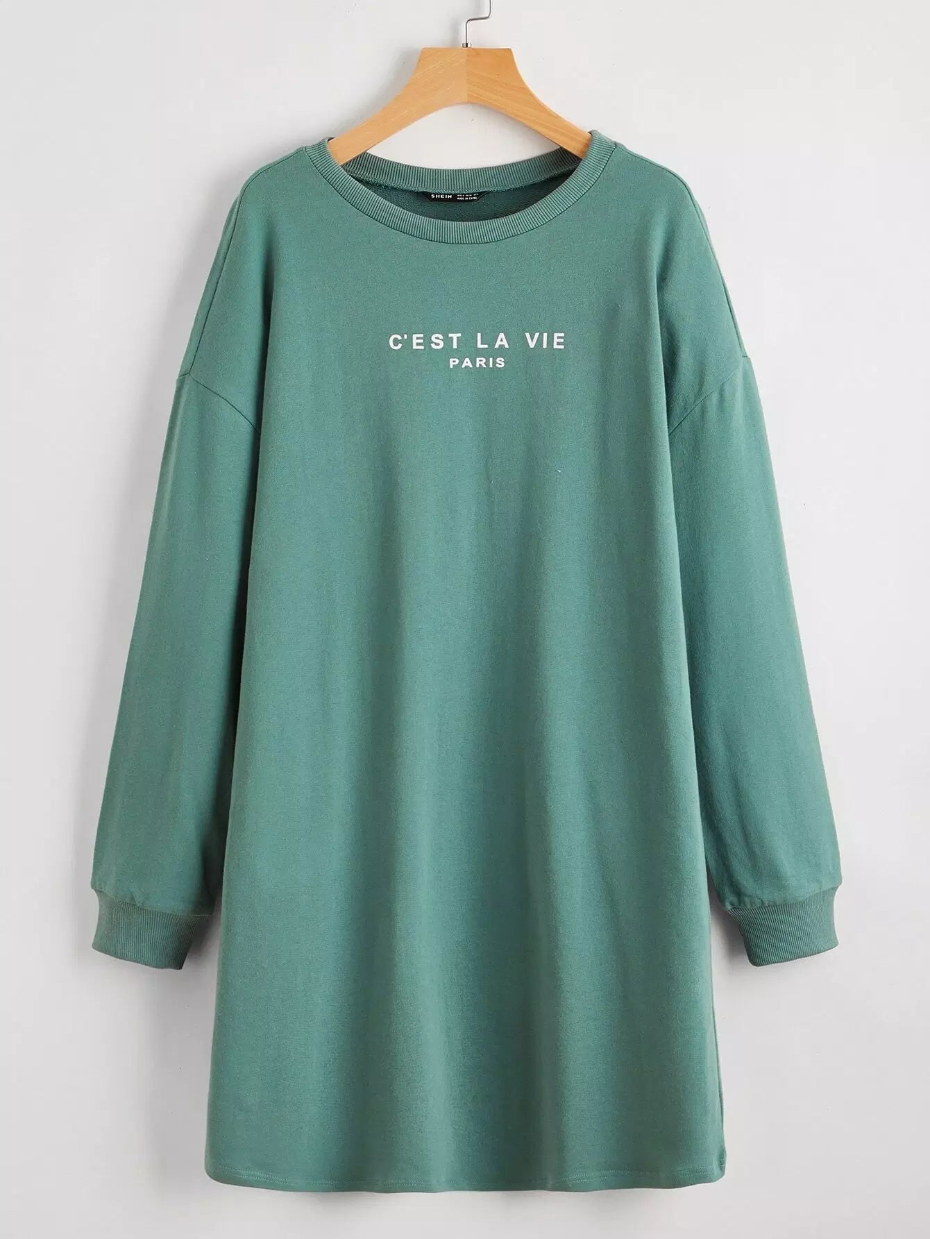 Drop Shoulder Slogan Graphic Sweatshirt Dress