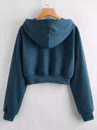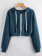 Women - Drop Shoulder Zip Up Drawstring Crop Hoodie