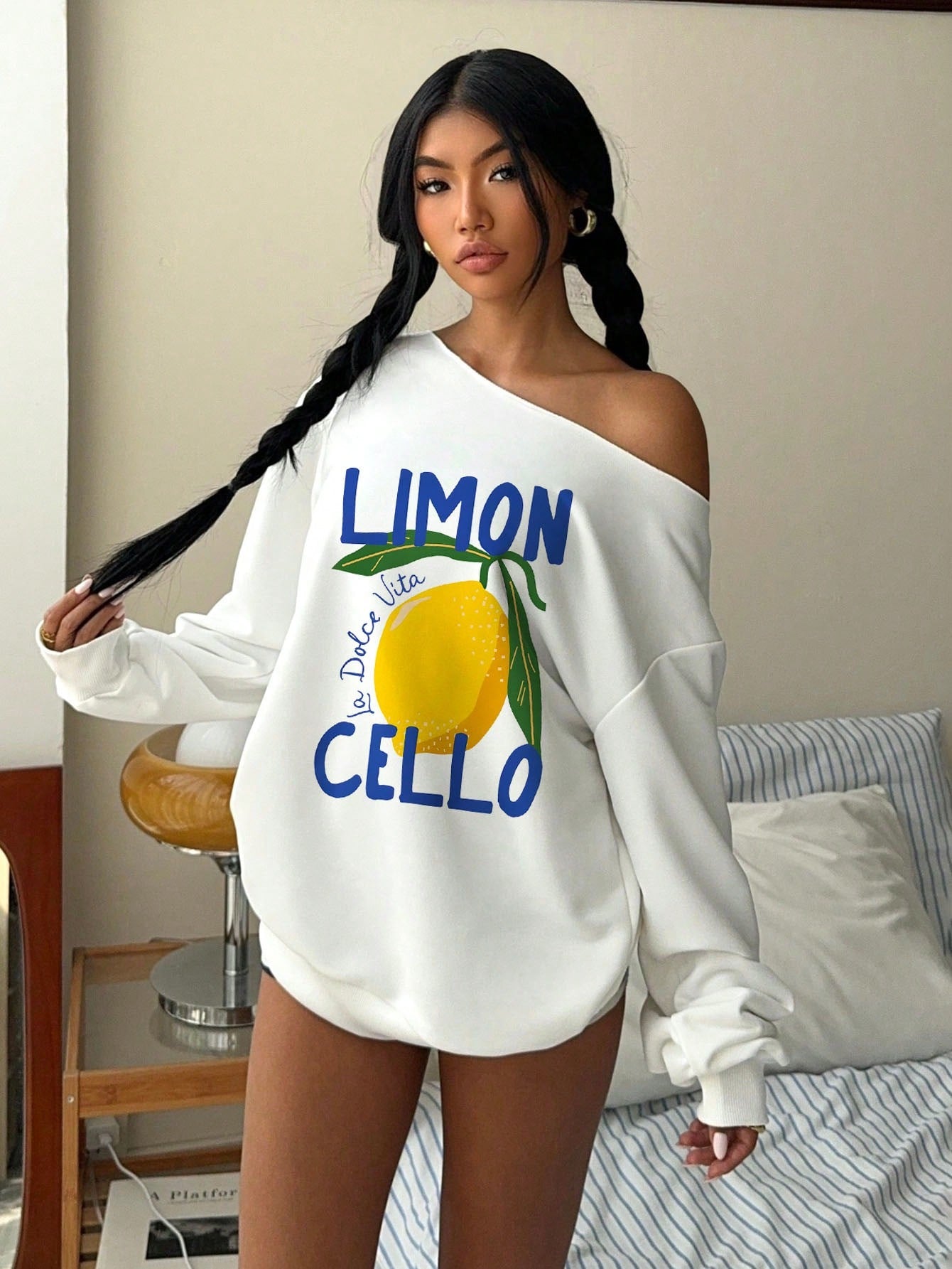 EZwear Women Limon Floral Print Off-Shoulder Loose Casual Long Sleeve Sweatshirt, Suitable For Springtime