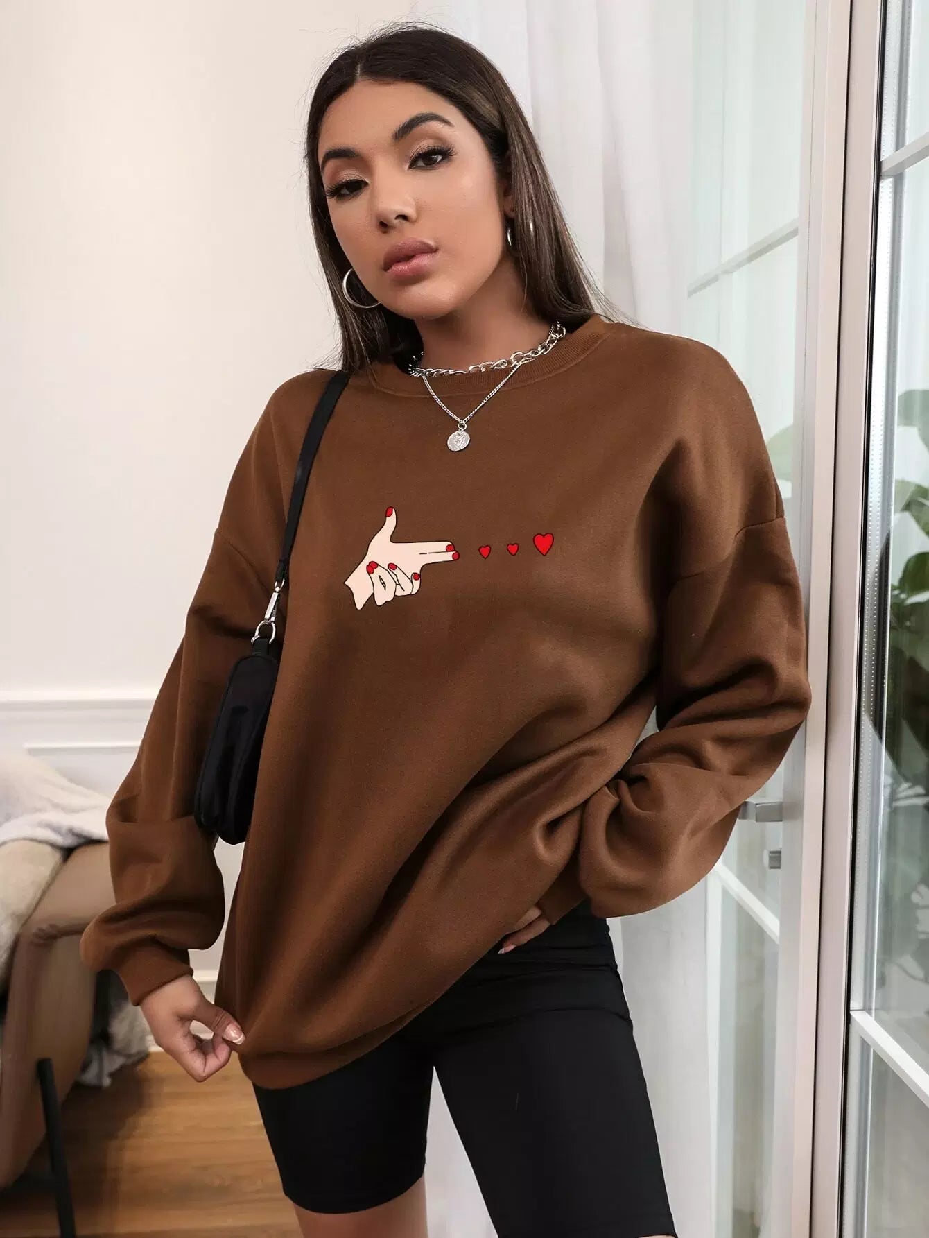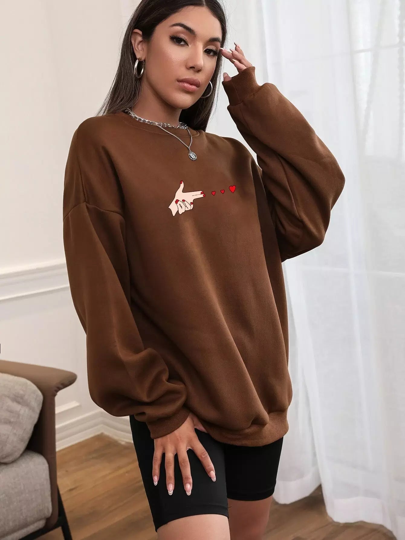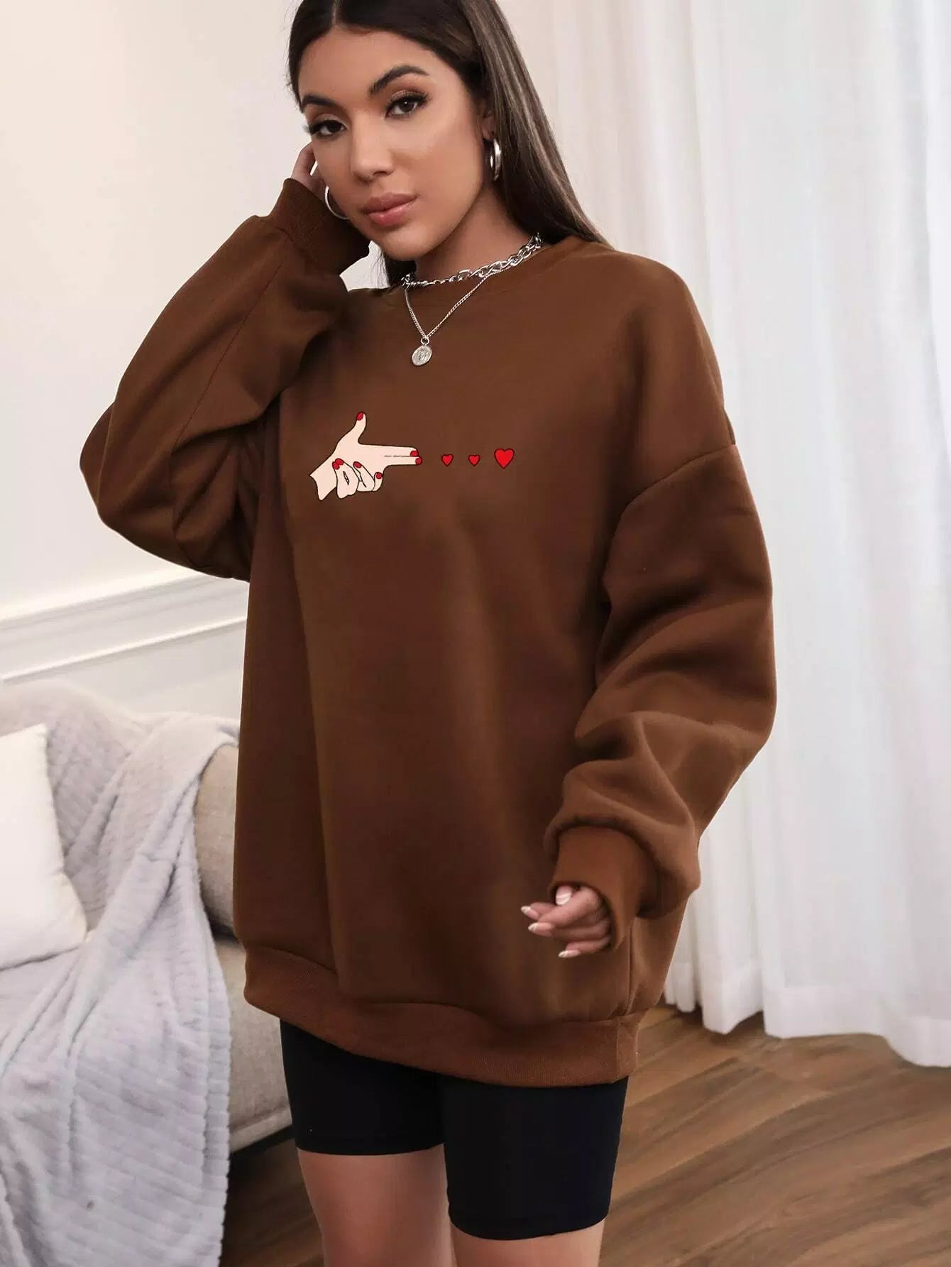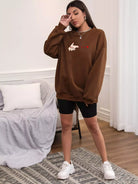 Figure & Heart Print Drop Shoulder Oversized Thermal Lined Sweatshirt