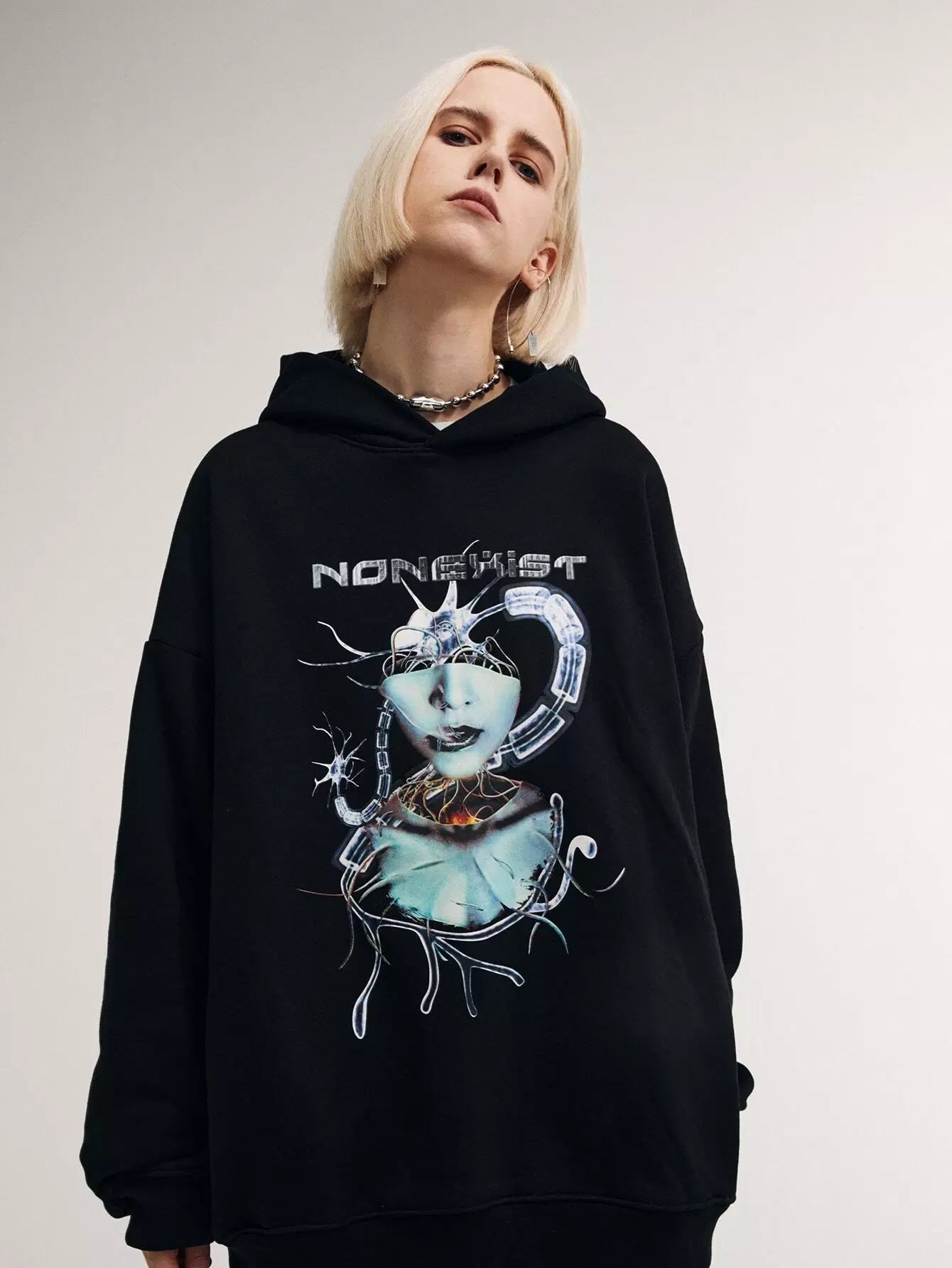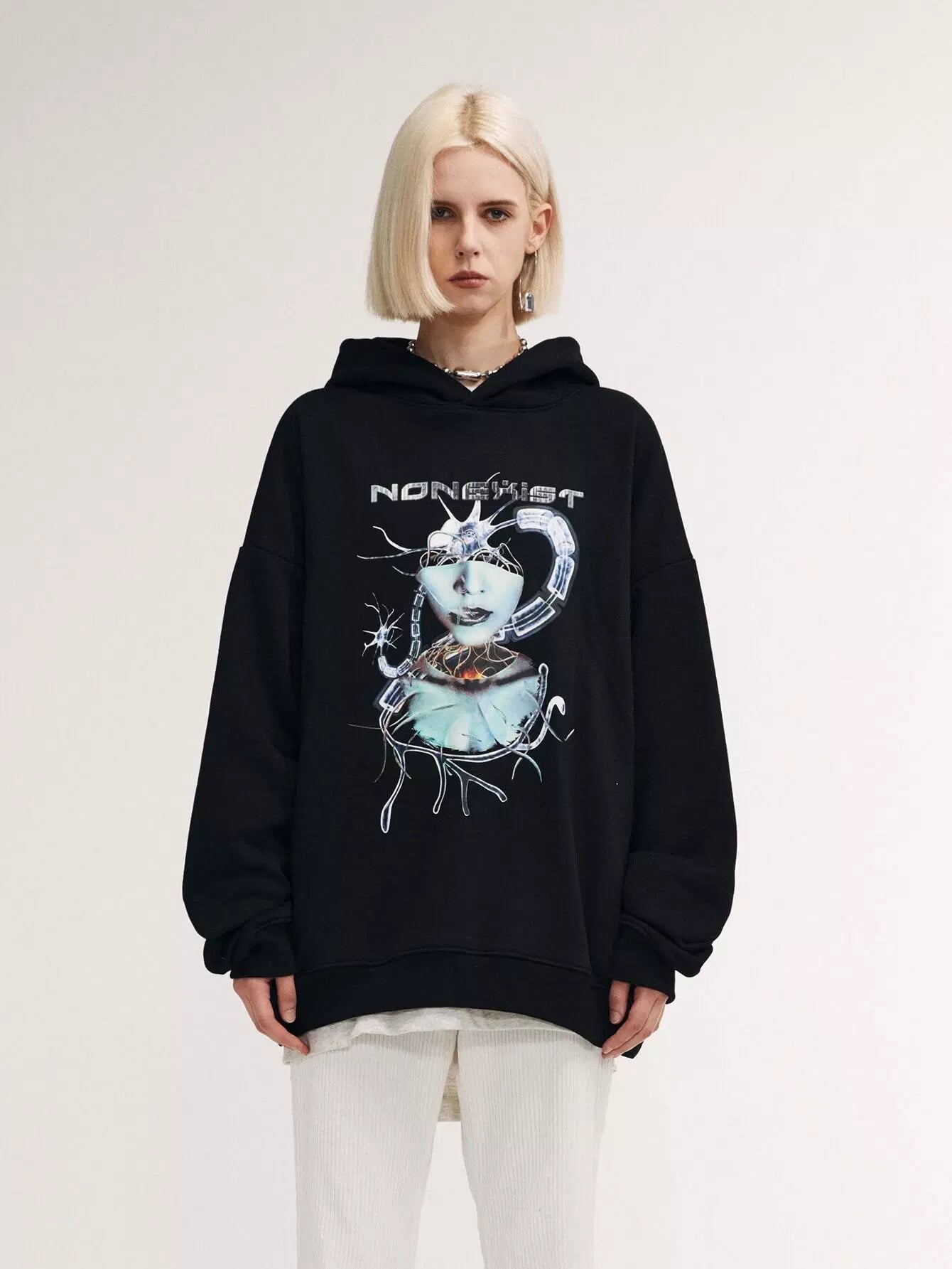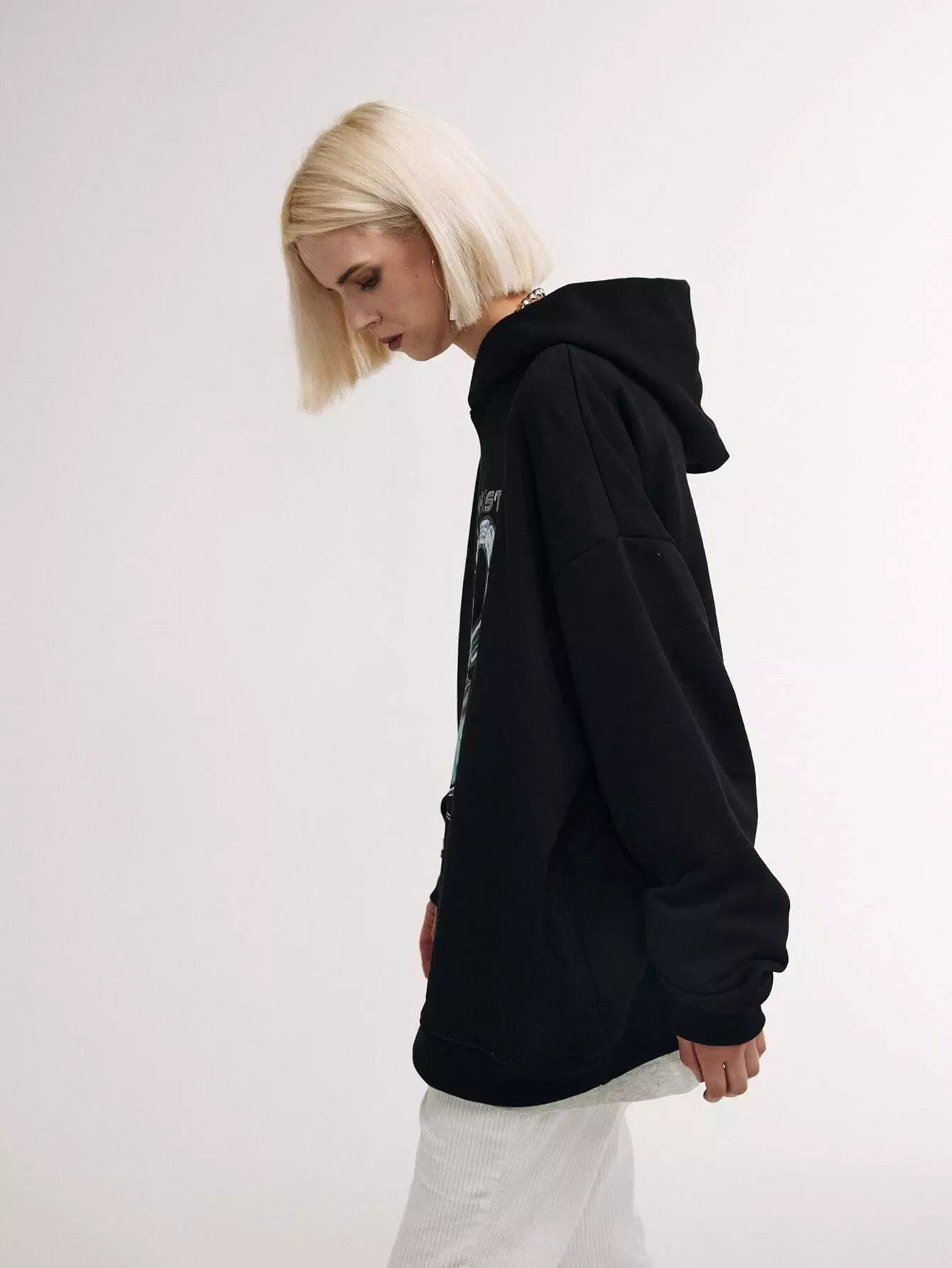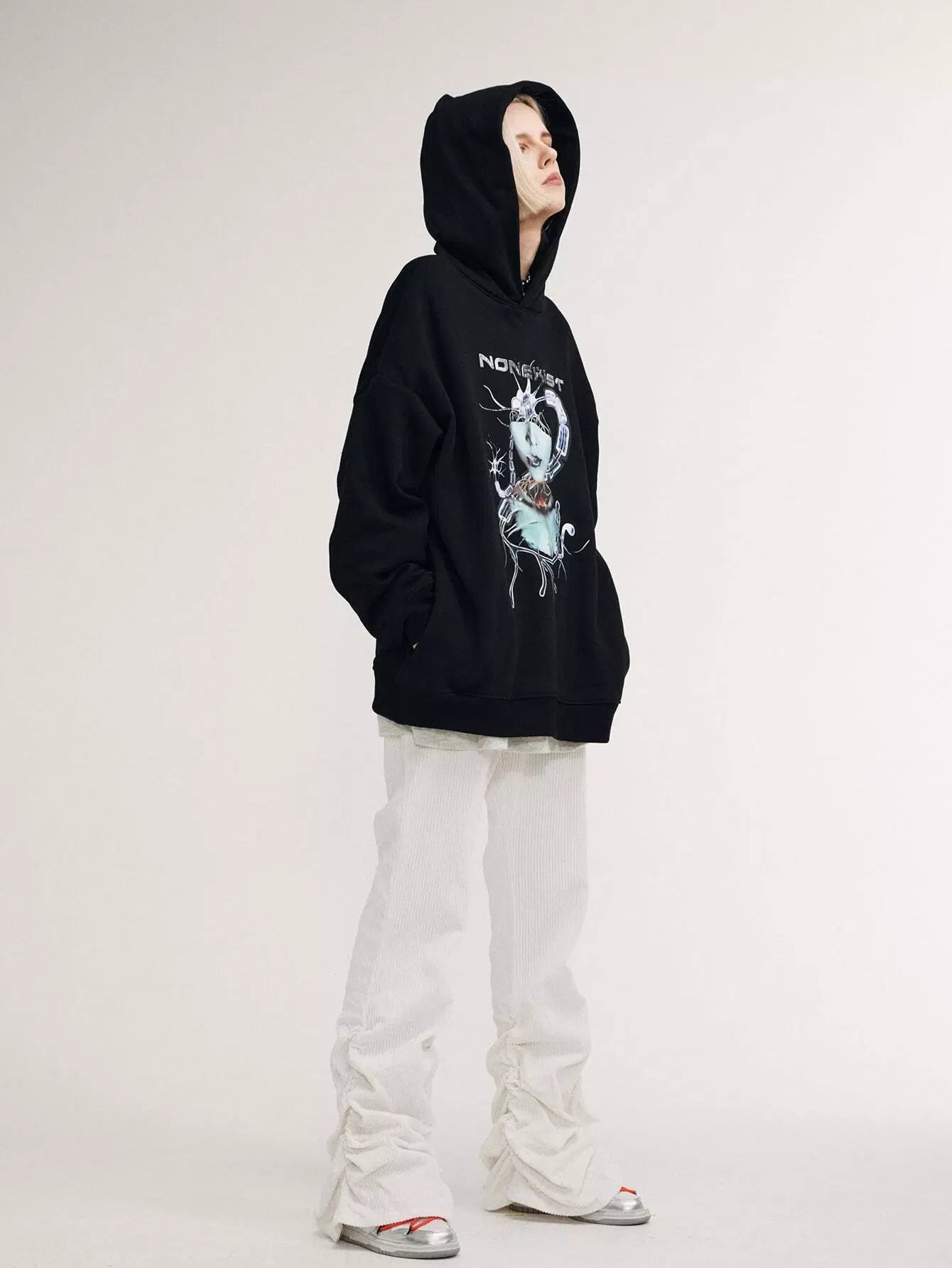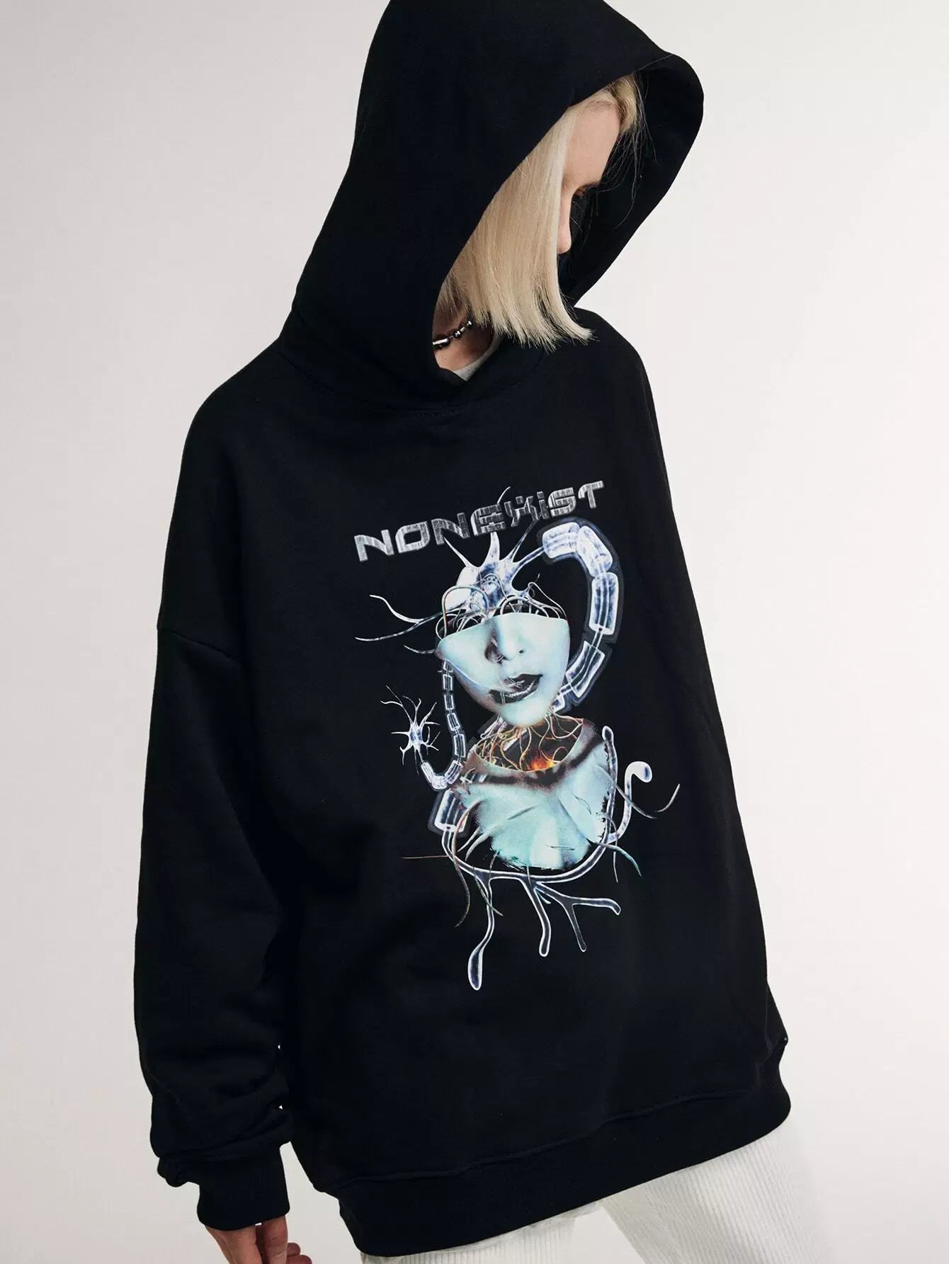 Figure & Letter Graphic Drop Shoulder Hoodie