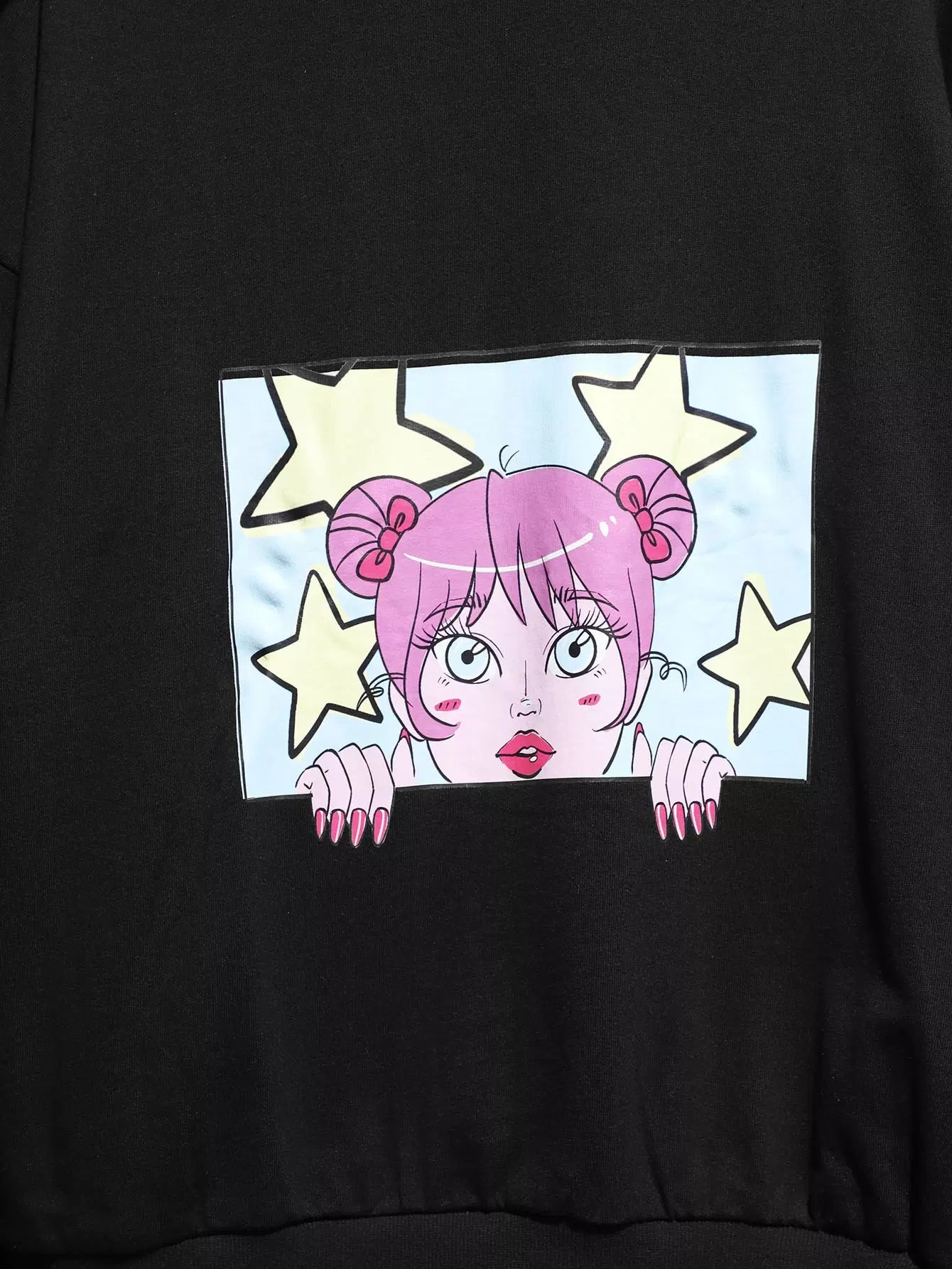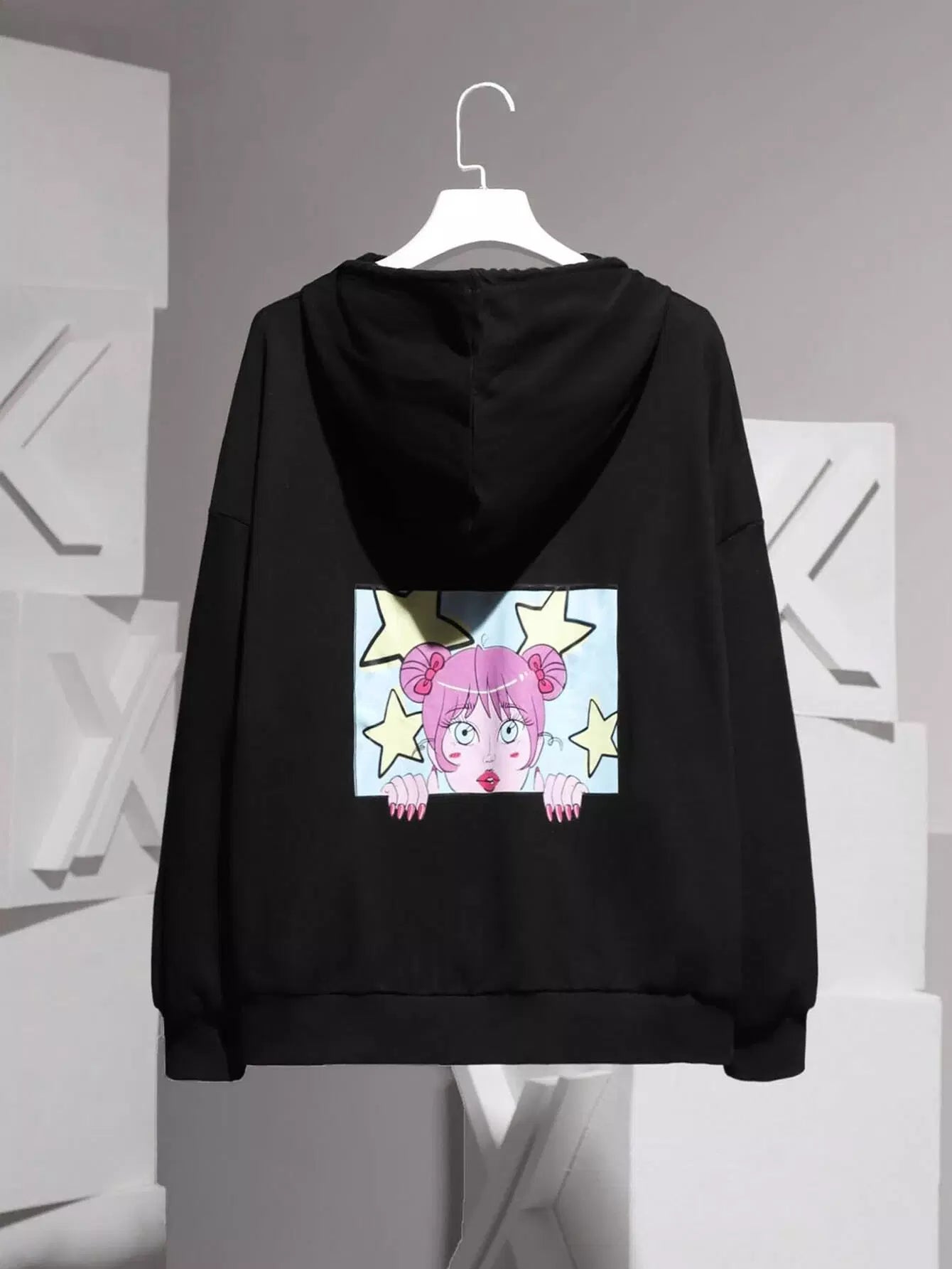 Figure & Star Graphic Drawstring Kangaroo Pocket Hoodie