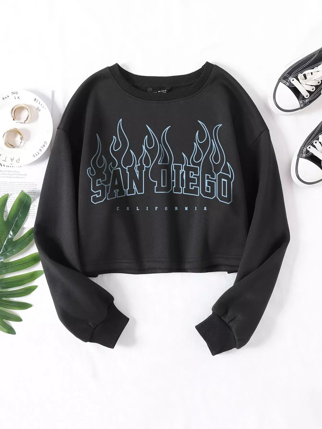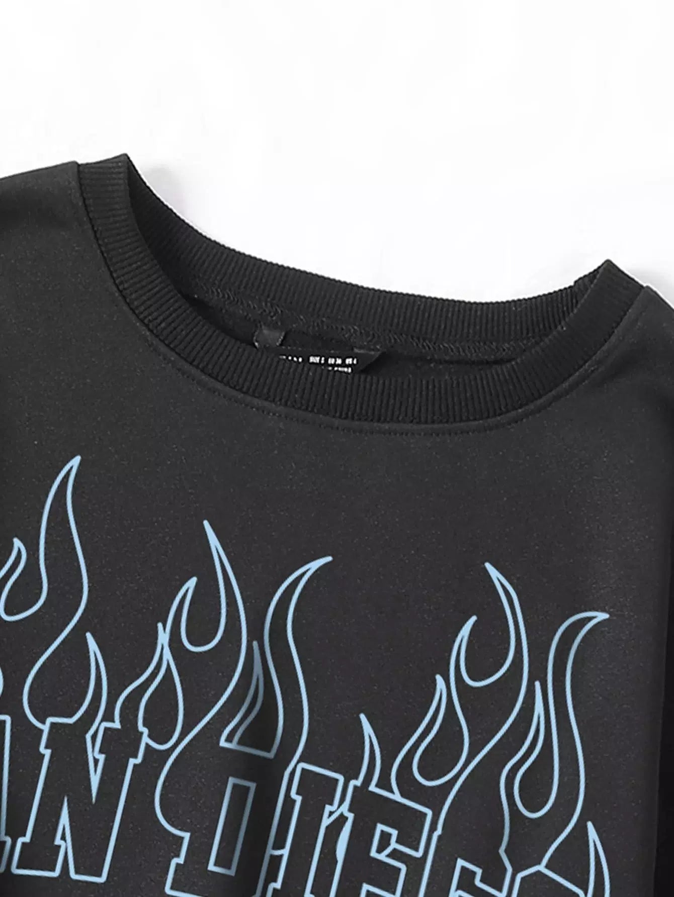 Fire Letter Graphic Thermal Lined Crop Sweatshirt