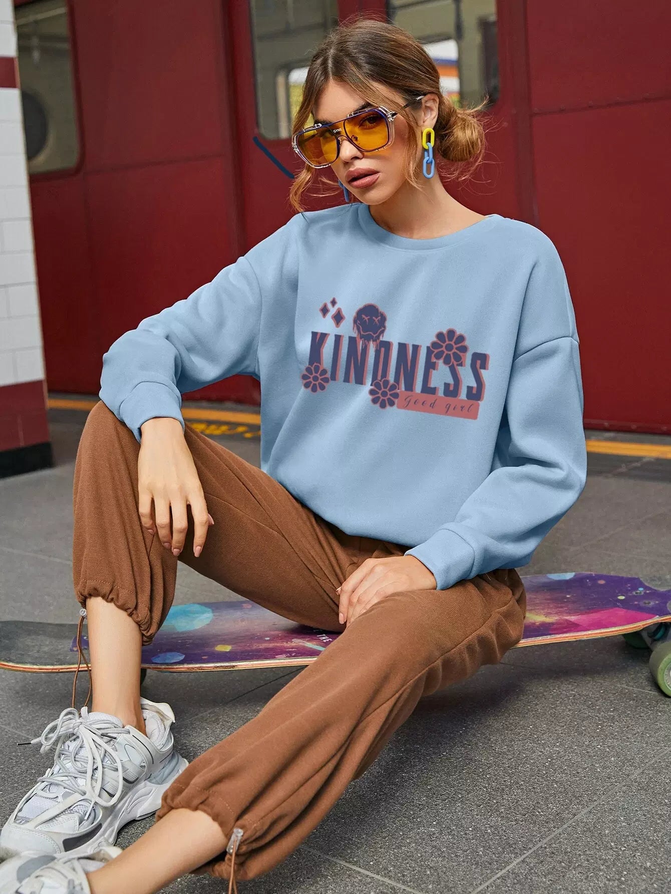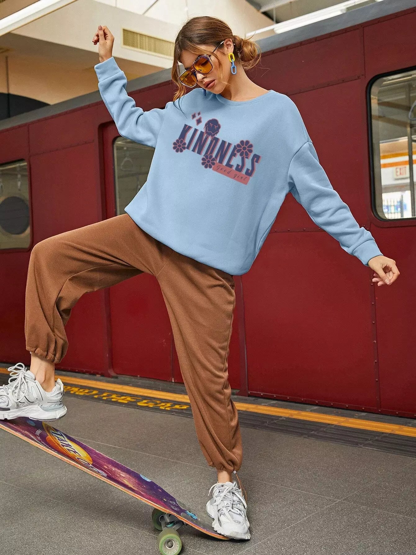 Floral & Letter Graphic Drop Shoulder Sweatshirt
