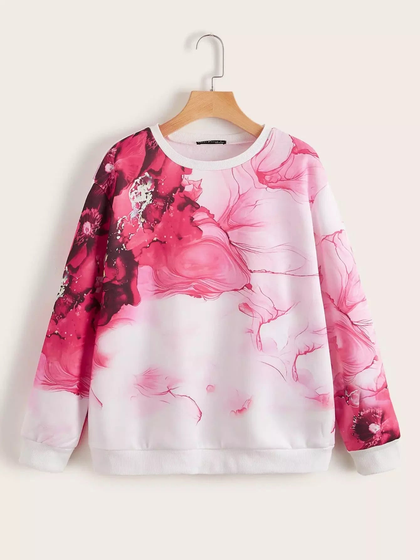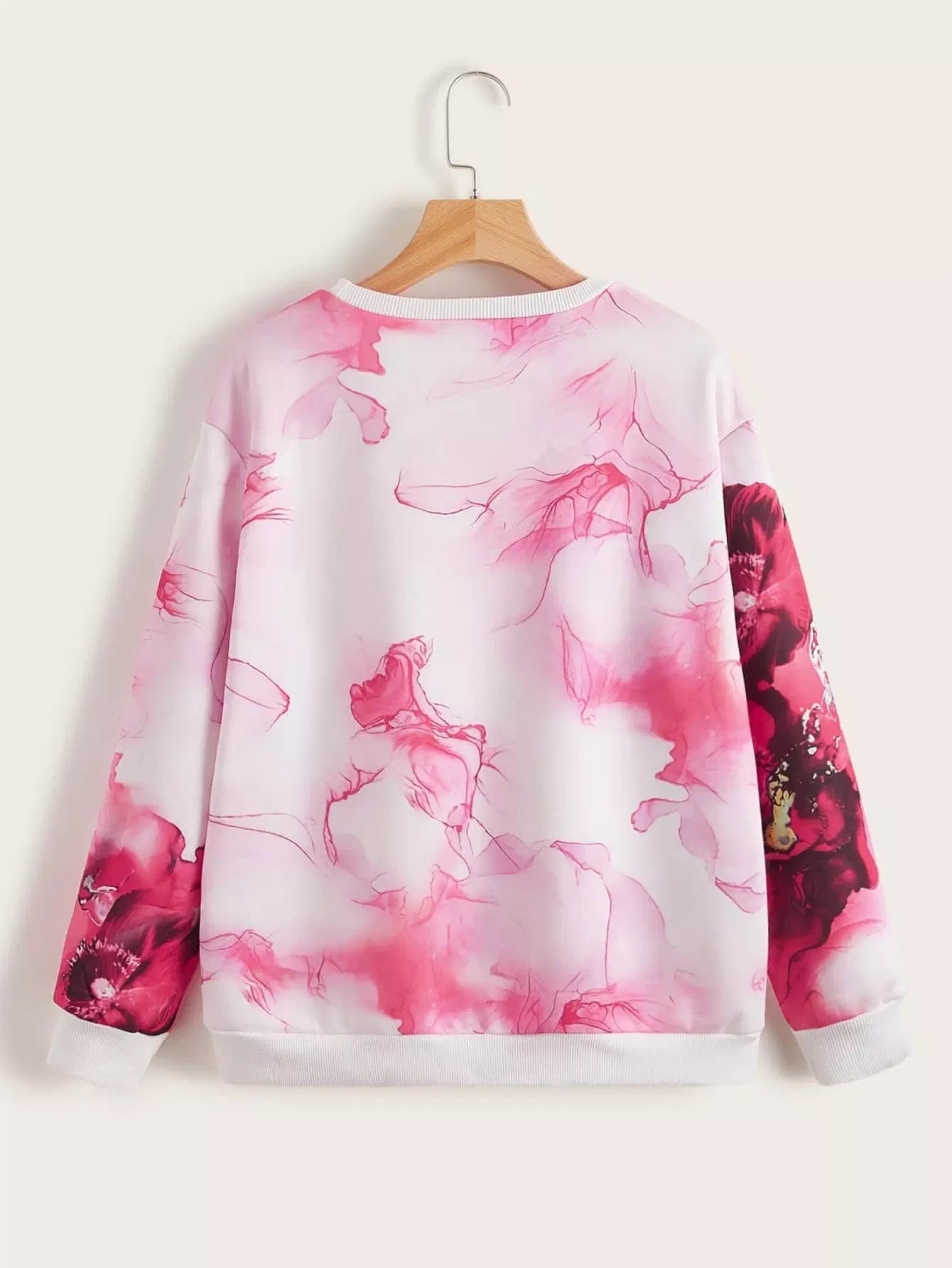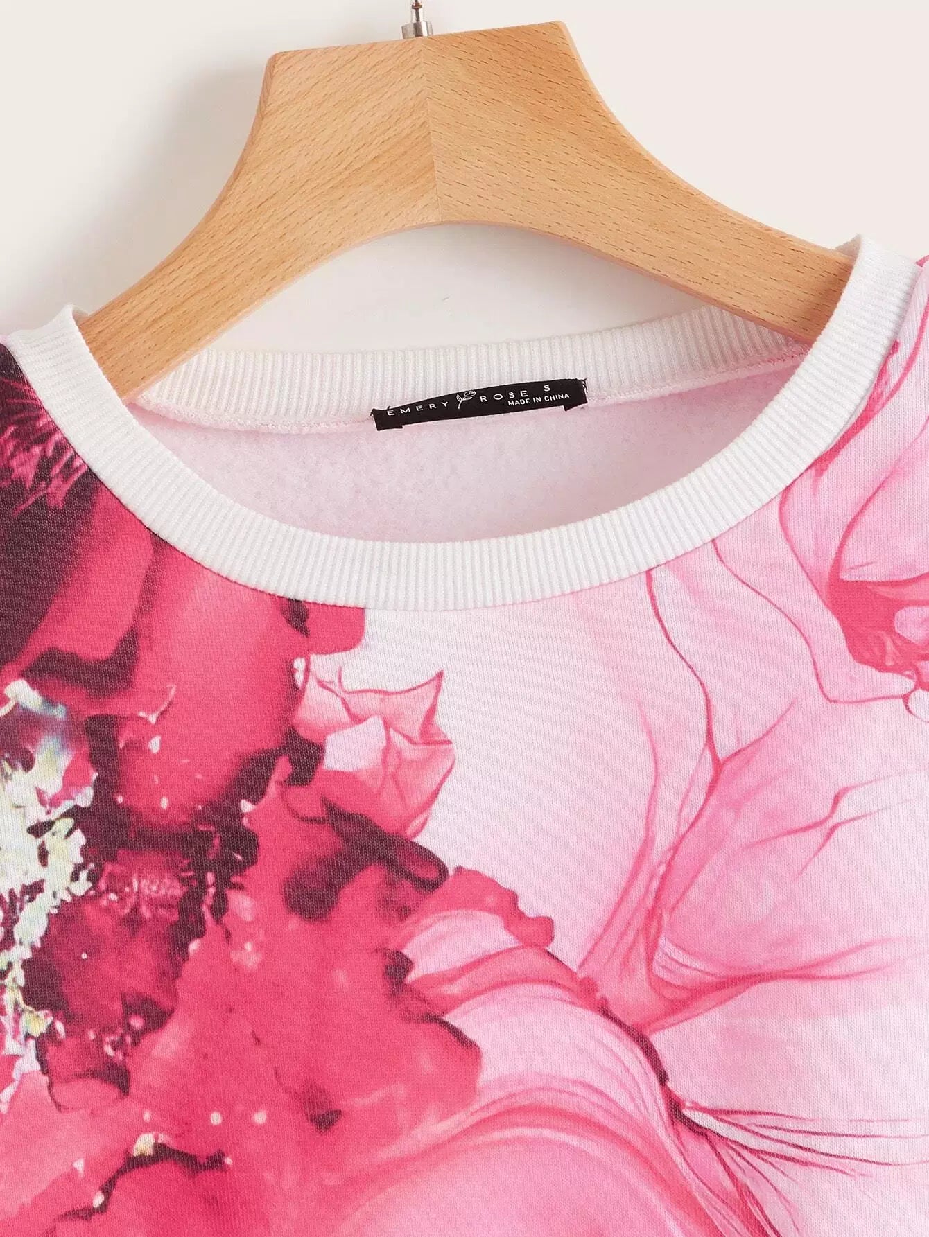 Floral Print Drop Shoulder Thermal Lined Sweatshirt