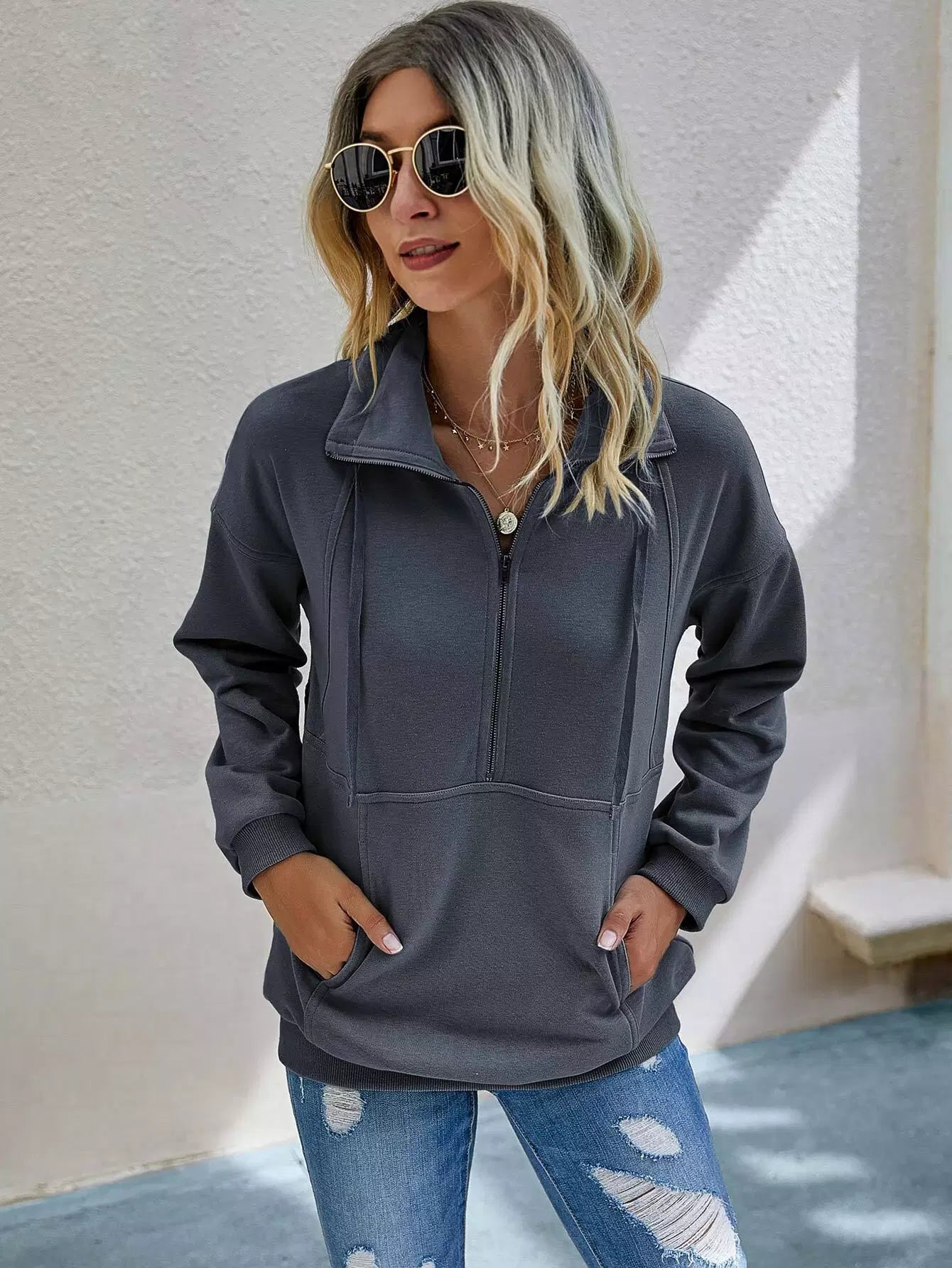 Funnel Neck Drawstring Half-Zip Sweatshirt