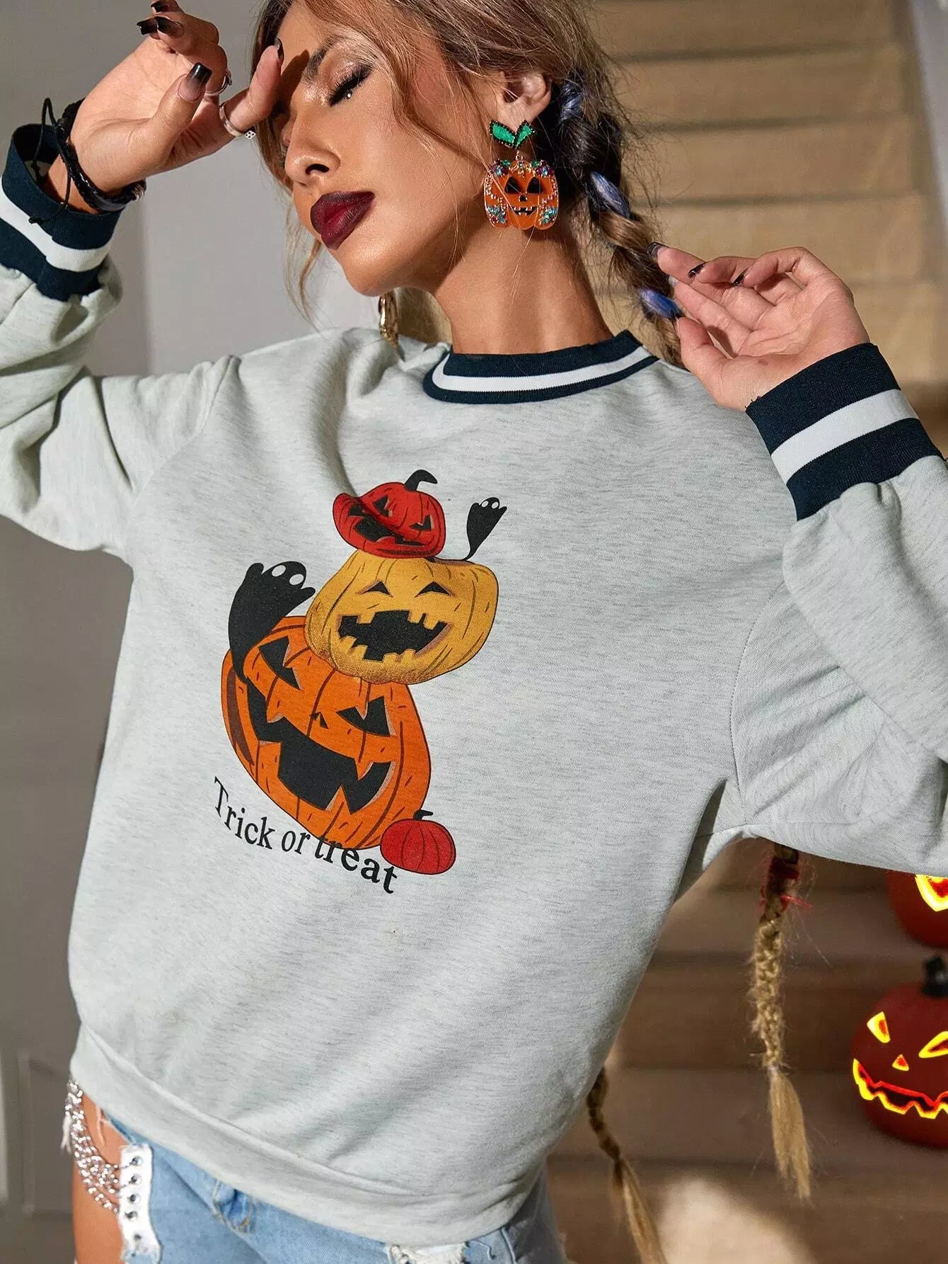Women - Halloween & Letter Graphic Sweatshirt