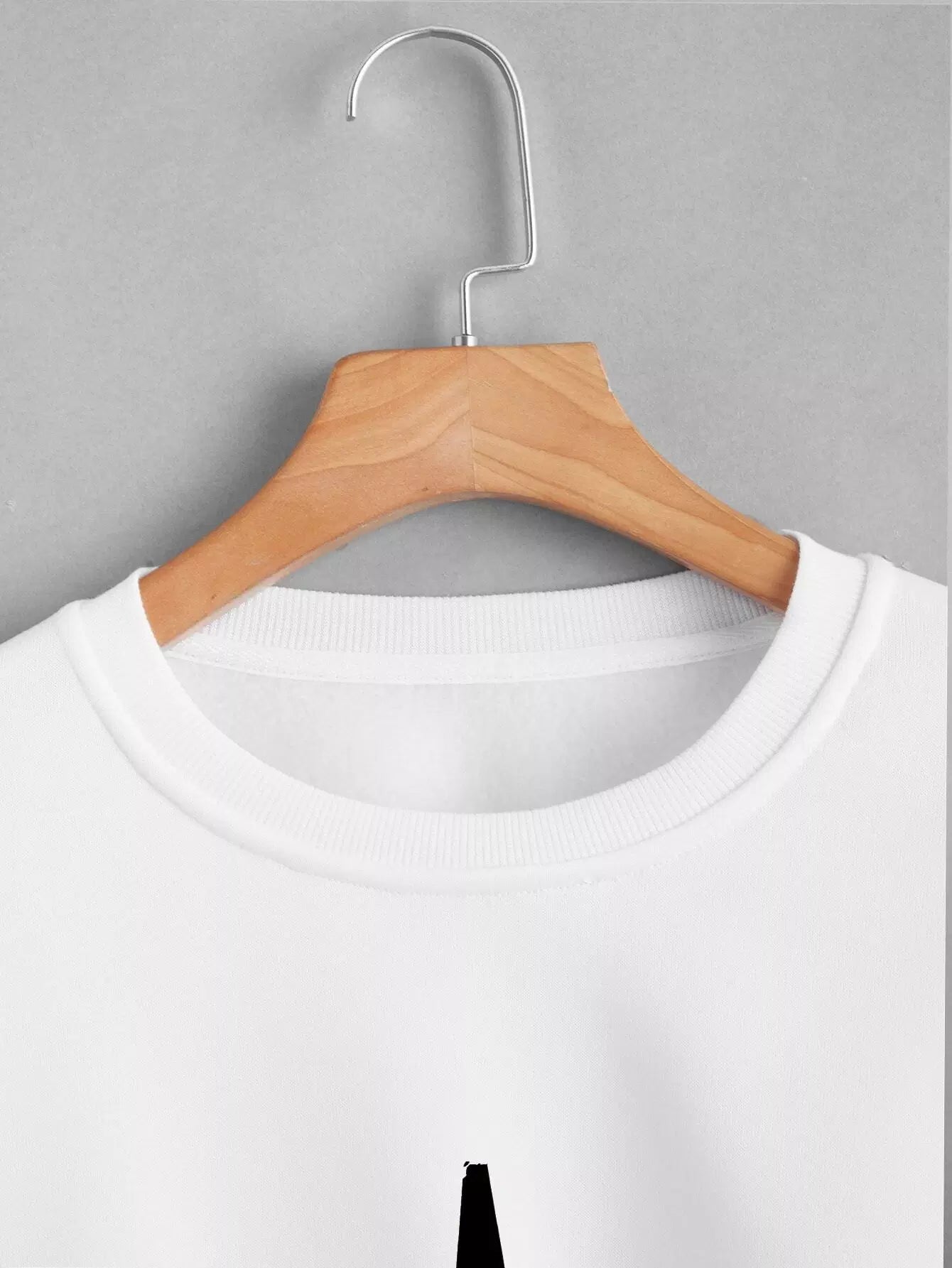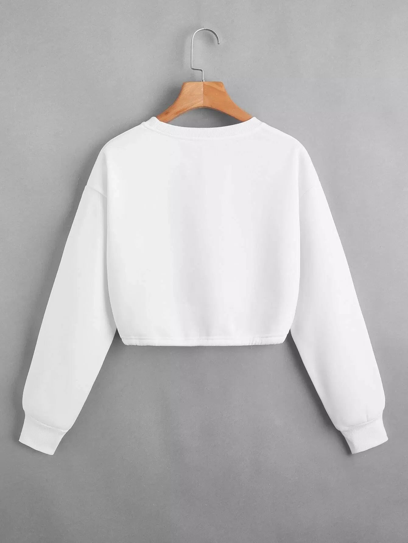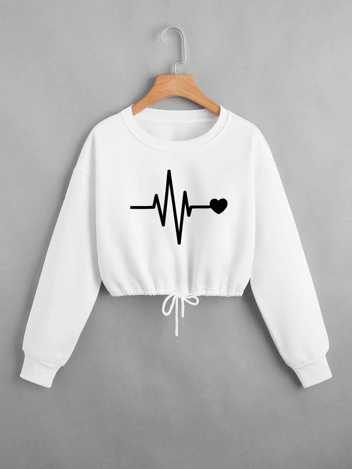 Heart Print Drop Shoulder Drawstring Hem Crop Pullover