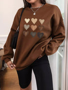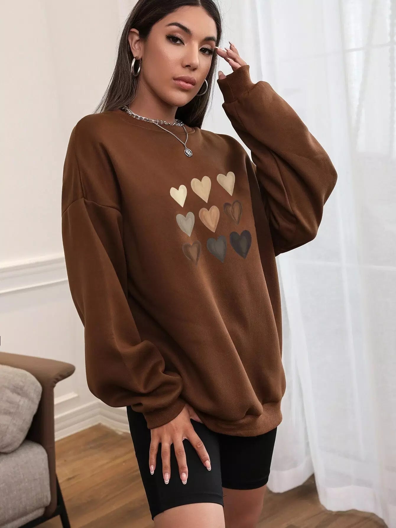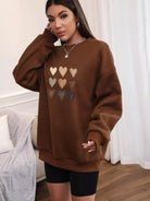 Heart Print Drop Shoulder Thermal Lined Sweatshirt